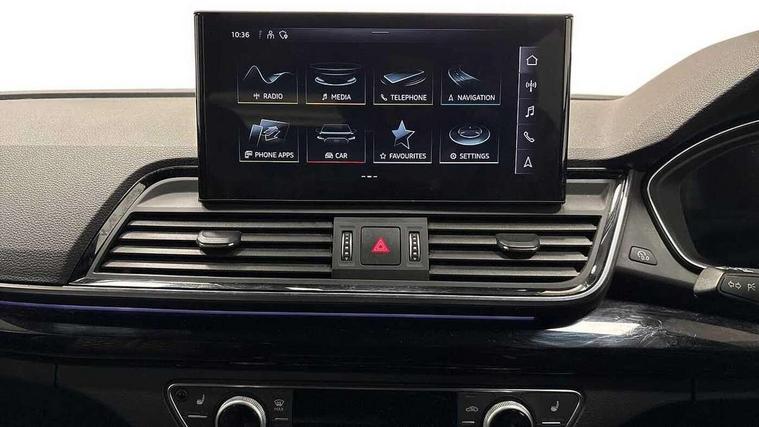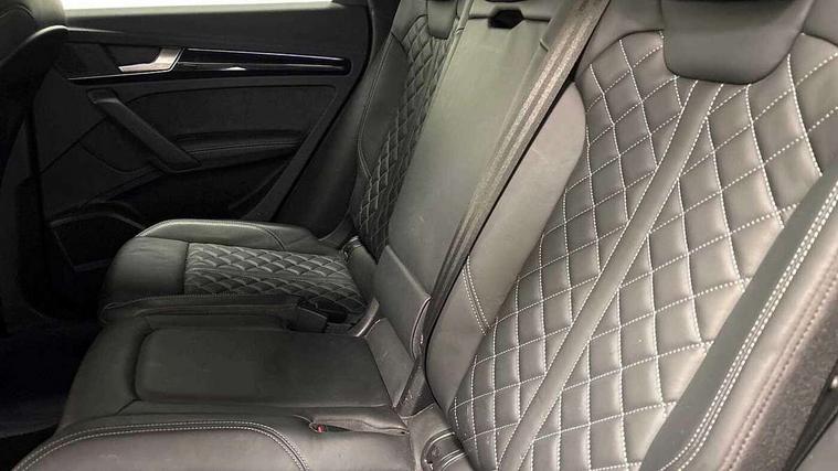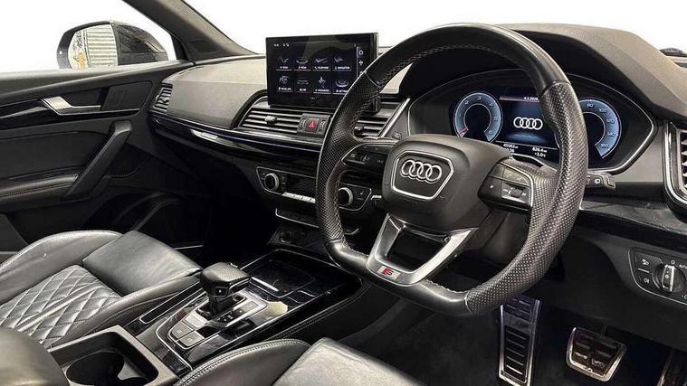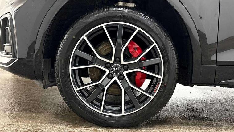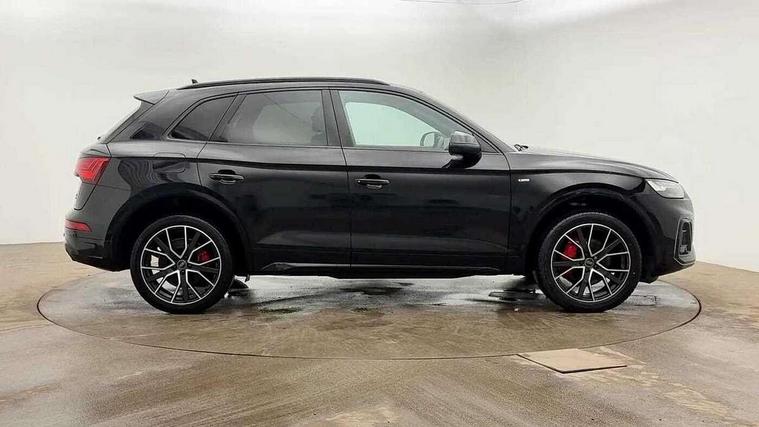 Audi connect safety and service (e-call), Audi connect with Amazon Alexa Integration, Audi drive select, Audi virtual cockpit plus with 12.3" screen and three different layout designs, Audi wireless smartphone interface, Automatic start-stop system with coasting functionality and efficiency programme, Bluetooth interface, Electro - mechanical power assisted steering, MMI navigation plus with 10.1" touch screen, Power tailgate, Reversing camera, Service interval indicator, Voice control system with Audi hotword activation "Hey Audi", Diesel particulate filter, Quattro on demand, S line sports suspension, 2 x USB charging port with aux input socket, DAB Digital radio, Acoustic windscreen, Audi matrix LED headlights with dynamic front and rear indicators, Audi rings at front and rear in black, Audi rings decal on rear doors, Auto dimming door mirrors, Auto dimming rear view mirror, Automatic headlight adjustment, Automatic headlights and windscreen wipers, Black roof rails, Body colour bumpers, Body colour underbody protection, Chrome plated exhaust trims, Daytime running lights, Door sills in Selenite silver, Electric adjustable/heated/folding door mirrors, Front air inlet surrounds in titanium black, Front and rear electric windows, Headlight washers, High gloss black B pillar trims and triangular rear door trim, High level LED brake light, Rear chrome trim strip below lights, Rear privacy glass and rear side windows, Rear side wing doors, Rear wiper, Roof bars, S Line rear spoiler, 3 rear headrests, 4 way electric lumbar support for driver and front passenger, 40:20:40 split folding 3 rear bench seat in 2nd row with rear centre armrest, Black cloth headlining, Comfort front centre armrest, Contrast stitching on seats, steering wheel and gear lever gaiter, Deluxe 3 zone electronic climate control, Electrically adjustable front seats, Fine Nappa leather upholstery with diamond pattern contrast stitching + front sport seats with S embossed logo, Front/rear floor mats, Gear lever in black leather, Heated front seats, Height adjustable front head restraints, Height/reach adjustable steering column, Illuminated door sill trims with S logo, ISOFIX child seat mounting and top tether, Luggage compartment cover, Rear seat bench plus, Removable luggage compartment floor, Single front passenger seat, Stainless steel pedals, Sunvisors with vanity mirrors, Black styling package - Q5 Edition 1, Extended interior upholstery pack - Q5, Extended LED Interior multi coloured Lighting Pack - Q5, 3 point seatbelts on all seats, 6 airbags - Driver, front passenger, curtain and side airbags, Electrically operated child locks on rear doors, Electromechanical parking brake, Electronic stabilisation control including ABS, ASR and EDL, Front and rear brake calipers painted in red, Front passenger airbag deactivation, Hill descent control, Hill hold assist, Multi collision brake assist, Pop-up bonnet for pedestrian protection, Pre sense city, Seat belt force limiter, Seatbelt monitoring, Tyre pressure warning, Warning triangle and first aid kit, Anti theft alarm, Anti-theft wheel bolts, Keyless Go access/ignition system, Remote central locking, Piano black finish inlay,