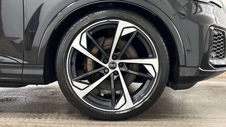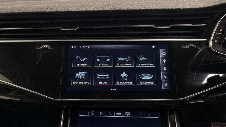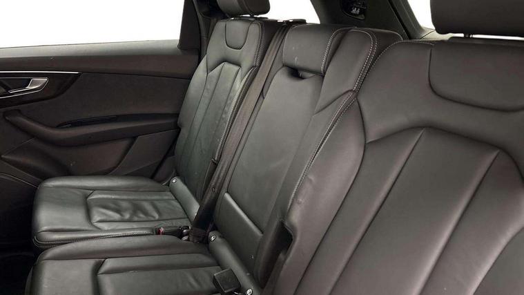 Audi connect safety and service (e-call), Audi connect with Amazon Alexa Integration, Audi drive select (Auto, Comfort, Dynamic, Efficiency, Individual, Off-road and All road), Bluetooth interface, Camera based traffic sign recognition, Electromechanical steering, MMI navigation plus with MMI touch screens includes 10.1" and 8.6" screens with haptic feedback, Natural voice recognition, Parking system plus with 360 degree display (front, rear and side sensors) - acoustic and visual park assist system, Power operated tailgate, Rear view camera, Smartphone interface includes wireless Apple carplay/Android Auto, Start/stop system, 48V Mild hybrid technology, 85 litre fuel tank, Adaptive air sports suspension, Quattro all wheel drive with self locking centre differential, Audi music interface - front 2 USB-C ports with charger and data functions, Audi sound system with 6 channel amplifier, 180 watt amplifying capacity and 10 loudspeakers including subwoofer, DAB digital radio module, 3rd brake light, Audi matrix LED headlights with dynamic front and rear indicators, Auto dimming frameless rear view mirror, Black roof rails, Bumpers in contrast paint scandium grey finish includes door trim and wheel arch trim strips, inlays in door strip contain quattro embossing, Electrically adj heated/folding + automatically dimming exterior mirrors with memory + automatic kerb side function for passenger side exterior mirror, Heat insulating glass in windshield, Integrated LED indications in door mirrors, LED daytime running lights, LED rear tail lights, Privacy glass - dark tinted rear and rear side windows from B-pillar backwards, Rear side wing doors, Rear wiper, 2 seat bench in 3rd row, 3 seat bench in 2nd row, 4 zone deluxe automatic climate control, 7 seat layout with ISOFIX points for the front passenger seat and rear passenger seat, Black cloth headlining, Comfort front centre armrest, Electric adjustable front seat with 4 way lumbar support, driver memory functionality, Folding rear seats, Front head restraints, Front/rear floor mats, Heated front seats, Illuminated door sill trims with S logo, LED interior ambient lighting, Luggage compartment cover, Luggage compartment sill protection in stainless steel, Rear head restraints, Single front passenger seat, Stainless steel pedals, Sunvisors with illuminated vanity mirrors, Titanium black styling pack - Q7/SQ7, 3 point seatbelts on all rear seats, Audi pre sense front, Child locks on rear doors, Driver and front passenger, front side and curtain airbags, Electromechanical parking brake, Electronic Stabilisation Control (ESC) including ABS, ASR and EDL, Extended pedestrian protection measures, Hill hold assist, Seatbelt monitoring, Tyre pressure loss indicator, Warning triangle and first aid kit, Anti theft alarm, Anti-theft wheel bolts and wheel loosening detection, Keyless Go, Remote central locking, Polished oak trim with grey finish inlay, Tool kit, Tyre repair kit,
