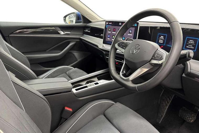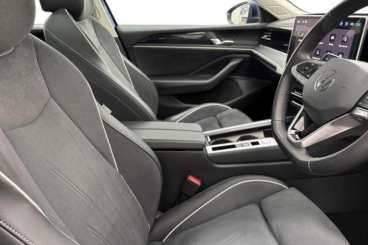 2 x Front USB-C ports, 2 x USB-C charging sockets on the centre console in the rear, charging capacity up to 45W, Adaptive cruise control, Advanced driver attention and drowsiness monitor, Chat GPT function for IDA voice assistant, Digital cockpit pro 10.25" high resolution, Discover media navigation system includes streaming and internet, Dynamic road sign display, E-Sim card for online connectivity, eCall emergency call service, Electronic engine sound, Full electric tailgate operation, Inductive smartphone charging without external antenna connection, Memory feature for park assist, Oncoming vehicle braking when turning including swerve support, Park assist with park distance control, Predictive speed limiter, Preparation for We connect and We connect plus, Wireless app connect, Battery 340 A (58 Ah), Front wheel drive, Petrol Particulate Filter, 8 Speakers, Auto dimming interior rear view mirror, Automatic headlights, Body colour bumpers, Body colour door handles, Heat insulating glass in side and rear windows, LED third brake light, Rain sensor, Rear side wing doors, Rear wiper, Welcome light with surround lighting, 3 seat bench in 2nd row, 3 zone air care climatronic with rear air conditioning control panel, Front + rear carpet mats, Front head restraints, Isofix child seat preparation, easy-fit (for two outer rear seats, and front passenger seat), compatible with I-size, Luggage compartment cover, power operated, Single front passenger seat, Standard pedal cluster, Sun visors with illuminated vanity mirrors for driver and front passenger, Sunblind for rear side windows, Three rear head restraints, Unsplit rear seat bench, split folding backrest, Infotainment package plus - Passat Estate, Park and comfort pack - Passat Estate, 3x3 point rear seat belts, ABS (Anti locking brake system) includes BAS (Brake assist) and EBD (Electronic brake pressure distribution), Autonomous emergency braking front assist with pedestrian and cyclist monitoring, Disc brakes in front, Driver/Front Passenger airbags, Drivers knee airbag, Electronic parking brake with auto hold, ESC (Electronic stability control) + EDL (Electronic Differential lock) and ASR (Traction control), EDTC (Engine drag torque control), Extended safety system with proactive passenger protection system, Front passenger airbag deactivation switch, Hill hold function, Tyre pressure loss indicator, Warning triangle and first aid kit, Alarm with interior protection, Electronic engine immobiliser, Keyless locking and starting system keyless access with safelock, Aluminium decorative inserts, Tool kit for tyre mobility set, Trims for alloy wheels,