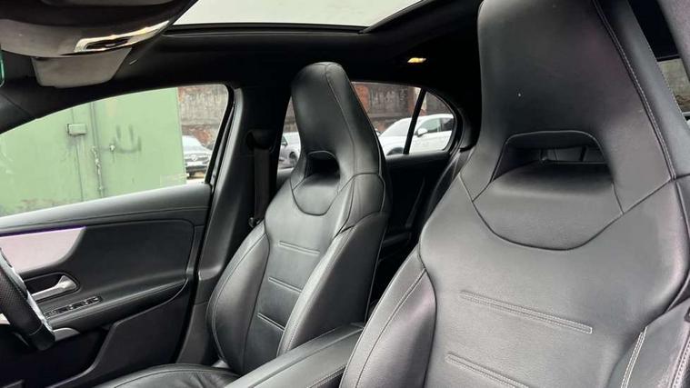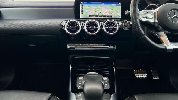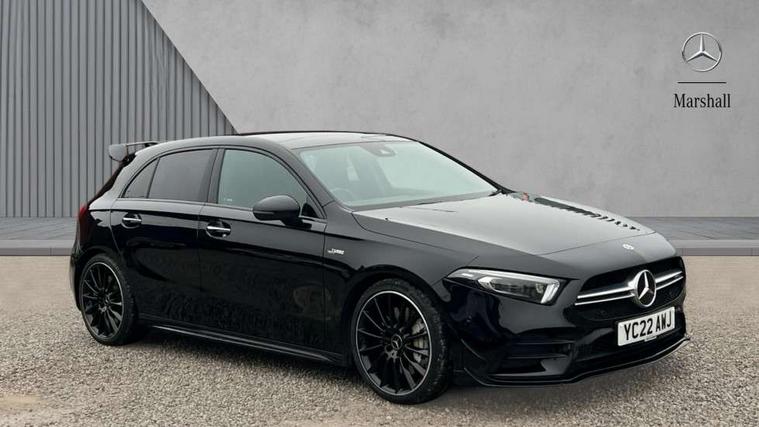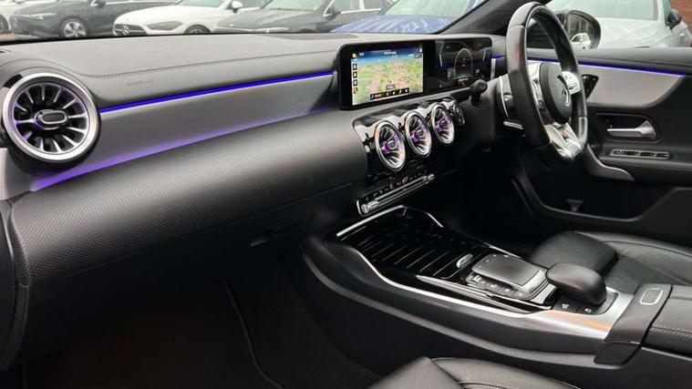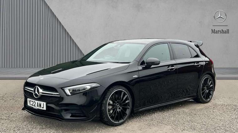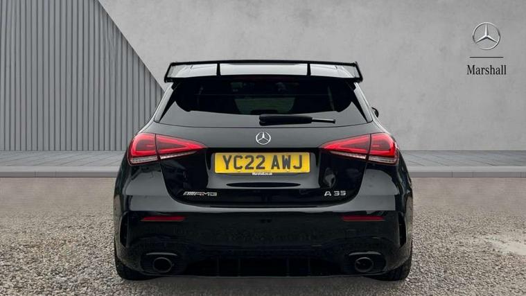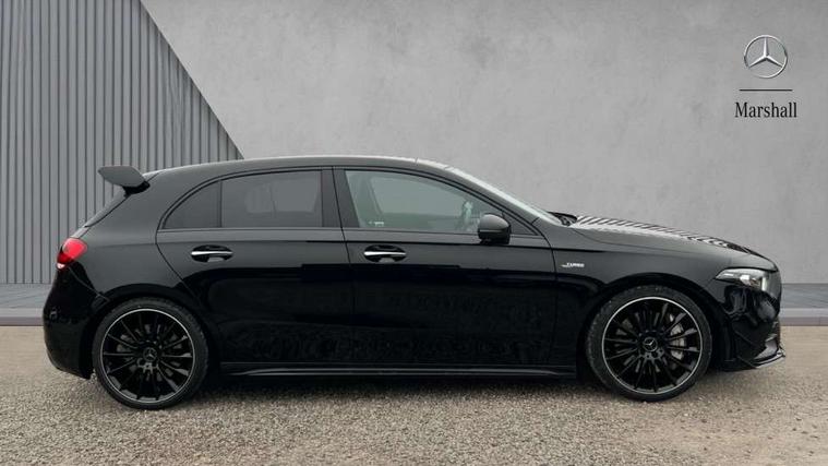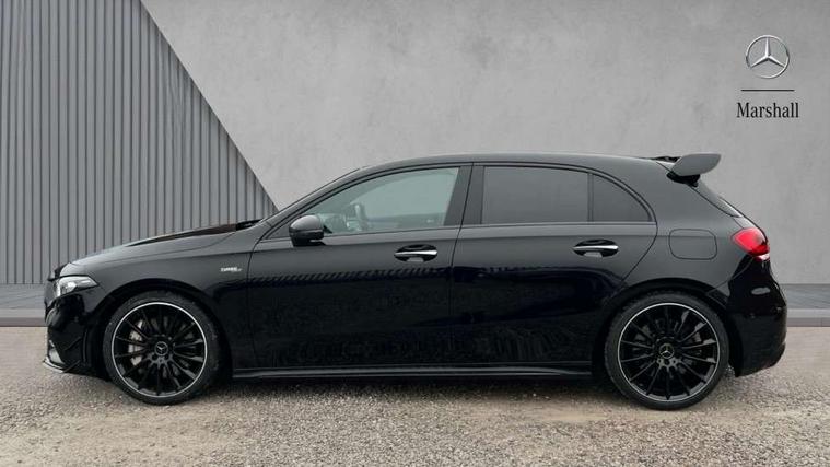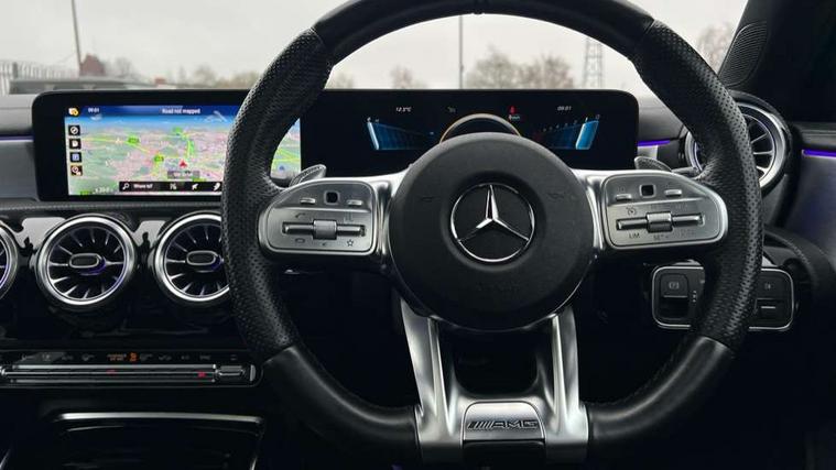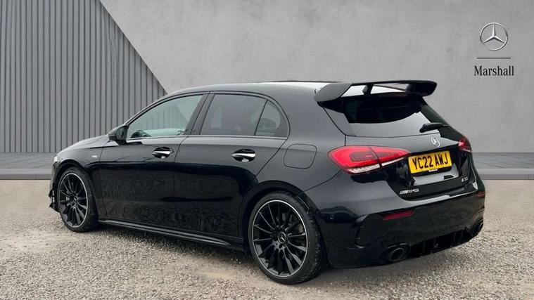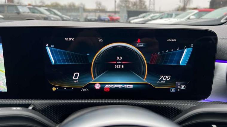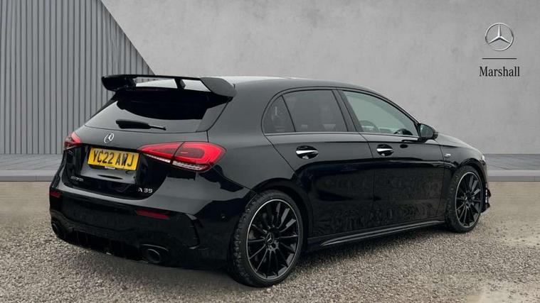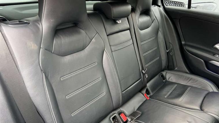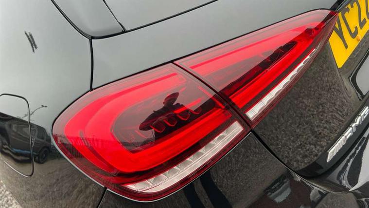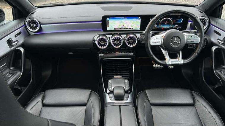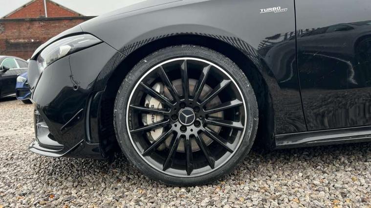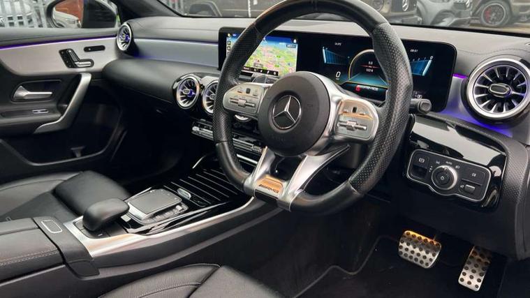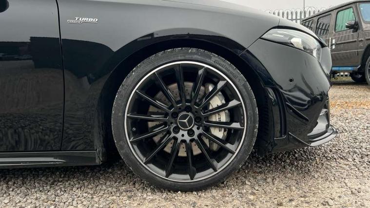 10.25" Digital instrument cluster display screen, 10.25" media display, 180 degree rear view camera with parking guidelines, Active parking assist with visual and audible warning of detected obstacles, Attention assist, Brake pad wear indicator warning light, Car wash mode, Direct steering, Dual bluetooth interfaces, DYNAMIC SELECT with driving programs (Slippery, Comfort, Sport, Sport+ and Individual), ECO start/stop function, Fluid level warning indicator for fuel, oil, coolant and washer fluid, Hard-disk navigation, Hey Mercedes Voice activation, Lamp failure indicator, Lane keeping system, Mercedes me connect including emergency call system, accident recovery, breakdown and maintenance management, Mercedes me remote services, Outside temperature gauge, Owners manual in English, Pre-installation for private car sharing, Preinstallation for Mercedes Benz link, Service indicator (ASSYST), Smartphone integration with Apple CarPlay and Android auto, Traffic sign assist, Trip computer, Ultrasonic sensors positioned in the front and rear bumpers, Rear axle multi-link, 2 USB ports (type C) in rear stowage compartment and one in front of center console, DAB Digital radio, MBUX multimedia system with DAB digital radio and touchpad including satellite navigation, Mercedes-Benz sound system - 100W, 4 Electric Front and Rear windows, Adaptive brake lights, AMG bodystyling - Front apron with splitter in chrome, rear apron with chrome trim and chrome visible trim elements in tailpipe, AMG Front apron with flics as air deflector elements on the outer air intakes, AMG radiator grille with twin blade lamella and AMG Lettering, AMG Rear apron with specific diffuser look with four vertical fins and two round chrome plated tailpipe trim elements with a diameter of 90 mm, AMG spoiler lip on roof, AMG Sports exhaust system with two round tailpipes measuring 90 mm in diameter attached in rear apron, AMG lettering plus ribbing on the inside of the, Automatic headlights, Black weather strip, Body colour bumpers, Body colour door handles, Body colour side skirt, Electric adjustable and heated door mirrors with integrated LED side indicators, Front wings wheel arches with TURBO 4MATIC lettering, Headlamp assist automatic headlamp activation, Heated glass rear windscreen + timer control, High gloss black beltline, LED daytime running lights, LED High level third brake light, LED tail lamp, Multibeam LED headlights with adaptive highbeam assist plus, Panoramic sliding sunroof, Privacy glass, Radio aerial, Rain sensing windscreen wipers with two sensitivity settings, Rear fog lights, Rear side wing doors, Rear wiper, Trim elements on louvres in outer air inlets in high gloss black, Wider wheel arches for AMG wheels, Window line trim strip in high gloss black, 3 seat bench in 2nd row, 40:20:40 split folding rear seats, AMG Performance steering wheel in nappa leather, Auto Mercedes-Benz child seat recognition sensor, Black air vents with surround in silver chrome, Black roof lining, Brushed stainless steel sports pedals with rubber studs, Controller on centre console with chrome surround, Electrically adjustable front memory seats including lumbar support, Floor mats with stitched edging and AMG lettering, Front centre armrest with storage compartment, Front seat backs luggage nets, Front seat cushion length adjustment, Heated front seats, Height/reach adjustable steering column, Illuminated AMG front door sills with changeable cover, Interior lighting - 64 colour Ambient lighting, Interior mirror with reading lamps in black and frameless, Rear armrest with 2 cupholders, Rear head restraints, Seat occupancy sensor for front passenger seat, Silver coloured aluminium gear shift paddles on steering wheel, Single front passenger seat, Sports seats with integrated headrests, Stowage compartment in centre console with retractable cover, Sunvisors with illuminated vanity mirrors, Touchpad on center console, Twin front cupholders, Two zone thermotronic luxury automatic climate control, Aerodynamic pack - A Class, AMG night pack - A Class, Light and sight pack - A Class, Mirror package - A Class, Seat comfort pack - A Class, 3 rear 3 point seatbelts, ABS with Brake Assist, Active bonnet, Adaptive brake assist with hold function and hill start assist, Childproof locks manually operated for rear doors and electrically operated for rear power windows, Crash responsive emergency lighting, Driver and passenger head and side airbags, Drivers knee airbag, Dual stage driver/passenger airbags, Electronic parking brake, ESP curve dynamic assist, ESP with ASR, Front and rear seatbelt reminder, Front brake calipers with AMG lettering, ISOFIX and top tether child seat fixing points in two outer rear seats, Perforated front brake discs, Tyre pressure monitoring system, Warning triangle and first aid kit, Window airbags, Alarm system/interior protection/immobiliser, Keyless entry lock/unlock, Keyless Go, Remote central locking and crash sensor with emergency opening function, Urban guard vehicle protection system with immobiliser and interior protection, Black seatbelts, Light aluminium with longitudinal grain interior trim, 19" AMG multi-spoke matt black painted light alloy wheels with high sheen finish, Summer tyres, Tirefit sealant kit,