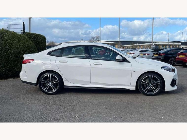 Active guard plus, Attentiveness assist, Auto start-stop, Bluetooth hands free facility with USB audio interface + WiFi interface for wireless connection of mobile terminal devices + audio streaming, BMW Intelligent Personal Assistant, BMW Live Cockpit Professional with 10.25" high resolution instrument and control display, BMW Online services, BMW operating system with 7.0 mid interface, BMW Teleservices, Check Control warning system for monitoring of lights and door/luggage compartment open warning, Cruise control with braking function, iDrive controller with 7 short cut favourite buttons on centre console, Integrated navigation data with map data via USB +features such as 3D landmarks and micro city models, Integrated owners handbook, Intelligent voice assistant, Lane departure warning system, M Sports steering, On board computer - average speed+fuel consumption, service interval, clock/date, odometer/trip meter, outside temperature display and ice warning, Optimum shift indicator, Personal Profile, Pull away assistant, Speed limiting function, Aluminium lightweight construction, Balancer shaft, Double VANOS, Drive performance control with ECO PRO comfort + sport mode, Dual clutch automatic transmission, Electronic differential lock, High precision injection, M Sport suspension with stiffer spring/damper set-up and vehicle lowered by 10mm + twin tube gasfilled shock absorbers and Anti roll bars, Performance Control, Petrol Particulate Filter, VALVETRONIC engine management, 2x USB Type C ports (for charging and data transfer), 4G LTE Connectivity with hard wied 4G network sim card, DAB digital radio, MP3 players and RDS double tuner, Automatically dimming rear view mirror, Body colour door handles, Body colour mirror caps, Chrome 'M' logo side designation, Chrome exhaust single tailpipe, round, Direction indicator side lights integrated exterior mirrors, Electric windows - front and rear, with open/close fingertip control and trap release, Exterior mirrors - electrically folding with anti-dazzle, Fading support, Follow me home headlights, Front and rear bumper system with replaceable deformation elements, Front door sill finishers in black plastic with M designation in metallic look, Heated, electrically adjustable exterior mirror aspheric on driver side, convex on passenger side, High gloss black B pillar finish, High gloss shadow line exterior trim, High level third brake light, LED daytime running lights, LED front fog lights, Lightweight engineering, Model designation on right side of tailgate, Preparation for high beam assistant, Rain sensor with automatic headlight activation, Rear boot, Rear fog lights, Rear side wing doors, Reversing light in rear light cluster, Welcome lighting, 12V power socket in centre console, 2 cupholders in front centre console, 3 rear seat head restraints, 3 rear seats, 3 spoke M sports design leather steering wheel finished in nappa leather with specific M badge, Anthracite finished floor mats with contrasting surround, Anthracite headlining, Automatic two zone climate control air conditioning, Child seat ISOFIX attachment for two outer rear seats and front passenger seat with anchorage points, Conditioned based service, Driver and front passenger seat heating, Front and rear door pockets including bottle trays, Front and rear side armrests integrated into door trim, Front armrest foldable with integrated storage compartment, Front centre interior light over interior mirror and rear centre automatic interior light when door is opened/ignition switched off or via remote key, Front head restraints, Front passenger seat, Front sports seats with electric side bolster adjustment, Glove compartment, Glovebox with light, Luggage compartment lighting, Manually adjustment steering wheel column, Multi-function controls for steering wheel, Sun visors with vanity mirrors and insert tab, Through loading system with 40/20/40 split folding rear seat, Two lashing eyes, Additional interior lighting pack - 2 Series Gran Coupe, Connected pack professional - 2 Series Gran Coupe, Extended storage pack - 2 Series Gran Coupe, M Sport exterior styling aerodynamics pack - 2 Series Gran Coupe, 2 tone horn, Airbag - Front driver and passenger, front and rear head, front side, curtain head protection, manual deactivation of front passenger airbag possible, Anti lock braking system (ABS) with cornering brake control, BMW emergency call, Brake drying, Braking readiness, City braking function, Crash sensor activating of airbags, Unlocking doors, hazard warning lights, interior light, safety battery terminal, Dynamic stability control + (DSC+), Dynamic Traction Control - DTC, Electrically operated hand brake, Rear brake discs, Rear child proof door locks, Seat belt security check for driver and front passenger, Seatbelt warning, Side impact protection, Three point seat belts on all seats including front belt stopper, pyrotechnic belt tensioners and belt force limiters, Trailer stability control, Tyre pressure monitoring system, Ventilated front disc brakes, Warning triangle and first aid kit, Central locking switch for all doors, fuel filler cap and luggage compartment, Deadlocking function system to all doors, Drive away locking system on all doors and luggage compartment, Locking wheel bolts, Start/Stop button (illuminated) in centre console with keyless engine start and Auto Start-Stop deactivation button, Thatcham Cat.1 alarm and immobiliser, Two remote control key with integrated key - open/close doors/fuel flap/tailgate +1 button for unlock compartment with M design high gloss black inlay, Contrast stitching on instrument panel, 18" Burnished M double spoke bi-colour alloy wheels finished in orbit grey - style 819M, Reduced rolling resistance tyres,