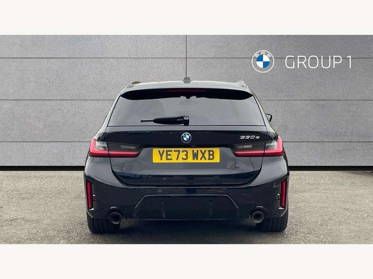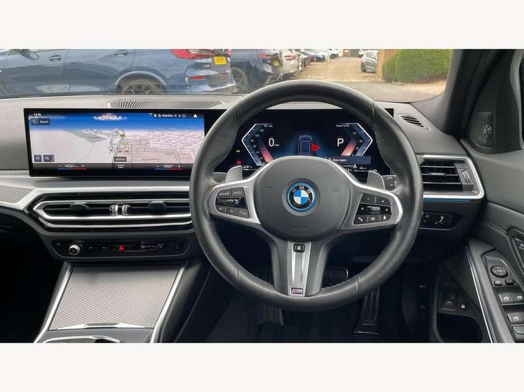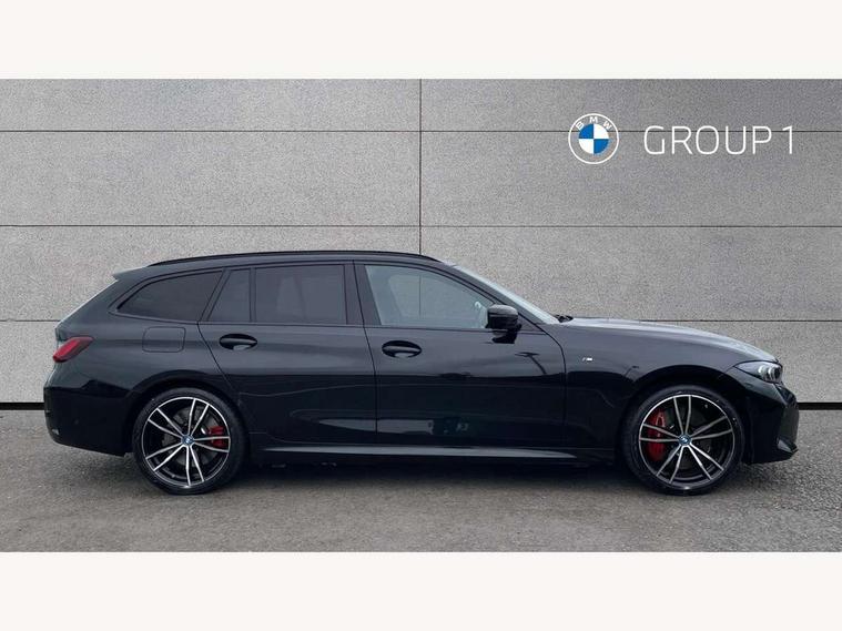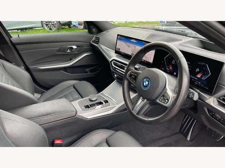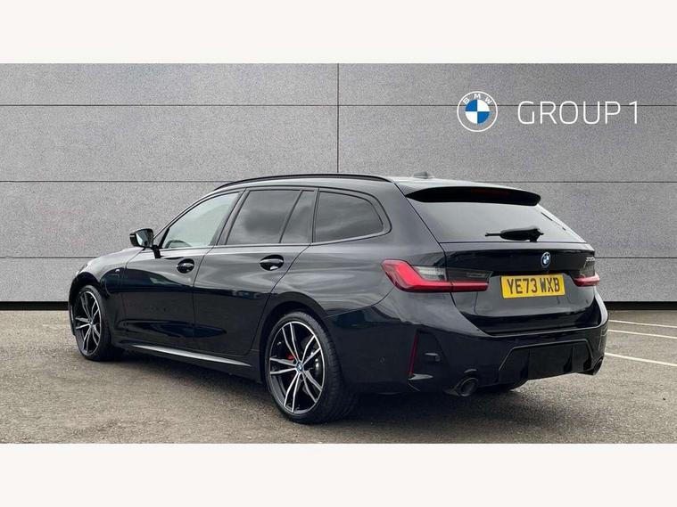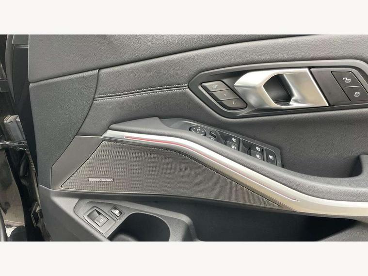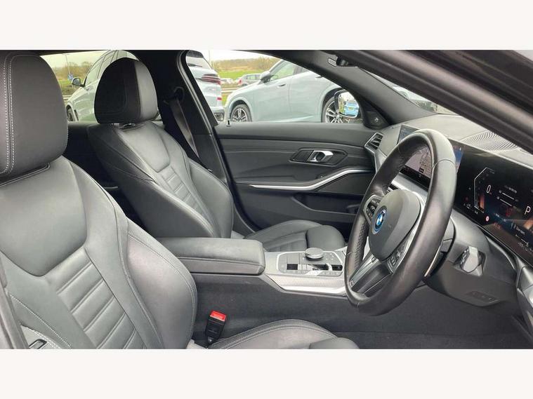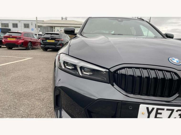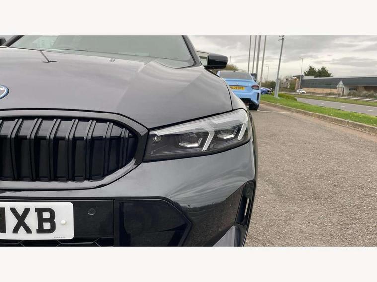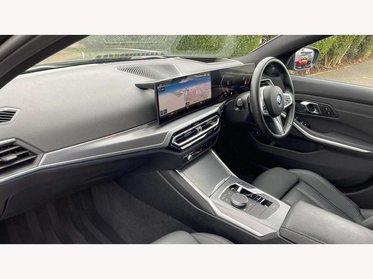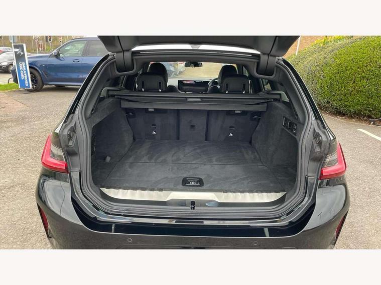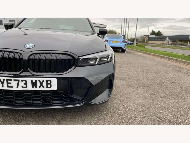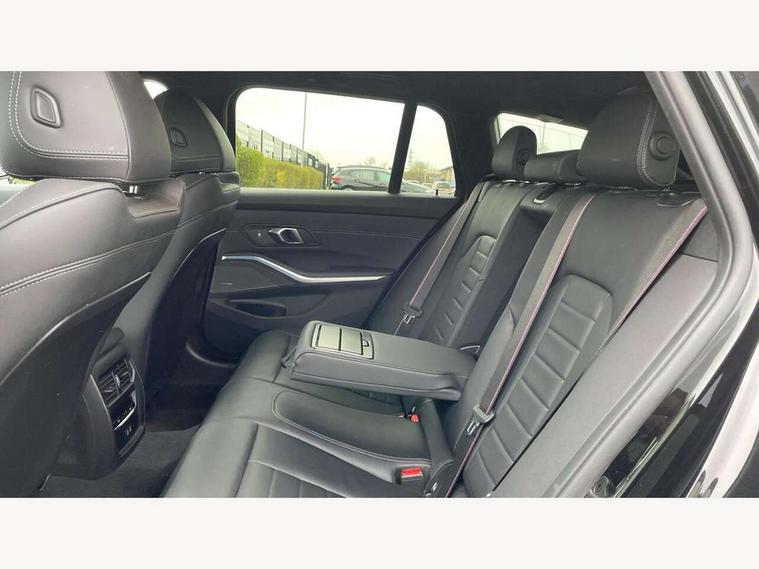 Active guard plus, Attentiveness assist, Automatic Start/stop button, BMW Iconic sounds electric, BMW iDrive, BMW Teleservices, Condition based service, ConnectedDrive Services, Driving experience switch, Live cockpit plus with Navigation + 12.3" instrument display + 14.9" display, Intelligent voice assist, 2 USB, 4G LTE connect, Oil sensor for level and grade, PAS, Preparation for driver assistance, Shifting point display, Variable sport steering, Double joint spring strut front axle, Electronic differential lock control (EDLC), Fast charging cable - Mode 3, Fuel tank breather system, Sport automatic transmission with steering-wheel mounted gearshift paddles and launch control, Standard suspension, DAB tuner, 3rd brake light, Acoustic glazing, Automatic headlight beam throw control with load dependent regulating reaction, dynamic compensation of braking dive and acceleration squat, BMW emblem, engine compartment lid and tailgate, Body colour roof fin, Door sill strips, Electric windows - front and rear, with open/close fingertip control, anti-trap facility and comfort closing, Follow me home headlight function, Front and rear bumper system with replaceable deformation elements, Front apron plastic in body colour, Fuel filler flap - right rear in body colour, Heated washer jets, High gloss shadow line exterior trim, High gloss shadow line roof rails, Illuminated bow type door handles in body colour drivers side with door lock, Interior rear view electrochromatic mirror with automatic anti dazzle function, LED rear lights, Licence plate panel integrated into front bumper and tailgate, Matt black B-pillar finsher, Matt black window recess cover, Model designation on right side of tailgate, One piece front bumper cover including towing eye cover in body colour, Rain sensor with automatic headlight activation, Rear side wing doors, Rear wiper, Reversing lights, Side frame decorative moulding black matt, Visible exhaust tailpipe finisher, Welcome lights in interior and door handle area, 12V power socket in front storage compartment, 2 front cupholder in centre console with clamping elements and matt black inlay, 3 seat bench in 2nd row, 3 zone automatic air conditioning, 40:20:40 split folding rear seat with loading system, Ambient inside door handle light, Ambient light design projected onto the left and right entering and exiting area, Ambient lighting front and rear with 9 selectable colours, Ambient storage compartment lighting in the centre console, Anthracite headlining, Armrest integrated in front and rear door trim + front centre console armrest, Battery in luggage compartment, BMW ID, Contour lighting in instrument panel and door trim panel, Cruise control operation in steering wheel, Driver backrest width adjustment, Folding rear centre armrest with 2 cupholders, Front and rear ambient footwell lighting, Front and rear door exit lighting (left / right), Front and rear headrests, Front and rear reading lights, Front and rear velour floor mats, Front sport seats, Heated front seats, Height adjustable mechanically and infinitely variable steering column, Illuminated armrest storage compartment, Illuminated glove compartment, Illuminated luggage compartment, Lashing eyelets in luggage compartment, M Sport multifunction leather steering wheel, Make-up mirror lights, Single front passenger seat, Standard seat for driver and passenger with manual adjustment, Sunvisors with vanity mirrors and ticket pocket, Toolkit located in luggage compartment, Connected pack professional - 3 Series Saloon/Touring, Interior and exterior mirror pack - 3 Series Touring/Saloon, M Aerodynamics package - 3 Series Saloon/Touring, M sport exterior styling pack - 3 Series Saloon/Touring, Storage compartment pack - 3 Series Saloon/Touring, 3x3 point rear seatbelts, BMW emergency call, Child locks on rear doors, Crash sensor activating of airbags, Unlocking doors, hazard warning lights, interior light, safety battery terminal, Driver and front passenger with seat occupancy detection for driver's and passenger side, Driver and passenger side airbags, body protection at side and airbags deploy from seat backrests, Dynamic brake control, Dynamic stability control + (DSC+) - Anti-lock Braking System (ABS) with brake assist and cornering brake control + Automatic Stability Control (ASC), Dynamic Traction Control - DTC, Electric parking brake including automatic hold function and automatic release of the parking brake when driving off, Head airbags in 1st and 2nd row, head protection at side, curtain airbags open from headliner above 1st and 2nd row, Plastic fuel tank, Side impact protection, Tyre pressure monitoring with three level warning strategy, Ventilated front and rear disc brakes, Warning triangle and first aid kit, Alarm system, Centre lock switch, Closing system with central locking, Electronic vehicle immobiliser,