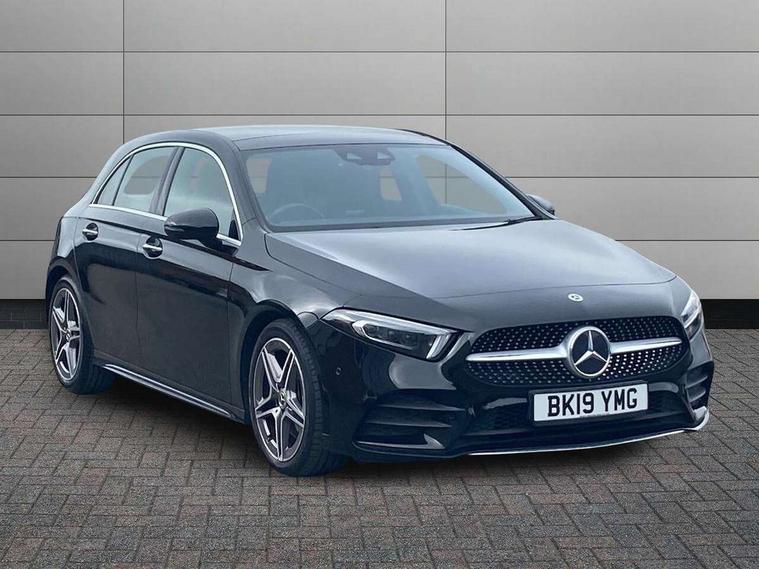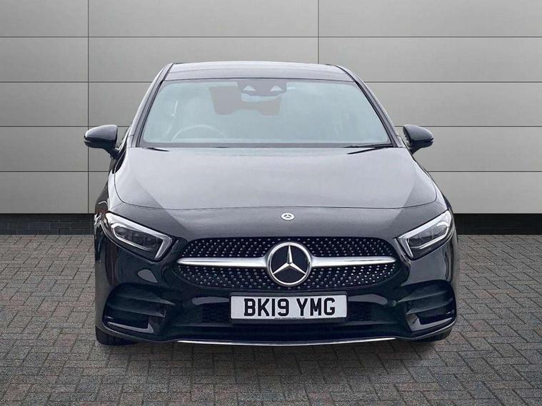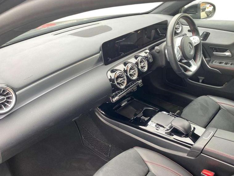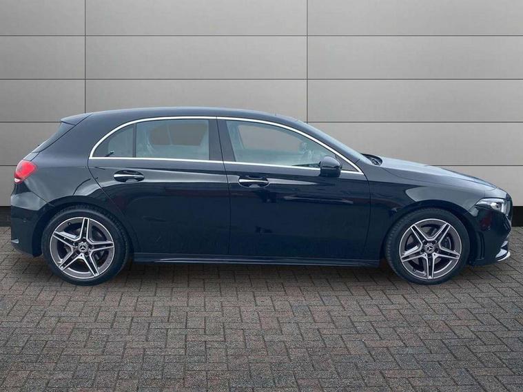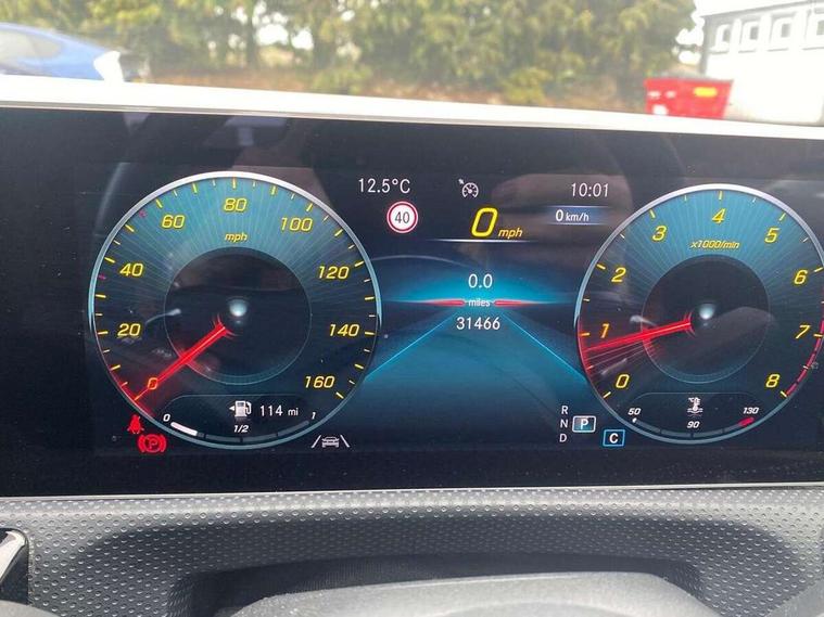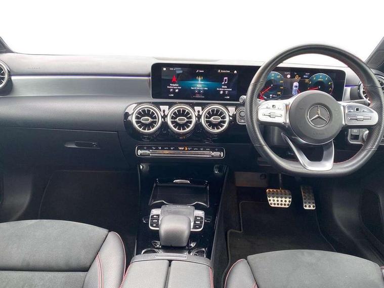10.25" Digital instrument cluster display screen, 180 degree rear view camera with parking guidelines, Active lane keep assist, Active park assist with parktronic system including front and rear parking sensors, Attention assist, Brake pad wear indicator warning light, Direct steering, DYNAMIC SELECT with a choice of driving modes (ECO, Comfort, Sport and Individual), ECO start/stop function, Fluid level warning indicator for fuel, oil, coolant and washer fluid, Hard-disk navigation, Lamp failure indicator, Mercedes me connect including emergency call system, accident recovery, breakdown and maintenance management, Outside temperature gauge, Radio aerial integrated into roof spoiler, Service indicator (ASSYST), Speed sensitive power steering, Trip computer, Voice activation, Lowered comfort suspension, DAB Digital radio, Dual bluetooth interface, 2 USB ports (type C), MBUX multimedia system with DAB digital radio and touchpad including satellite navigation, Mid-range sound system, 4 Electric Front and Rear windows, Active aerodynamics with AIRPANEL in the front apron, Adaptive brake lights, AMG front, rear apron and side skirts, Blue tinted glass, Body colour bumpers, Body colour door handles, Body colour side skirt, Body coloured door mirrors, Chrome beltline trim, Diamond radiator grille with chrome pins and silver louvre + chrome insert, Electric adjustable and heated door mirrors with integrated LED side indicators, Exhaust system - Twin trapezoidal tailpipes in polished stainless steel, Heated glass rear windscreen + timer control, LED daytime running lights, LED tail lamp, LED third brake light, Multibeam LED with adaptive highbeam assist plus, Panoramic sliding sunroof, Rain sensor windscreen wipers, Rear fog lights, Rear wiper, 12V socket, 3 Spoke flat bottom leather multi function steering wheel with perforated leather in grip area, 40:20:40 split folding rear seats, Air vents surround and cruciform nozzle in silver chrome, AMG floor mats with red stitching, Artico man-made leather/Microfibre Dinamica upholstery with red contrast stitching, Auto Mercedes-Benz child seat recognition sensor, Black roof lining, Brushed stainless steel sports pedals with rubber studs, Controller on centre console with chrome surround, Cup holder and stowage compartment lighting, Electric front seats with memory function, Freight packaging without tie-down hooks, Front centre armrest with storage compartment, Front door sills with Mercedes Benz lettering, Front footwell lights, Front reading lamps, Front seat backs luggage nets, Front seat cushion length adjustment, Front signal exit lamp, Front vanity lights, Gearshift paddles on steering wheel, Handle recess/closing light, Heated front seats, Height/reach adjustable steering column, Illuminated door sills, Illuminated glovebox, Interior lighting - 64 colour Ambient lighting, ISOFIX Child seat top tethers and anchor fixings, Oddments tray lighting, Rear armrest, Rear head restraints, Rear Reading Lamps, Seat occupancy sensor for front passenger seat, Spectacles compartment for driver, Sports seats with integrated headrests, Storage compartment under load area floor, Stowage compartment in centre console with retractable cover, Sunvisors with illuminated vanity mirrors, Touchpad, Touchpad illumination, Twin front cupholders, Two zone thermotronic luxury automatic climate control, Light and sight pack - A Class, Mirror package - A Class, Seat comfort pack - A Class, 3 rear 3 point seatbelts, ABS with Brake Assist, Active bonnet, Adaptive brake assist with hold function and hill start assist, Black seatbelts, Brake calipers with Mercedes-Benz lettering + perforated brake discs, Childproof locks manually operated for rear doors and electrically operated for rear power windows, Crash responsive emergency lighting, Driver and passenger head and side airbags, Drivers knee airbag, Dual stage driver/passenger airbags, Electronic parking brake, ESP curve dynamic assist, ESP with ASR, Front and rear seatbelt reminder, Tyre pressure monitoring system, Warning triangle and first aid kit, Window airbags, Alarm system/interior protection/immobiliser, Keyless Go Lock/Unlock function, Remote central locking and crash sensor with emergency opening function, 18" AMG 5 twin spoke light alloy wheels in titanium grey with highsheen finish, Summer tyres, Tirefit sealant kit,