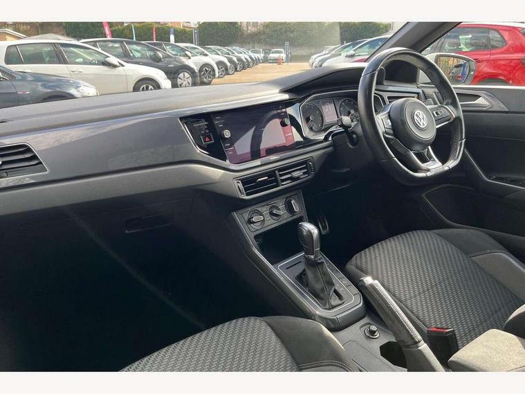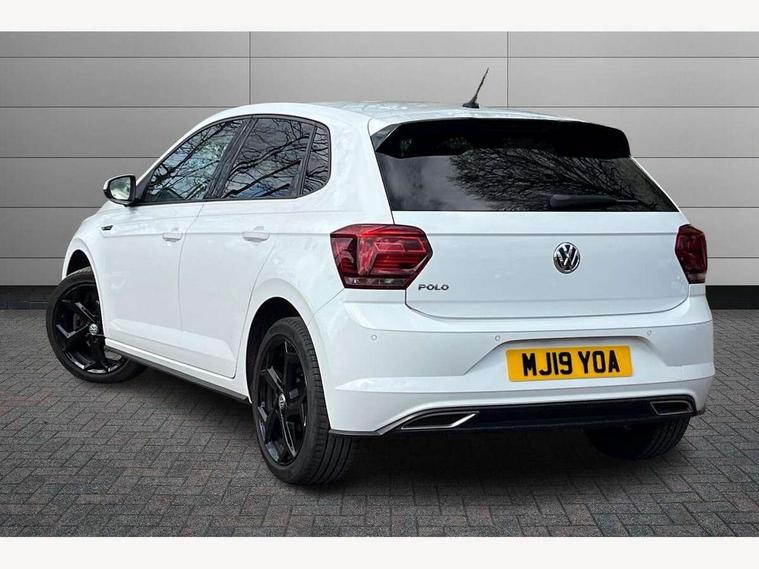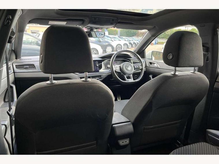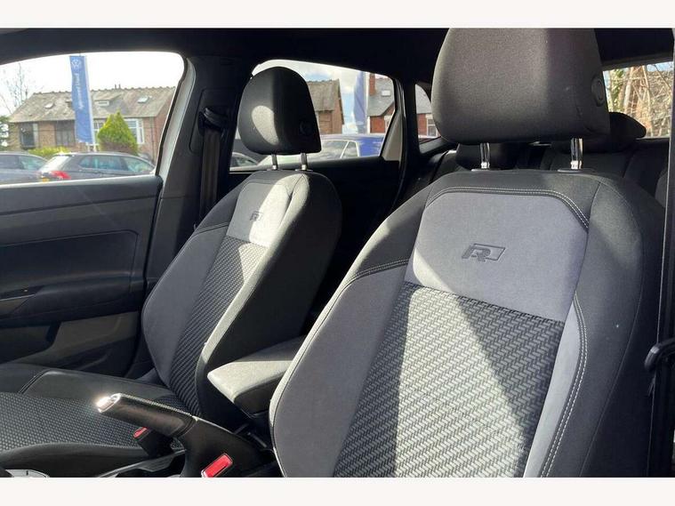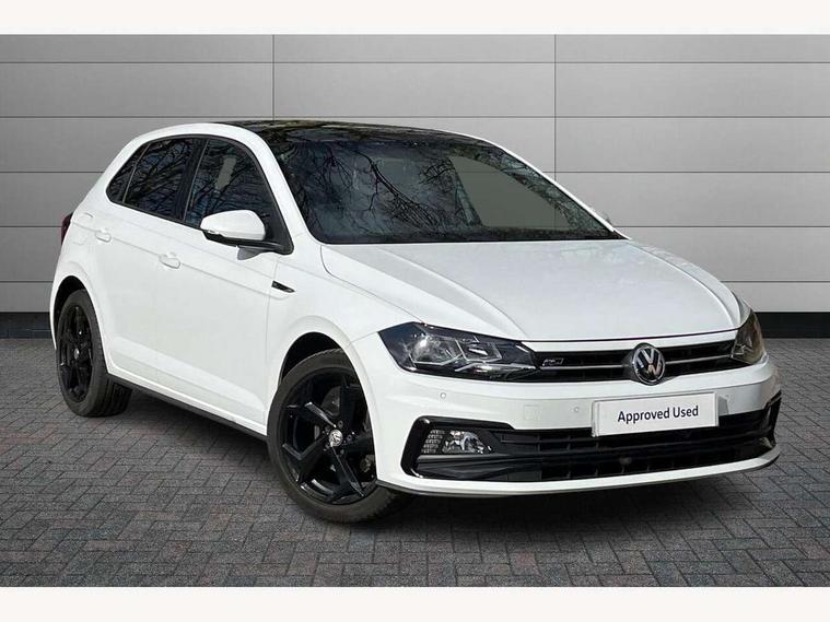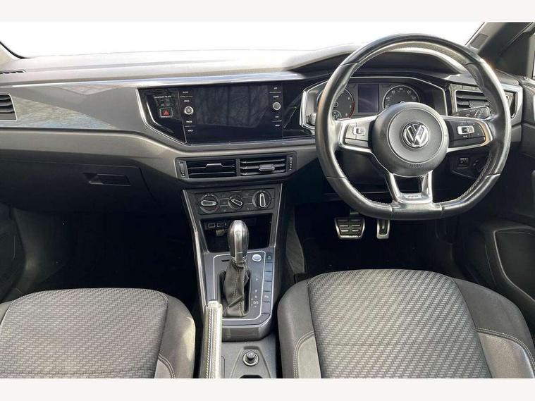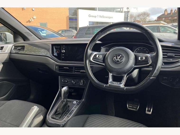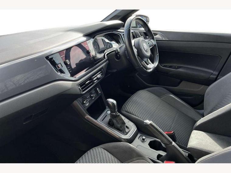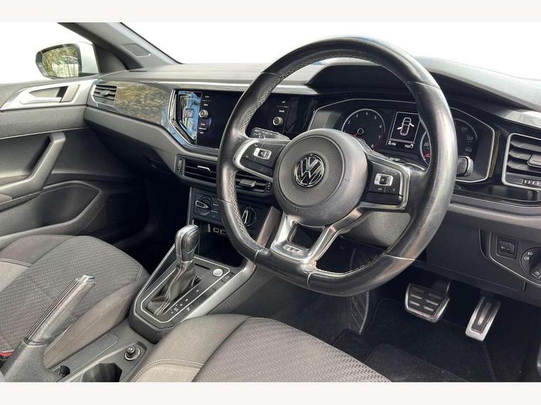 App-Connect, Bluetooth Telephone preparation, Driver alert system, Multifunction colour display, PAS - speed related, Service interval indicator, Start/stop system, Trip computer, Warning buzzer and light for front seatbelts unfastened, Battery regeneration during braking, 6 speakers, Composition media system with radio, glovebox mounted CD, colour touch screen, SD card, aux-in, USB, multimedia interface, DAB Digital radio, Automatic dimming interior rear view mirror with rain sensor, Automatic headlamp activation, Black grille with chrome surround, Black radiator grille with chrome insert, Body colour bumpers, Body colour door handles, Body colour rear spoiler, Body coloured side sills, Chrome insert to lower bumper, Chrome trimmed front air intake surrounds, Electric folding door mirrors, Electric front windows, Electric operated/heated door mirrors, Front fog lights including static cornering, Front wash/wipe with interval delay, Fully galvanised body, Heated rear window with auto timer, High level 3rd brake light, LED darkened rear light clusters, LED daytime running lights, LED rear number plate lights, Manual coming/automatic leaving home lighting function, R Line body kit, Rear diffuser, Rear electric windows, Rear windscreen washer and wiper with interval delay, Stainless steel door sill protection, Twin chrome exhaust tailpipes, 12V power socket in centre console, 2 bag hooks in luggage compartment, 2 cupholders, 3 rear head restraints, 3 spoke steering wheel, 60/40 split folding rear seat, Ambient lighting, Carbon flag cloth upholstery, Chrome-plated electric window button surround, Driver/front passenger seat height adjustment + underseat drawers, Driver/passenger sunvisors with illuminated vanity mirrors, Dust/pollen filter, Front + rear carpet mats, Front centre armrest with storage compartment, Front seat backrest storage nets, Front sport seats, Front/rear reading lights, Gear change selection via paddle shift on steering wheel, Glovebox, Handbrake grip button in chrome effect, Height/reach adjustable steering column, Instrument lighting, white adjustable panel illumination, Interior light with delay, Isofix Preparation 2 Rear child seats, Jack and tool kit, Leather multifunction steering wheel, LED footwell lights, Luggage compartment cover, removable, Luggage compartment lighting, Matt chrome gear lever gaiter surround, R Line badge, Stainless steel pedals, Storage compartment in front doors, Storage compartment in rear doors, Storage compartment under front seats, Titanium black headlining, Titanium black roof lining, Variable boot floor, Variable Luggage compartment, Light and sight pack - Polo, R Line styling pack - Polo, 3 point height adj front seatbelts + pretensioners, 3x3 point rear seatbelts, ABS, Automatic post collision braking, Driver/front passenger airbag, Driver/Passenger whiplash optimised head restraints, ESP with EDL + ASR, Front and rear passengers curtain airbag system including front side airbags, Front passenger airbag deactivation, Front/rear disc brakes, Hill hold control, Hydraulic Brake Assist (HBA), Two tone horn, Tyre pressure monitoring system, Alarm with remote central locking and interior protection, Electronic engine immobiliser, Chrome plated electric mirror adjustment light switch surround, Cortina silver air vent surround, Matt chrome interior trim, Snow shadow steel dashboard pads, Steering wheel aluminium inserts, Space saver spare wheel,