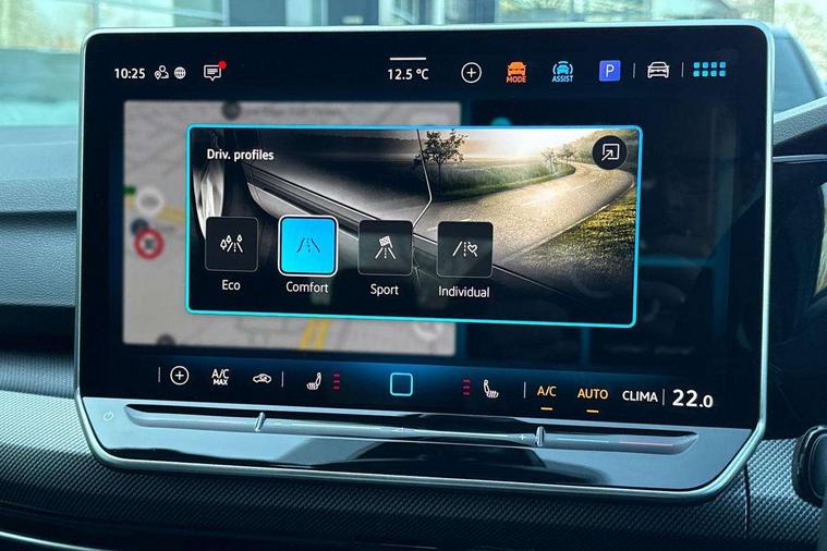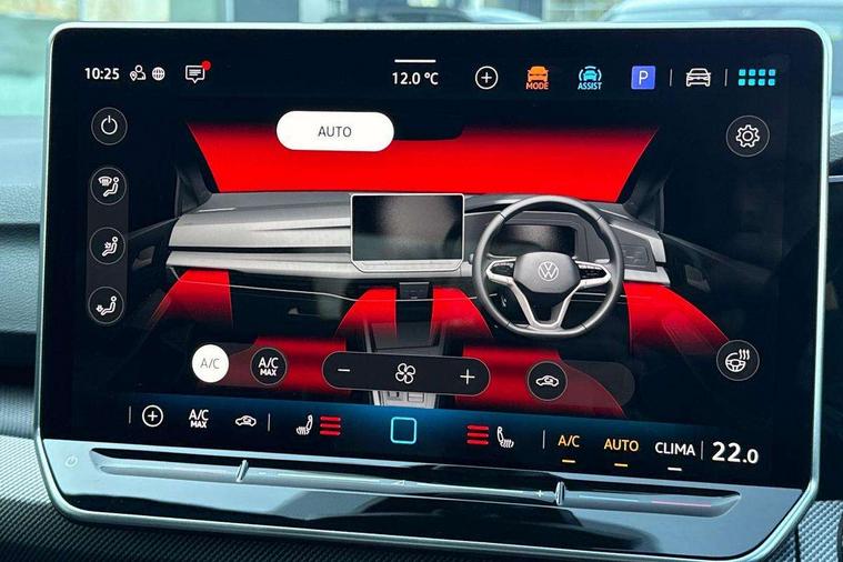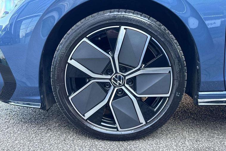 Activated carbon canister, Adaptive cruise control (ACC), Advanced driver attention and drowsiness monitor, Dynamic road sign display, Dynamic steering, E-Sim card for online connectivity, eCall emergency call system, Multi-color Digital cockpit pro, selection of different info profile possible, Multifunction front facing camera for distance control, Navigation system, Oncoming vehicle braking when turning including swerve support, Speed limiter, Speedo, rev counter, electronic odometer, trip, service interval display, exterior temperature and fuel gauge, Traffic jam assist, Voice enhancer and voice control, Warning signal and warning light for front and rear seatbelts not fastened, We connect plus preparation, We connect preparation, Wireless app connect, Hybrid propulsion system, Petrol Particulate Filter, Start-stop system with battery regeneration (recuperation - energy recovery during braking), XDS electronic differential lock for improved traction and handling, 2 USB C ports in front, 2 USB charging sockets on the centre console in the rear charging capacity upto 45W, Digital radio reception (DAB), Diversity antenna for FM reception, Gaming platform via car app, Infotainment system with 12.9" display, Mobile phone interface with inductive charging feature, 3rd brake light, Auto dimming rear view mirror, Automatic headlamp activation with Coming home and Leaving home feature, Body colored bumpers in R-Line style, Body colour door handles, Exterior ambient lighting, Exterior mirrors convex on the left and aspherical on the right, Front and rear electric windows, Heat insulating windshield made of laminated glass, LED separate daytime running light, Rain sensor, Rear exhaust tailpipe, Rear fog light on one side and reversing lights on both sides, Rear side wing doors, Rear windscreen washer and wiper with interval delay, Remote electrically foldable door mirrors, puddle lights and reverse activated passenger's door mirror, Volkswagen logo in front, illuminated lighting animation with wake up/goodbye scenario and illuminated door handles, Welcome light with surround lighting, 12V socket in front centre console, 12V socket in luggage compartment, 3 rear head restraints, 3 seat bench in 2nd row, Ambient lighting with 30 colour including LED light unit in front footwell with selectable light colour, Black roof lining, Brushed stainless steel pedals, Chrome plated radiator grille inserts, air vent surrounds and light switch surrounds, Door insert, side trim panel and arm support in leatherette, Front + rear black carpet mats, Front centre armrest, Front seat lumbar support adjuster, Integrated front head restraints, ISOFIX anchors for child seats on outer rear bench seats and on front passanger seat compatible for i-Size, Luggage compartment lighting, Manual height adjustable front passenger seat, Manually height adjustable driver seat, Plastic gear knob, Premium sports seats in front, Rear cupholder and loadthough, Sardegna cloth upholstery with front and outer rear seats Art Velour inner sides of bolsters, Single front passenger seat, Split folding backrest with centre armrest and unsplit rear seat bench, Sun visors with illuminated vanity mirrors, Titanium black instrument panel, Black exterior Styling package with Matrix LED headlights - Golf, Winter package - Golf DSG Estate/Hatchback, 3 point height adj front seatbelts + pretensioners, 3 rear three point seatbelts, ABS, Autonomous emergency braking front assist with pedestrian and cyclist monitoring, Child locks on rear doors, Driver and front passenger airbag with front passenger airbag deactivation, Electronic parking brake with auto hold, ESC (Electronic Stability Control), Extended pedestrian protection measures, Hill start assist, Rear disc brakes, Two tone horn, Tyre pressure loss indicator, Volkswagen roadside assistance, Anti theft wheel bolts, Preparation for alcohol interlock, Decorative inserts carbon grey for dashboard and front door trim panels, 18" Leeds alloy wheels, Tool kit for tyre mobility set, Tyre mobility kit Includes 12V compressor and tyre sealant,