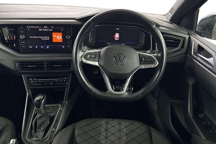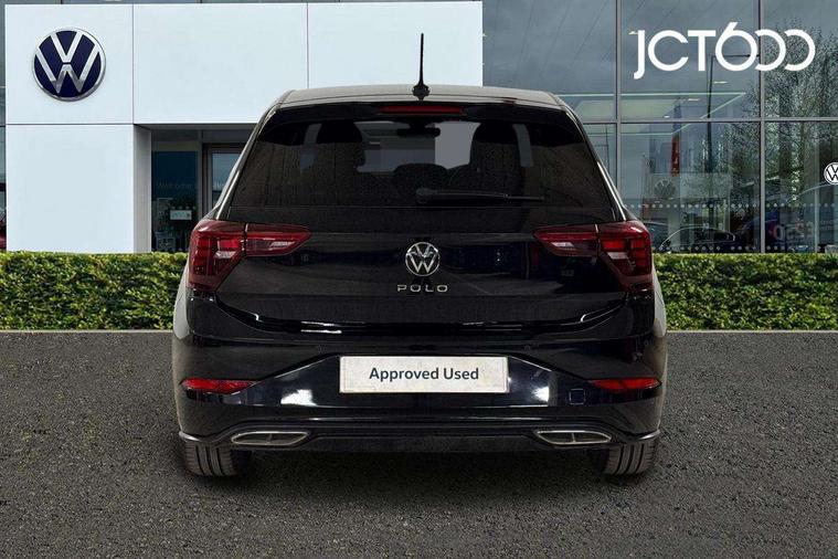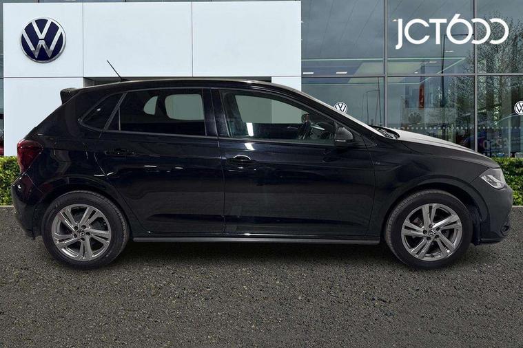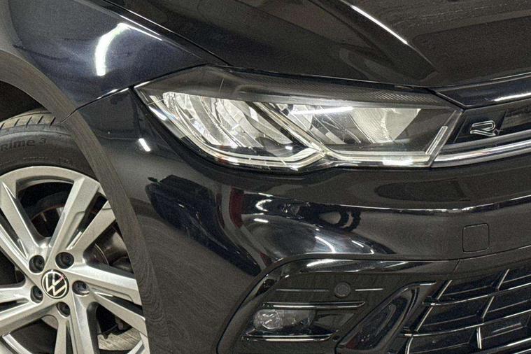 Adaptive cruise control with follow-to-stop and speed limiter, Bluetooth mobile phone interface, Digital Cockpit Pro with 10.25" Display, Driver alert system, Dynamic road sign display, Emergency call service, Power assisted speed sensitive steering, Preparation for We connect and We connect plus, Speedo and rev counter, electronic odometer, trip, service interval display and fuel gauge, Standard rear axle, Travel Assist - Lane keeping system and traffic jam assist, Travel assist including emergency assist, Trip computer, Warning signal and warning light for front and rear seatbelts not fastened, Washer fluid level indicator, Wireless app connect, Front wheel drive, Rear shock absorpion, Start-stop system with battery regeneration (recuperation - energy recovery during braking), DAB Digital radio, Diversity antenna for FM reception, Front and rear 6 speakers, Body colour bumpers, Body colour door handles, Body colour door mirrors, Electric front windows, Front scuff plates with R-Line logo, Heat insulating darkened glass in side and rear windows, Heat insulating glass windscreen, Power folding adjustable/heated exterior mirrors and front passenger exterior mirror lowering function, Rear electric windows, Rear fog light, Rear side wing doors, Rear tinted glass from B-pillar backwards approx 65% tinted, Rear windscreen washer and wiper with interval delay, Third brake light, 12V power socket in centre console, 2 USB-C ports in the front, 2 USB-C charging sockets on the center console in the rear, 3 rear head restraints, 60/40 split folding rear seat and rear seat bench not split, Air care climatronic air conditoning system with active combination filter and 2-zone temperature control, Black roof lining, Chrome plated radiator grille inserts, air vent surrounds and light switch surrounds, Door and side trim panel, Driver and front passenger seat height adjustment, Driver/passenger sunvisors with illuminated vanity mirrors, Front + rear carpet mats in recycled material, Front centre armrest, Front footwell illumination, Front seat backrest storage pockets, Front sports comfort seats, Handbrake lever handle in leather, Headliner in recycled material, Isofix child seat preparation easy-fit (for two outer rear seats, and front passenger seat) compatible with I-size, Karoso artvelours cloth upholstery, Leather trimmed gear knob, LED interior light with switch off delay and dimmer, 2 reading lights front and rear, Luggage compartment cover, Luggage compartment floor, Luggage compartment lighting, Lumbar adjustment for front seats, Single front passenger seat, Stainless steel pedals, Standard pedal cluster, Three spoke leather wrapped multifunction steering wheel with shifting paddles, Light and sight pack - Polo R-Line/Black Edition, 3 point height adj front seatbelts + pretensioners, 3x3 point rear seatbelts, ABS, Driver and front passenger airbag with front passenger airbag deactivation, Drivers and front passengers safety optimised head restraints, ESC (Electronic stability control) + EDL (Electronic Differntial lock) and ASR (Traction control), Extended and predictive pedestrian/ cyclist protection, Front curtain and side airbags with center airbag, Hill hold control, Manual child lock in rear doors, Single tone horn, Tyre pressure loss indicator, Alarm with interior protection, Anti-theft alarm system with interior monitoring, backup horn, and towing protection, Anti-theft wheel bolts, Electronic engine immobiliser, Chrome applications on rotary light, mirror adjustment, window regulator switches, outlet with frame in black, Dark grey anodised matt decorative inserts in dash and front door panels, Low rolling resistance tyres,