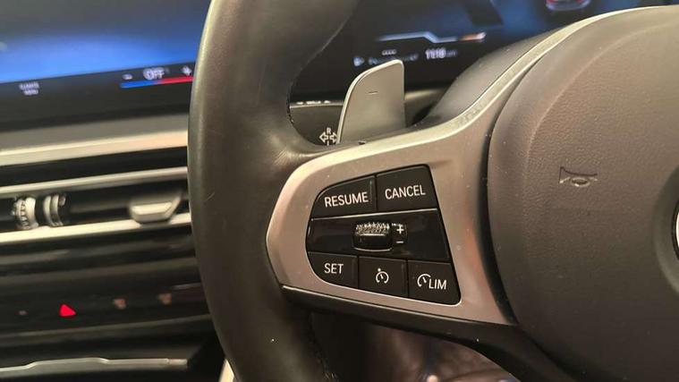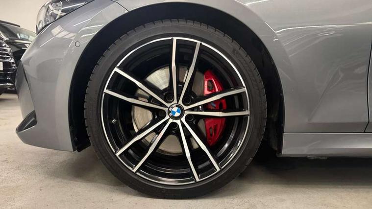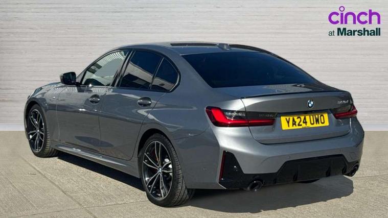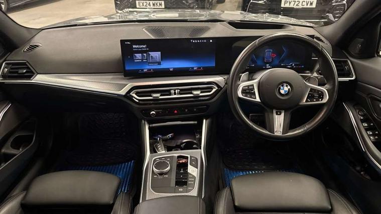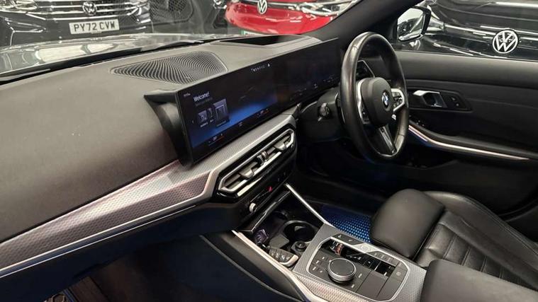 Active guard plus, Attentiveness assist, Automatic Start/stop button, BMW iDrive, BMW Teleservices, Condition based service, ConnectedDrive Services, Driving experience switch, Live cockpit plus with Navigation + 12.3" instrument display + 14.9" display, Intelligent voice assist, 2 USB, 4G LTE connect, Oil sensor for level and grade, Preparation for driver assistance, Shifting point display, Variable sport steering, 48V Mild hybrid technology, Double joint spring strut front axle, Electronic differential lock control (EDLC), Fuel tank breather system, Larger capacity fuel tank, M sport suspension, Sport automatic transmission with steering-wheel mounted gearshift paddles and launch control, DAB tuner, 3rd brake light, Acoustic glazing, Automatic headlight beam throw control with load dependent regulating reaction, dynamic compensation of braking dive and acceleration squat, BMW emblem, engine compartment lid and tailgate, Body colour roof fin, Door sill strips, Electric windows - front and rear, with open/close fingertip control, anti-trap facility and comfort closing, Follow me home headlight function, Front and rear bumper system with replaceable deformation elements, Front apron plastic in body colour, Fuel filler flap - right rear in body colour, Heated washer jets, High gloss shadow line exterior trim, Illuminated bow type door handles in body colour drivers side with door lock, Interior rear view electrochromatic mirror with automatic anti dazzle function, LED rear lights, Licence plate panel integrated into front bumper and tailgate, Matt black B-pillar finsher, Matt black window recess cover, Model designation on right side of tailgate, One piece front bumper cover including towing eye cover in body colour, Rain sensor with automatic headlight activation, Rear boot, Rear side wing doors, Reversing lights, Side frame decorative moulding black matt, Visible exhaust tailpipe finisher, Welcome lights in interior and door handle area, 12V power socket in front storage compartment, 2 front cupholder in centre console with clamping elements and matt black inlay, 3 seat bench in 2nd row, 3 zone automatic air conditioning, 40:20:40 split folding rear seat with loading system, Ambient inside door handle light, Ambient light design projected onto the left and right entering and exiting area, Ambient lighting front and rear with 9 selectable colours, Ambient storage compartment lighting in the centre console, Anthracite headlining, Armrest integrated in front and rear door trim + front centre console armrest, BMW ID, Contour lighting in instrument panel and door trim panel, Cruise control operation in steering wheel, Driver backrest width adjustment, Folding rear centre armrest with 2 cupholders, Front and rear ambient footwell lighting, Front and rear door exit lighting (left / right), Front and rear headrests, Front and rear reading lights, Front and rear velour floor mats, Front sport seats, Heated front seats, Height adjustable mechanically and infinitely variable steering column, Illuminated armrest storage compartment, Illuminated glove compartment, Illuminated luggage compartment, Lashing eyelets in luggage compartment, M Sport multifunction leather steering wheel, Make-up mirror lights, Single front passenger seat, Standard seat for driver and passenger with manual adjustment, Sunvisors with vanity mirrors and ticket pocket, Toolkit located in luggage compartment, Connected pack professional - 3 Series Saloon/Touring, Interior and exterior mirror pack - 3 Series Touring/Saloon, M Aerodynamics package - 3 Series Saloon/Touring, M sport exterior styling pack - 3 Series Saloon/Touring, Storage compartment pack - 3 Series Saloon/Touring, 3x3 point rear seatbelts, BMW emergency call, Child locks on rear doors, Crash sensor activating of airbags, Unlocking doors, hazard warning lights, interior light, safety battery terminal, Driver and front passenger with seat occupancy detection for driver's and passenger side, Driver and passenger side airbags, body protection at side and airbags deploy from seat backrests, Dynamic brake control, Dynamic stability control + (DSC+) - Anti-lock Braking System (ABS) with brake assist and cornering brake control + Automatic Stability Control (ASC), Dynamic Traction Control - DTC, Electric parking brake including automatic hold function and automatic release of the parking brake when driving off, Head airbags in 1st and 2nd row, head protection at side, curtain airbags open from headliner above 1st and 2nd row, Plastic fuel tank, Side impact protection, Tyre pressure monitoring with three level warning strategy, Ventilated front and rear disc brakes, Warning triangle and first aid kit, Alarm system, Centre lock switch, Closing system with central locking, Electronic vehicle immobiliser,