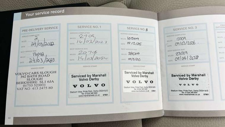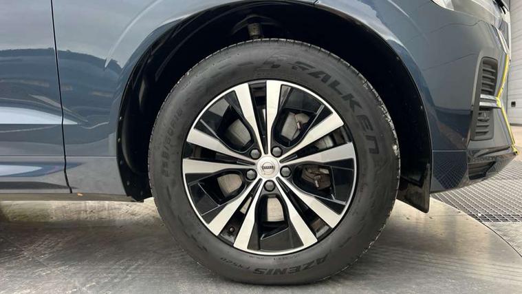 12.3" Active TFT crystal driver's instrument display, 9" centre console touch screen, Adjustable steering wheel force, Bluetooth handsfree system, Drive mode selector, Driver alert control with lane keeping aid, Emergency services call system, Front and rear park assist, Google Automotive Services, Oncoming Lane Mitigation, Power tailgate, Service interval indicator, Speed limiter, Speed sensitive steering, Trip computer, Volvo on call with App, Wireless/Inductive Mobile Phone Charging, 8 speed automatic transmission with start/stop + manual change functions, Diesel particulate filter, Dynamic chassis, DAB Digital radio, Steering wheel remote infotainment controls, Adaptive brake lights with high level LED brake lights, Auto dimming interior + exterior mirrors, Automatic headlight levelling system, Automatic LED Headlights + Active high beam incorporating daytime running lights, Colour co-ordinated door mirrors, Electric adjustable/heated/auto power folding door mirrors, Electric front+rear windows, Front aluminium tread plates, Home safe and approach lighting, Integrated roof rails in black, Piano black front grille with chrome surround, Rain sensor with automatic windscreen wiper activation, Rear side wing doors, Rear wiper, Roof antenna, Roof spoiler, Tinted windscreen, Visible VIN plate, 12V socket in front tunnel console and luggage compartment, 3 seat bench in 2nd row, A-pillar parking ticket holder, B Pillar ventilation, Blond headlining, Bright metal luggage threshold, Centre armrest storage illumination, Centre console cupholders and storage, Floor mats, Front footwell and side step illumination, Front reading lights, Head restraints for all seats, Heated front seats, Height/reach adjustable steering column, Illuminated glovebox, Illuminated luggage compartment, Illuminated vanity mirrors + ticket holder, Leather upholstery, Load cover, Load protection net, Power height adjustable passenger seat with lumbar support, Rear armrest with cupholder, Rear seat concealed storage, Single front passenger seat, Underfloor stowage compartment, Versatile split folding rear seat - 60/40, 5 three point seatbelts, City safety with steering support with Pedestrian + cyclist + large animal detection + front collision warning with full auto brake, Drivers knee airbag, Dual stage driver/passenger airbags, Electronic parking brake with auto hold, First aid kit, Hill descent control, Hill start assist, IC (Inflatable Curtains) - Full Length, Mechanical child locks on rear doors, Passenger airbag cut-off device, Road sign information display, Run off Road Mitigation, Run off Road Protection, Seatbelt reminder and pretensioners, SIPS (Side Impact Protection System), SIPS airbags, Slippery road and hazard light alert, Stability and Traction Control with Spin control, Engine Drag Control and Corner Traction Control, Tyre pressure monitoring system, Vehicle deceleration control with Anti-lock Brake System, Electronic Brake Distribution and Emergency Brake Assist, Warning triangle, WHIPS whiplash protection system - front, Anti-theft alarm including immobiliser/volume sensor + level sensor, Care key with user defined top speed, Key integrated remote control central locking + fuel flap with deadlocking system and auto open/close power windows, Keyless start, Locking wheel nuts, Private locking for tailgate, Iron ore inlays,