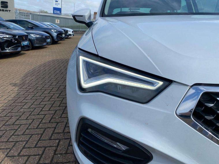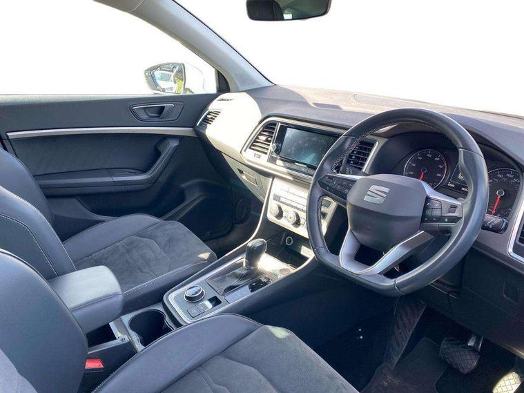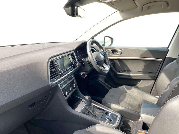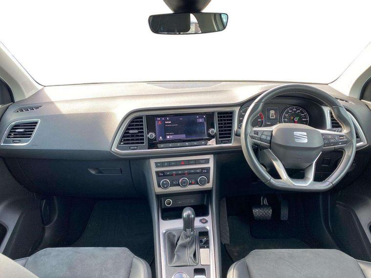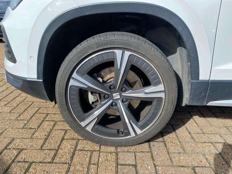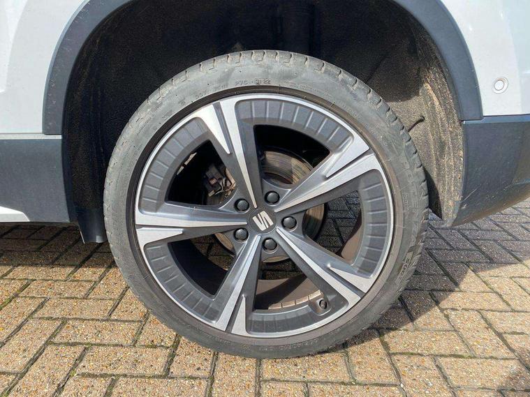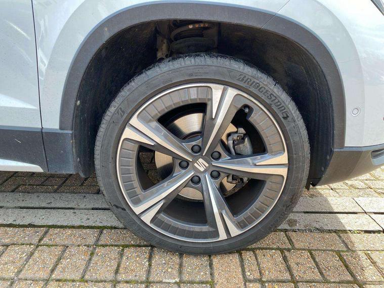 8" Digital cockpit, Colour multi-function on board computer display, E-call, Electric tailgate closing, Outside temperature gauge, Progressive power assisted steering, Rear view camera, SEAT drive profile with driving experience button - Normal, Sport, Eco and Individual mode, gearshift, steering and throttle response, Self parking functionality (includes front and rear parking sensors), Trip computer, Wired Full Link, Wireless phone charger, Steering wheel mounted audio/phone controls, Black simulated exhaust pipes, Black wheel arch surrounds, Body colour bumpers, Chrome front grille frame, Chrome roof rails, Chrome side window trim, Dark tinted rear windows, Daytime running lights, Door mirrors with welcome light silhouette, Dynamic headlight range control with self adjusting whilst driving, Electric adjustable/heated/folding door mirrors, Front and rear electric windows, Front grille hot stamping, Full LED headlamps with lens and LED front fog lamps with cornering function, Heated windscreen, Illuminated aluminium front door sill, LED rear tail lights with dynamic indicators, Rear fog lights, Rear side wing doors, Rear wash/wipe, Reflex silver side mouldings, Third brake light, 12v socket in front, 3 seat bench in 2nd row, 60/40 split folding rear seat, Drawer under right front seat, Dual zone climate control, Front and rear head restraints, Front centre armrest, Front seat back storage pockets, Height adjustable driver and passenger seat with lumbar adjustment, ISOFIX points in outer rear seats with top tether anchorage points, Leather steering wheel and gear knob, Microsuede upholstery with front comfort seats, Rear armrest and easy back seat release mechanism from boot, Single front passenger seat, Steering wheel mounted gearshift paddles, Convenience pack - Ateca, Interior lighting pack - Ateca, Media system plus pack - Ateca, Safe and driving pack - Ateca, 3x3 point rear seatbelts, ABS, Traction control system (TCS), Electronic stability control (ESC) and Electronic differential lock system (XDS), Airbags - Driver and front passenger airbag with deactivation, front side, two curtain and driver's knee airbags, Electric parking brake with auto hold function, Front and rear seatbelt reminder, Hill hold control, Manual rear child locks, Tiredness recognition system, Traction control, Tyre pressure monitoring system, Alarm, Keyless entry, Locking wheel bolts, Chrome interior detailing, 19" Exclusive 36/5 Machined Aerowheels in Nuclear Grey,