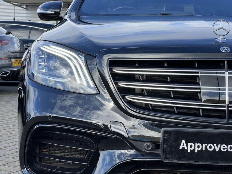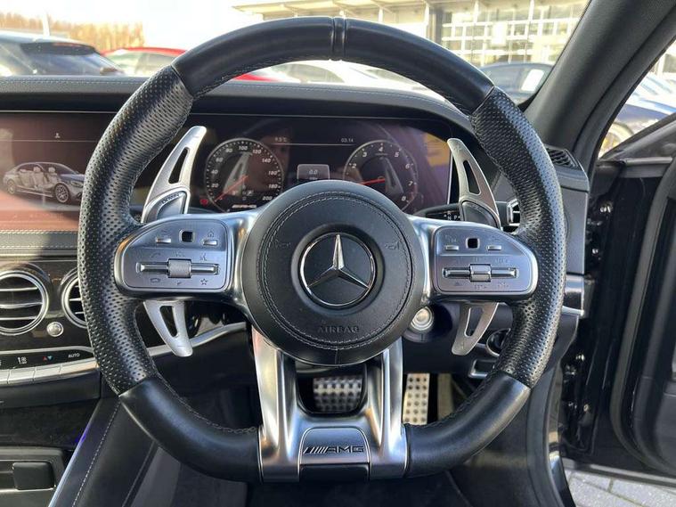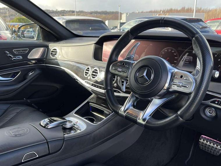 Active parking assist including parktronic and 360 degree camera, AMG specific IWC design analogue clock, AMG speed sensitive sports steering, Attention assist, Bluetooth interface for hands free telephone, Comand online HDD nav, colour display, 3d map, radio/MP3, speed limit assist, liinguatronic voice control, WLAN, SD card, 10GB music, media interface, Crosswind Assist, Digital operating instructions, Dual bonded widescreen cockpit consisting of an instrument and media display with AMG main menu and start up screen, ECO start/stop function, Energizing Comfort interior theme program, Front wireless charging system for mobile devices, Mercedes me connect including emergency call system, accident recovery, breakdown and maintenance management, Near field communication, Outside temperature gauge, Rear seat belt status indicator, Remote boot lid release and closing, Service indicator (ASSYST), Smartphone integration with Apple CarPlay and Android auto, Soft closing aid for doors and boot lid, Traffic sign assist, Trip computer in multifunction displays showing current fuel consumption, AMG Airmatic sport suspension, Petrol Particulate Filter, Burmester surround sound system with 13 speakers and a 9 channel amplifier with total output of 590 watts, Central controller dial to operate audio functions and telephone, DAB digital radio tuner, Two USB sockets in rear, Adaptive brake lights, AMG bodystyling front apron with black wing. high-gloss in trim strip and radiator grille, rear apron with black diffuser insert and twin tailpipe, AMG performance exhaust system with flap control by means of button, Automatically dimming rear view mirror and driver's exterior mirror, Body coloured bumpers, Electric adjustable/heated/folding door mirrors, Electric panoramic glass sunroof, Electric windows with pre-safe closing function, Green tinted glass, Headlight Assist and automatic headlight activation, Heat insulating dark-tinted glass starting from B-pillar, Infrared protective + noise insulating glass, LED daytime running lights, LED tail lights, Magic vision control with adaptive heated windscreen wiper system, Multi beam intelligent LED headlight system with adaptive high beam assist plus and ultra range high beam, Rain sensing wipers with two stage, Rear stainless steel boot sill protector, V8 BITURBO badge, V8 BITURBO lettering on front wings, 12V socket in front and rear centre console and boot, 2 cup holders in front and rear, 3 spoke AMG sports steering wheel in nappa leather with flattened bottom, gearshift paddles, 12 o'clock marking and touch control buttons, Ambient lighting with choice of 64 colour settings, AMG brushed stainless steel sports pedals with rubber studs, AMG emblem embossed in front centre armrest, AMG exclusive floor mats with AMG lettering, AMG illuminated door sill panels in brushed stainless steel at front and rear with AMG lettering, AMG sports seats with AMG V8 specific seat layout, optimised lateral support and AMG badge in front and rear backrests, Automatic child seat recognition sensor, Comfort ventilated front seats, Easy entry/ electrically adjustable steering column, Electrically lowering 3 rear head restraints, Front and rear illuminated vanity mirrors, Front seat backrests map pockets, Front seats full electric adjustment fore/aft/height, inclination and seat cushion adjustment, four way electric lumbar/height adjust head restraint, Front/rear centre armrests with stowage, Front/rear reading lights, Glasses stowage compartment, Heated front seats, Heated rear seats, Illuminated/air conditioned lockable glove compartment, Load securing rings in boot, Parcel nets in boot and front passenger footwell, Pre-safe impulse seats, Thermotronic luxury automatic climate control and two zone with three climate modes, Air-balance pack - S Class, Driving Assistance pack - S Class, Executive equipment line - S Class, Front seat comfort pack - S Class, Front seat memory pack - S Class, Keyless Go comfort pack - S Class, Active bonnet pedestrian safety measure, AMG high performance composite braking system, Anti lock braking system (ABS) with brake assist, Brake pad wear indicator front brakes, Driver/Front Passenger airbags, Electric parking brake, Electronic stability programme with acceleration skid control, ESP curve dynamic assist, First aid kit, Front and outer rear seats seatbelt pre-tensioners with belt force limiters and automatic belt height adjustment, Front passenger seat with pre-safe positioning system, Front side airbags, Grey brake calipers with AMG lettering, i-Size and ISOFIX Child seat fixing points in rear two outer seats, Pre-Safe anticipatory safety system, Three 3 point rear seatbelts, Tyre pressure monitoring system, Window airbags, Locking wheel bolts, Remote central locking, Thatcham category 1 alarm system with immobiliser and interior protection, Dashboard upper section in artico man-made leather, 20" AMG 10 spoke design alloy wheels - 647, Tyrefit tyre sealant kit,