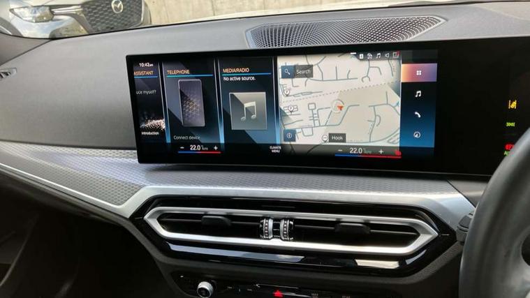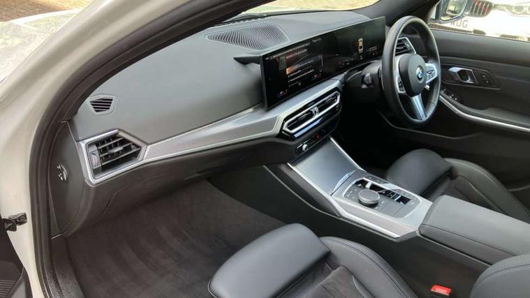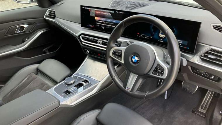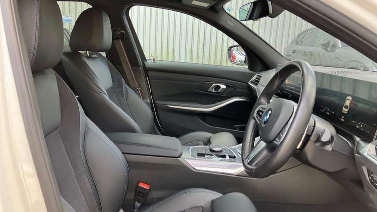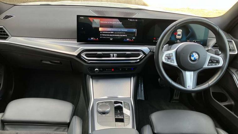 Active guard plus, Attentiveness assist, Automatic Start/stop button, Bluetooth Wi-Fi interface, BMW iDrive, BMW Teleservices, ConnectedDrive Services - last state call, Live cockpit plus with Navigation + 12.3" instrument display + 14.9" display, Intelligent voice assist, 2 USB, 4G LTE connect, Oil sensor for level and grade, Personal e-SIM, Shifting point display, Variable sport steering, Double joint spring strut front axle, Fuel tank breather system, Sport automatic transmission with steering-wheel mounted gearshift paddles and launch control, DAB tuner, 3rd brake light, Auto dimming rear view mirror, Automatic headlight beam throw control with load dependent regulating reaction, dynamic compensation of braking dive and acceleration squat, Bi-LED Low and high beam headlights, BMW emblem, engine compartment lid and tailgate, Body colour roof fin, Door sill strips, Electric windows - front and rear, with open/close fingertip control, anti-trap facility and comfort closing, Fading support, Follow me home headlight function, Front and rear bumper system with replaceable deformation elements, Front apron plastic in body colour, Fuel filler flap - right rear in body colour, Heat protection glazing on front windows and windscreen, Heated washer jets, High gloss chrome kidney frame with high gloss black kidney struts, LED daytime running lights, LED rear lights, LED turn indicator, Licence plate panel integrated into front bumper and tailgate, M high gloss shadow line exterior trim, Matt black B-pillar finsher, Matt black window recess cover, One piece front bumper cover including towing eye cover in body colour, Rain sensor with automatic headlight activation, Rear boot, Rear side wing doors, Reversing lights, Side frame decorative moulding black matt, Trailer stabilisation logic, Visible exhaust tailpipe finisher, Welcome lights in interior and door handle area, 12V power socket in front storage compartment, 2 front cupholder in centre console with clamping elements and matt black inlay, 3 seat bench in 2nd row, 3 spoke M Sport multifunction flat bottom leather steering wheel, 3 zone automatic air conditioning, 40:20:40 split folding rear seat with loading system, Anthracite headlining, Armrest integrated in front and rear door trim + front centre console armrest, BMW ID, Cruise control operation in steering wheel, Driving experience mode switch, Folding rear centre armrest with 2 cupholders, Front and rear headrests, Front and rear velour floor mats, Front footwell lighting, Front reading light, Heated front seats, Height adjustable mechanically and infinitely variable steering column, Illuminated armrest storage compartment, Illuminated glove compartment, Illuminated luggage compartment, Lashing eyelets in luggage compartment, Single front passenger seat, Sunvisors with illuminated vanity mirrors and ticket pocket, Toolkit located in luggage compartment, Connected pack professional - 3 Series Saloon/Touring, Interior and exterior mirror pack - 3 Series Touring/Saloon, M sport exterior styling pack - 3 Series Saloon/Touring, Parking assistant pack - 3 Series, 3x3 point rear seatbelts, BMW emergency call, Child locks on rear doors, Crash sensor activating of airbags, Unlocking doors, hazard warning lights, fuel cut off, interior lighting+activation of safety battery terminal clamp, Drive-off assistant, Driver and front passenger with seat occupancy detection for driver's and passenger side, Driver and passenger side airbags, body protection at side and airbags deploy from seat backrests, Dry braking, Dynamic brake control, Dynamic stability control + (DSC+) - Anti-lock Braking System (ABS) with brake assist and cornering brake control + Automatic Stability Control (ASC), Dynamic Traction Control - DTC, Electromechanical parking brake including automatic hold function and automatic release of the parking brake when pulling away, Electronic differential lock control (EDLC), Front airbag deactivation, Front airbags for driver and front passenger, Head airbags in 1st and 2nd row, head protection at side, curtain airbags open from headliner above 1st and 2nd row, Plastic fuel tank, Side impact protection, Tyre pressure sensors, Ventilated front and rear disc brakes, Warning triangle and first aid kit, Alarm system, Centre lock switch, Closing system with central locking, Electronic vehicle immobiliser, Locking wheel bolts,