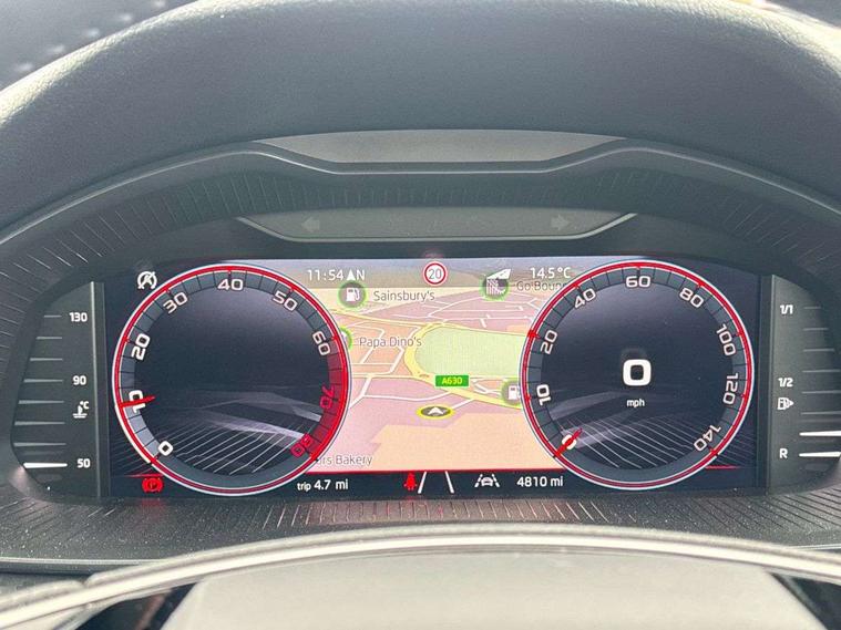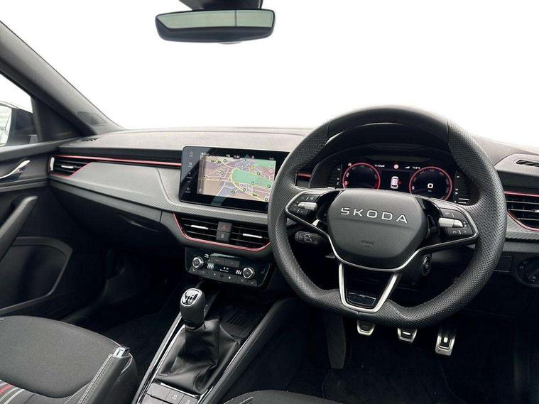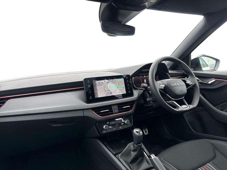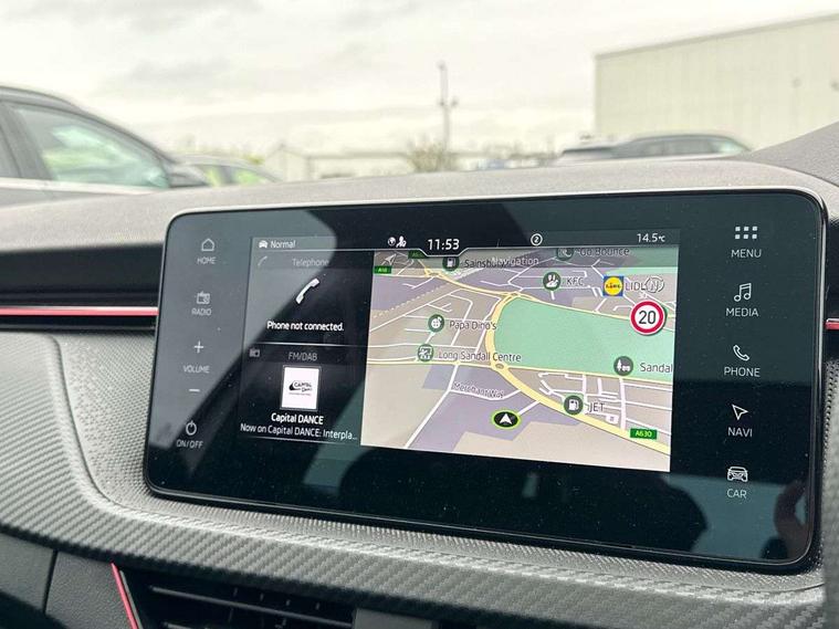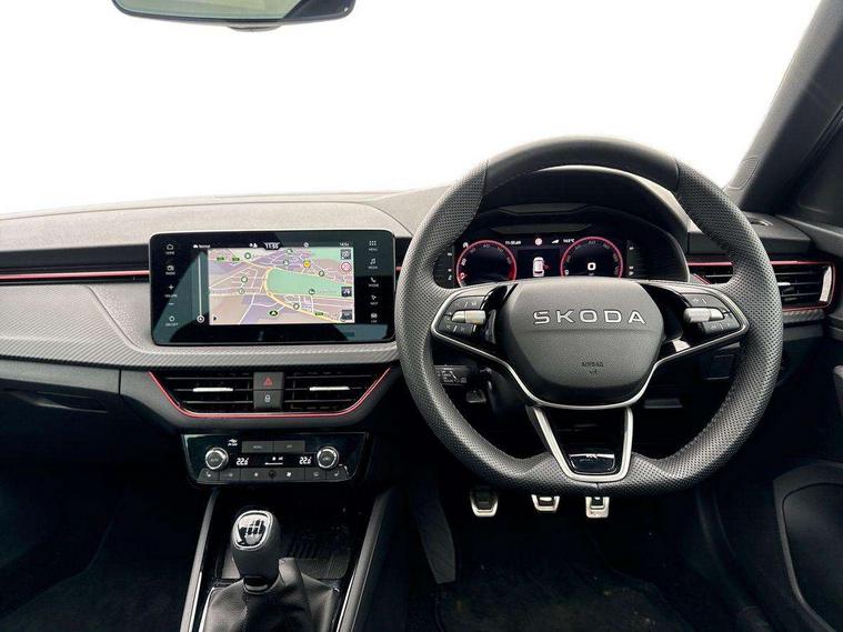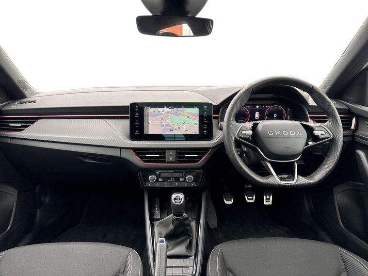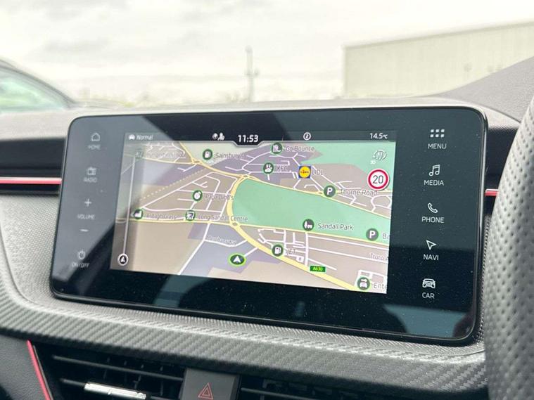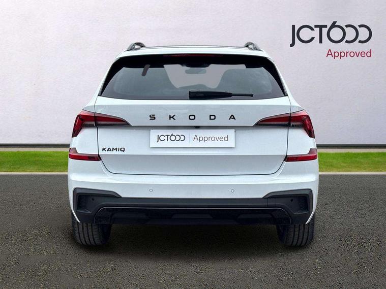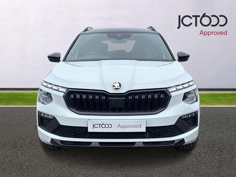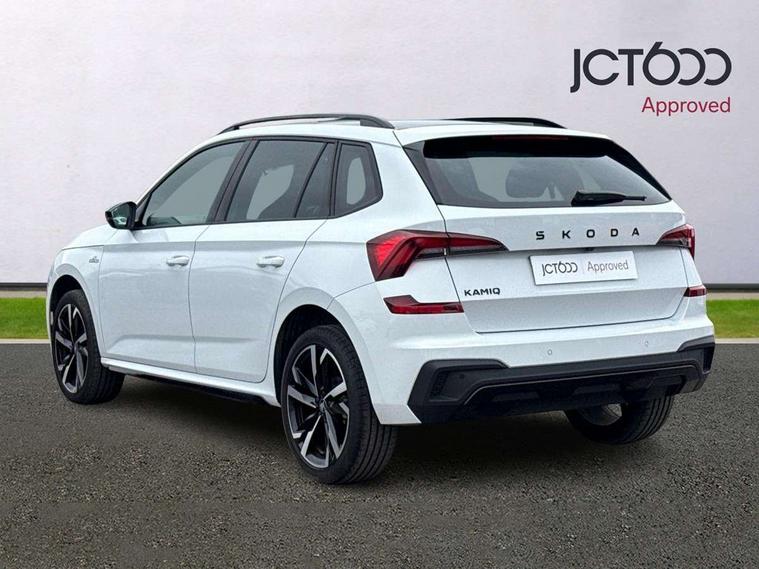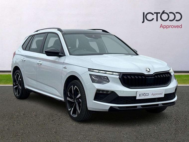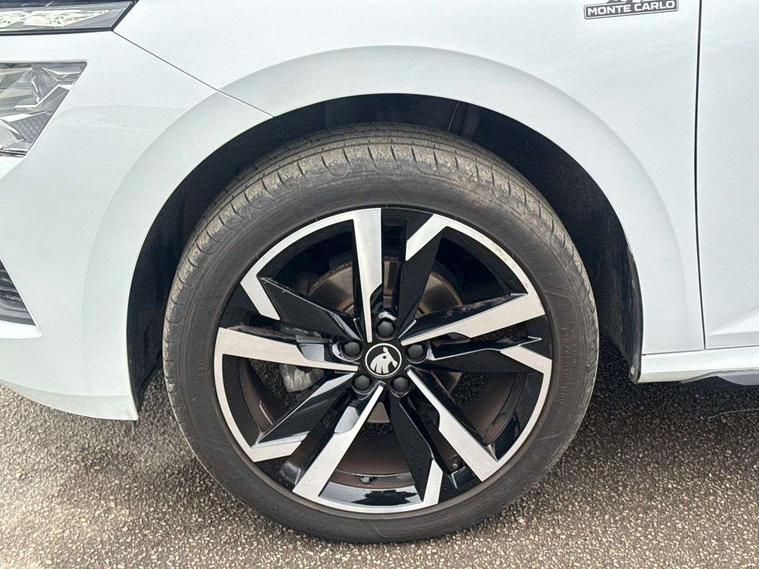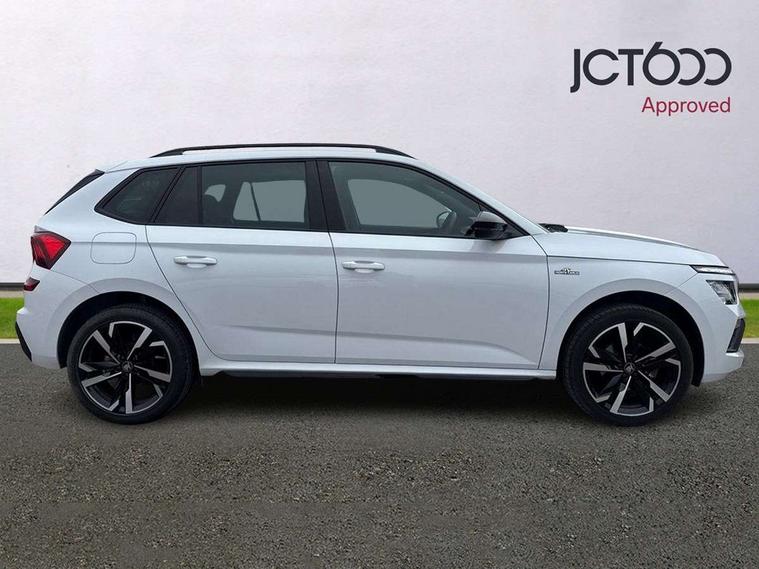 Advanced driver attention and drowsiness monitor, Bluetooth system, E-call, Front assist system, PAS, Rear parking sensors, Rear view camera, Service indicator, Speed limiter, Traffic sign recognition, Virtual cockpit with 10.25" display, Voice control system, Wireless smartlink, 4 USB C ports, 8 Speakers, 9.2" Skoda navigation display, DAB Digital radio, Auto dimming rear view mirror, Automatic headlight control with coming home and leaving home feature, Black door mirrors, Black radiator grille, Black rear diffuser, Black roof spoiler, Body colour bumpers, Body colour door handles, Boot lettering in black, Extended tailgate glass, Fixed panoramic sunroof with black roof rails, Front and rear electric windows, Heated rear window, LED daytime running lights, LED high beam, LED low beam, LED third brake light, Light sensors, Monte carlo plaque, Privacy glass, Rear side wing doors, Rear wiper, Ticket holder inside windscreen, 12V socket in luggage compartment, 3 seat bench in 2nd row, Aluminium pedals, Ambient lighting in white/red, Art leather carbon decor inserts, Art leather carbon door inserts, Black roof lining, Cargo elements, Chrome inner door handles, Driver and passenger sun visors with vanity mirror, Dual zone climate control, Front and rear roof lights, Front centre armrest, Front head restraints, Glove compartment with illumination, Height adjustable driver seat, Height adjustable front passenger seat, Ice scraper, Inner circulation control with pollen filter, ISOFIX on front passenger seat, Isofix preparation for back seats, Leather gearknob and handbrake lever, Manual lumbar support for front seats, Monte Carlo cloth upholstery, Net package and top tether hooks in boot space, Net under rear shelf, Pocket on the back of both front seats include mobile phone pockets, Rake/reach adjustable steering wheel, Reading lights, Rear centre armrests, Red hotstamping, Single front passenger seat, Sports seats, Textile floor mats, Third rear headrest, Top tether for front passenger seat, Umbrella in driver's door, Light and view plus package - Kamiq, 3x3 point rear seatbelts, Airbags - driver and front passenger, Disc brakes, ESP, Extended and predictive pedestrian/cyclist protection, Front passenger airbag deactivation switch, Front side airbags with curtain airbags, Hill hold control, Manual leather parking brake, Manual rear child locks, One tone horn, Seatbelt reminder for driver an co-driver, Traction control, Tyre pressure monitor, Anti-theft alarm system with interior monitoring, backup horn, towing protection and remote central locking with SAFE system, Anti-theft wheel bolts, Electronic engine immobilizer, 18" Ursa black diamond cut alloy wheels,