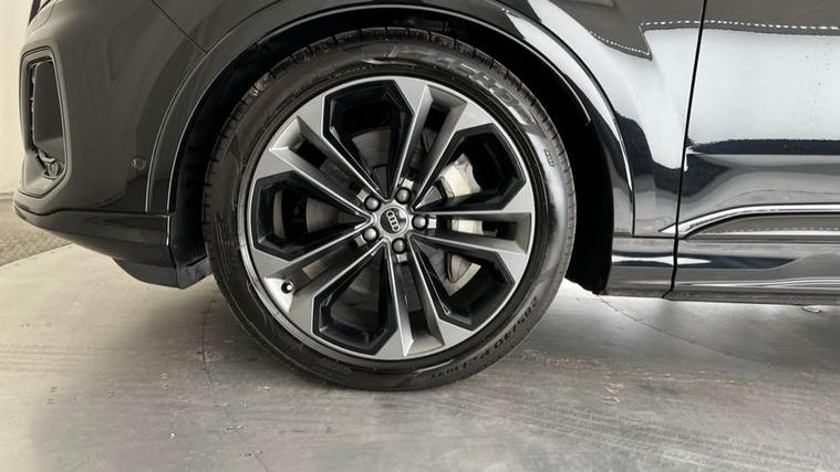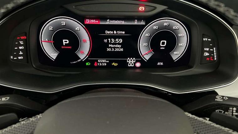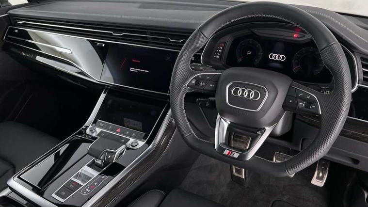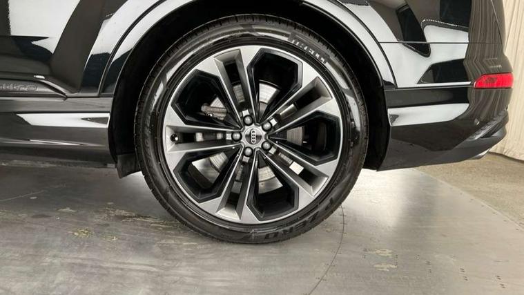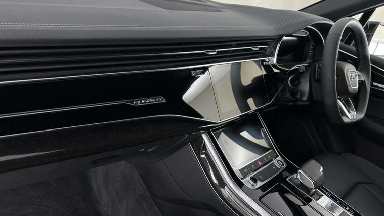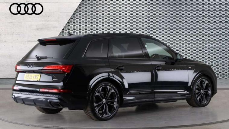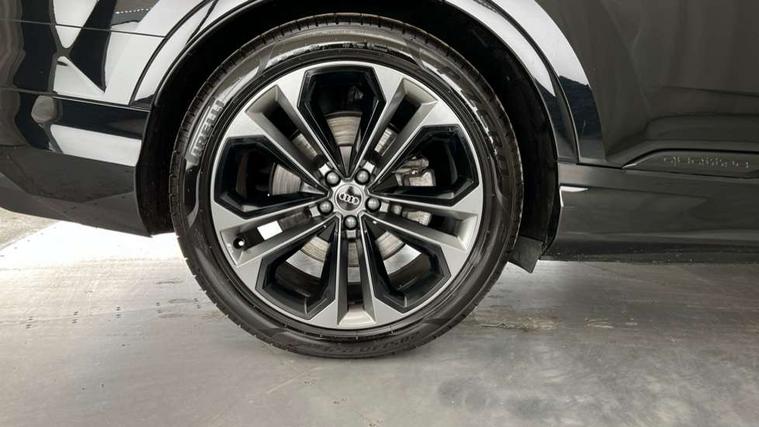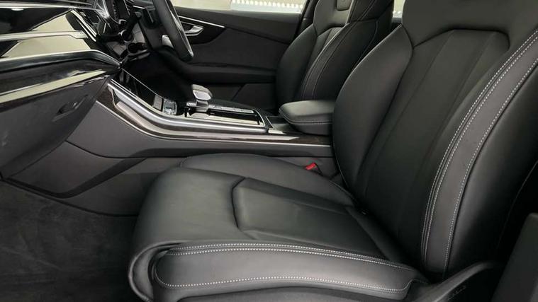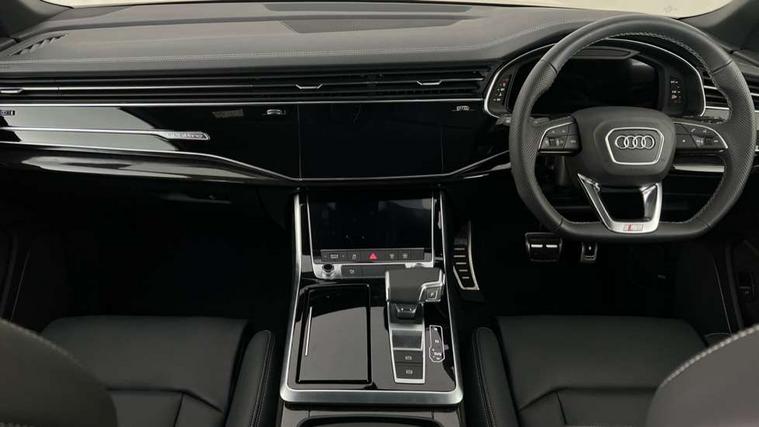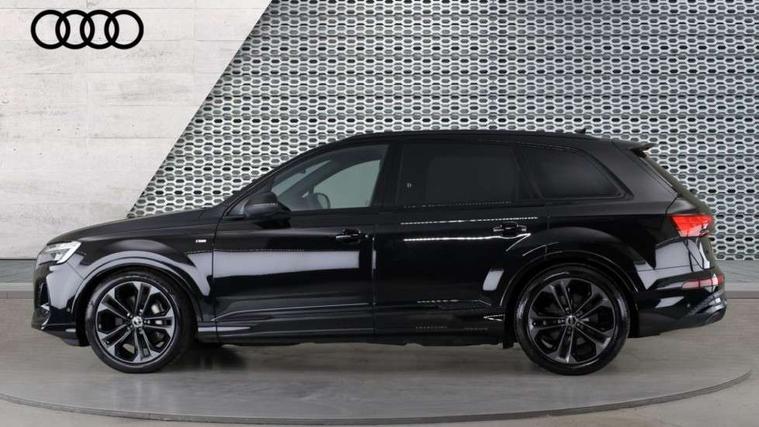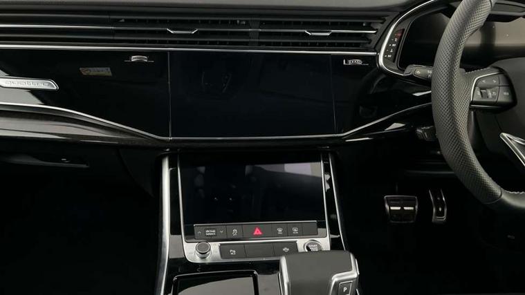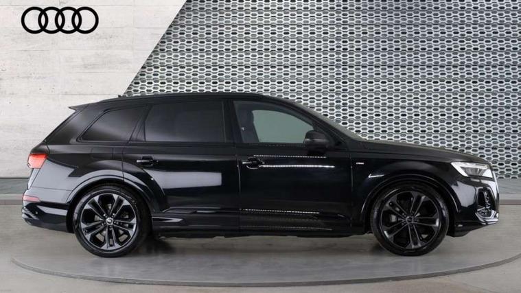 Audi connect safety and service (e-call), Audi connect with Amazon Alexa Integration, Audi drive select (Auto, Comfort, Dynamic, Efficiency, Individual, Off-road and All road), Audi phone box light with wireless charging, Audi virtual cockpit - 12.3" high-resolution LCD display with fully customisable instrument cluster, Bluetooth interface, Camera based traffic sign recognition, Electromechanical power steering, MMI navigation plus with MMI touch screens includes 10.1" and 8.6" screens with haptic feedback, Natural voice recognition, Operating buttons in Matte black, Parking system plus with 360 degree display (front, rear and side sensors) - acoustic and visual park assist system, Power operated tailgate, Rear view camera, Smartphone interface includes wireless Apple carplay/Android Auto, Start/stop system, 48V Mild hybrid technology, Adaptive air sports suspension, Quattro all wheel drive with self locking centre differential, Audi music interface - front 2 USB-C ports with charger and data functions, Audi sound system with 6 channel amplifier, 180 watt amplifying capacity and 10 loudspeakers including subwoofer, DAB digital radio module, Aluminium window trim, Audi Beam uses LEDs to project S emblem with red rhombus onto the ground when opening the side doors (front/rear), Auto dimming frameless rear view mirror, Black exhausts, Black roof rails, Electrically adj heated/folding + automatically dimming exterior mirrors with memory + automatic kerb side function for passenger side exterior mirror, Heat insulating glass in windshield, Integrated LED indications in door mirrors, LED 3rd brake light, LED daytime running lights, LED rear tail lights, Loading edge protection in stainless steel, Matrix LED headlights with dynamic front and rear indicators, Privacy glass - dark tinted rear and rear side windows from B-pillar backwards, Rear side wing doors, Rear wiper, 2 seat bench in 3rd row, 2 zone automatic climate control, 3 seat bench in 2nd row, 7 seat layout with ISOFIX points for the front passenger seat and rear passenger seat, Black carpets, Black cloth headlining, Comfort front centre armrest, Electric adjustable front seat with 4 way lumbar support, driver memory functionality, Folding rear seats, Front head restraints, Front/rear floor mats, Heated front seats, Illuminated door sill trims with S logo, ISOFIX child seat mounting for front passenger seat and 2 outer rear seats with top tether child seat mounting for all 3 rear seats, LED interior ambient lighting, Luggage compartment cover, Luggage compartment sill protection in stainless steel, Rear head restraints, Rear seat bench plus for the second row, with forwards/backwards sliding adjustment and backrest angle adjustment, Single front passenger seat, Stainless steel pedals, Sunvisors with illuminated vanity mirrors, Black styling pack plus - Q7, 3 point seatbelts on all rear seats, Audi pre sense basic, Audi pre sense front, Child locks on rear doors, Convenience key with safelock and gesture tailgate, Driver and front passenger, front side and curtain airbags, Electromechanical parking brake, Electronic Stabilisation Control (ESC) including ABS, ASR and EDL, Extended pedestrian protection measures, Hill hold assist, Seatbelt reminder, Tyre pressure loss indicator, Warning triangle and first aid kit, Anti theft alarm with tow away protection, Anti-theft wheel bolts and wheel loosening detection, Keyless Go, Remote central locking, Black dashboard, Polished oak trim with grey finish inlay, Tool kit, Tyre repair kit,