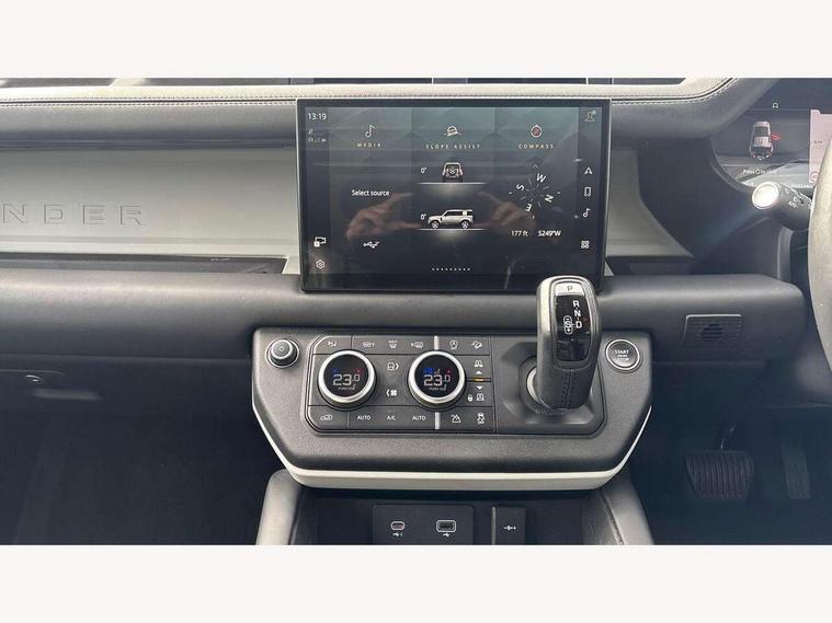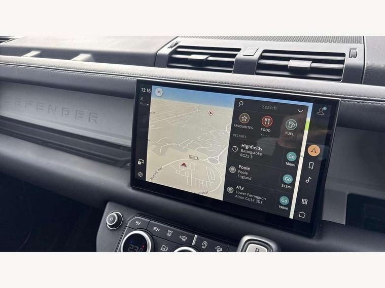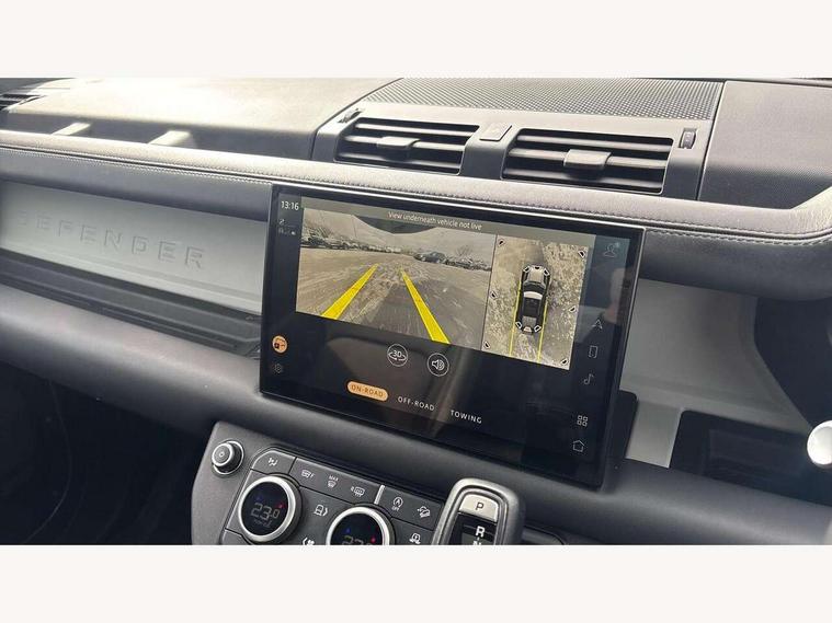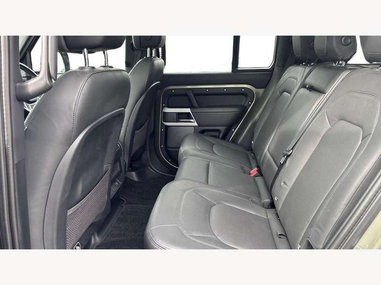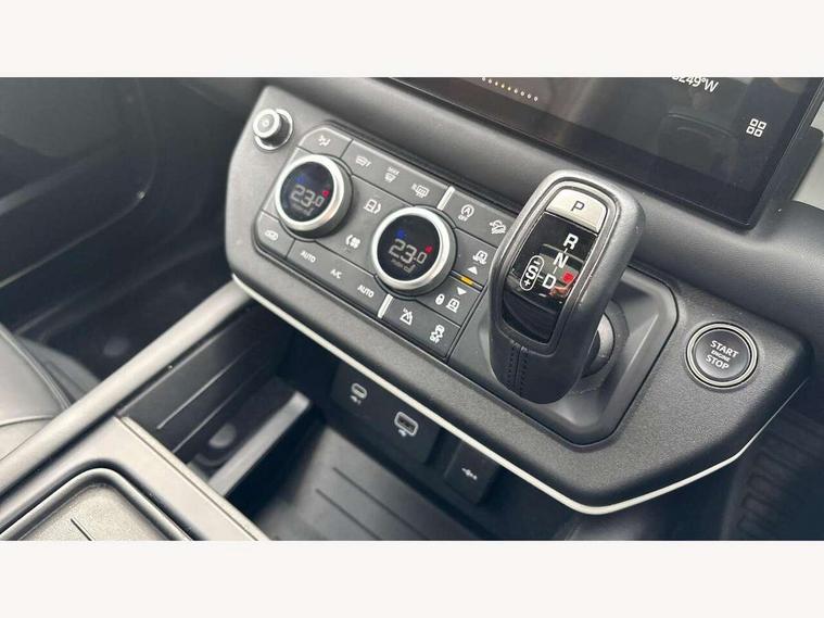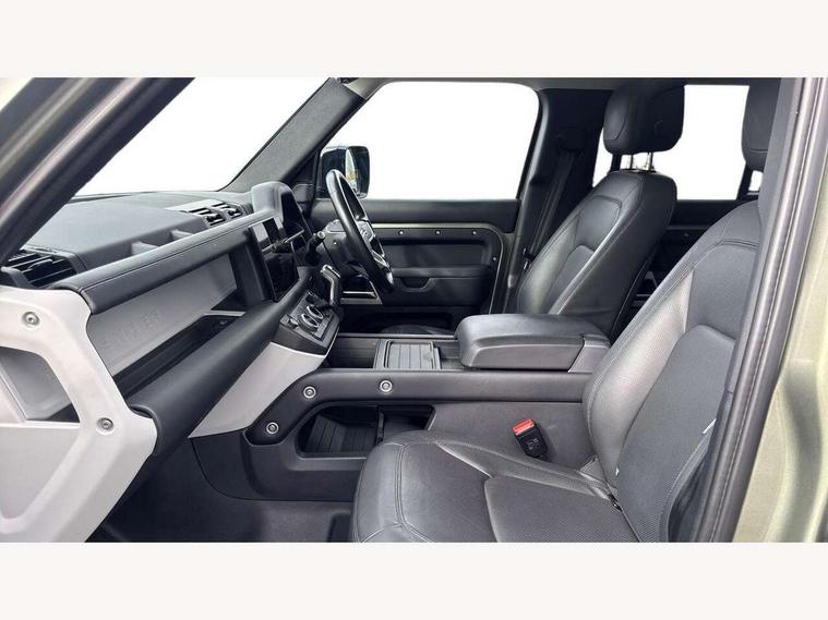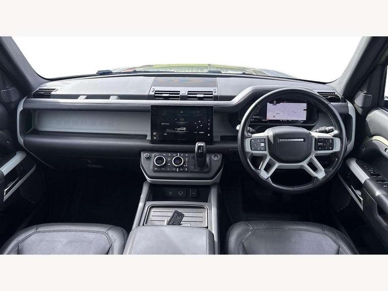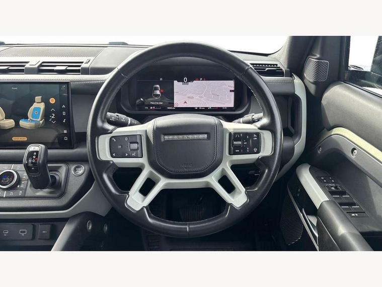 11.4" touchscreen, 360 degree parking aid, 3D Surround Camera with 360 View, 180 Rear View, Front Traffic Detection, Forward Vehicle Guidance, Tow Hitch Assist and clear sight Ground View, Adaptive cruise control, Android Auto, Apple CarPlay, Assisted tailgate with soft close, Blind spot assist, Bluetooth system, Brake pad wear indicator, Clear exit monitor, Connected navigation pro, Driver condition monitor, Electric power assisted steering (EPAS), Interactive driver display, Lane keep assist, Less CE Device Charging, Push button start, Rear collision monitor, Rear traffic monitor, Traffic sign recognition with adaptive speed limiter, Trip computer, Wade Sensing, 8 speed automatic transmission, All wheel drive system, Twin speed transfer box, DAB Radio (Digital Audio Broadcasting), Pivi pro connected, Automatic headlight levelling, Automatic headlights, Centre high mounted stop light, ClearSight interior rear view mirror, Electric heated/power fold door mirrors with approach lights and auto dimming driver side, Electric windows with one touch open/close and anti-trap, Follow me home lighting, Front fog lights, Heated rear window with timer, Heated windscreen, LED tail lights, Puddle lights, Rain sensing windscreen wipers, Rear fog lights, Rear side wing doors, Rear wiper, Side hinged tailgate, Trailer stability assist, 12V power socket in loadspace, 14 way heated and cooled electric adjustable memory front seats with 4 way manual headrests, 3 seat bench in 2nd row, Alpine lights, Durable rubber cabin flooring, Durable rubber loadspace flooring, Electric reach + rake adjustable steering column, Extended leather upgrade, Footwell lights, Front passenger isofix child seat attachment, Heated steering wheel, LESS Wireless charger, Loadspace Hook, Multifunction steering wheel, Overhead stowage for sunglasses, Premium cabin lighting, Rear headrests, Rear ISOFIX, Rear reading lights, Storage glovebox, Sunvisors with illuminated vanity mirrors, Two front passenger seat, Online pack with data plan - Defender, 6 x 3 point seatbelts, ABS, Brake hold function, Cornering brake control (CBC), Customer configurable autolock, DSC - Dynamic Stability Control, EBD - Electronic brakeforce distribution, Electric parking brake (EPB), Emergency brake assist, Emergency braking, ESP + traction control, Front airbags with passenger seat occupant detector, HDC - Hill descent control, Hill launch assist, Low traction launch, Power operated child locks, Remote for (e-Call, Optimised assistance call, InControl app, Climate, beep and flash and door), RSC - Roll stability control, Seat belt reminder, TPMS (Tyre pressure monitoring system), Alarm, Immobiliser, Intrusion sensor, Keyless entry, Locking wheel nuts,