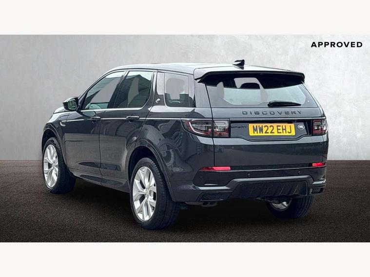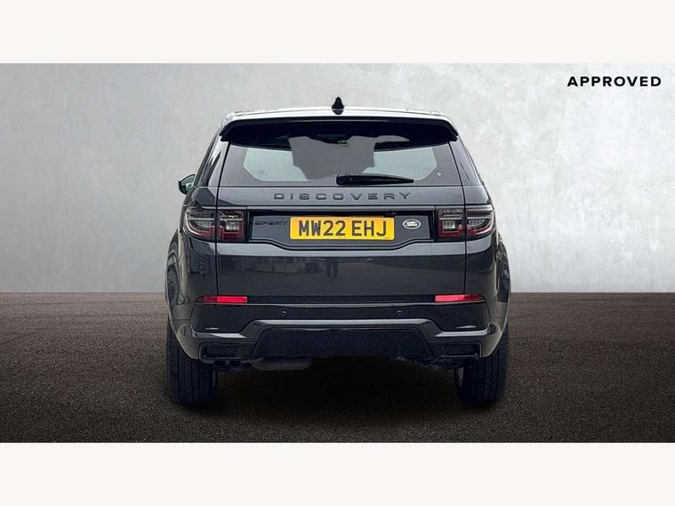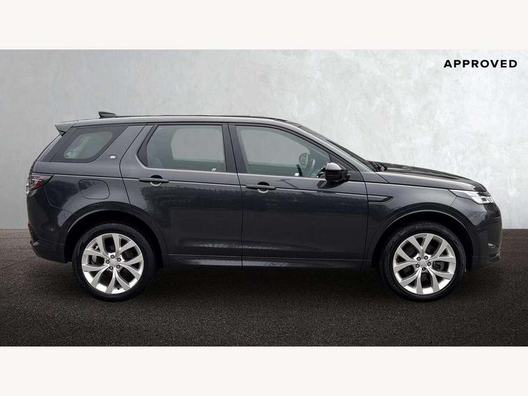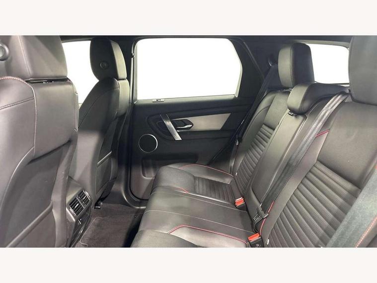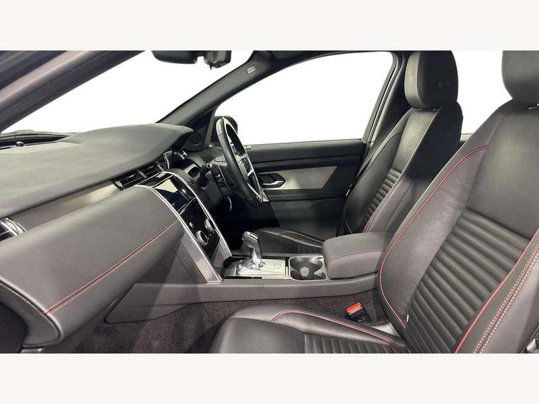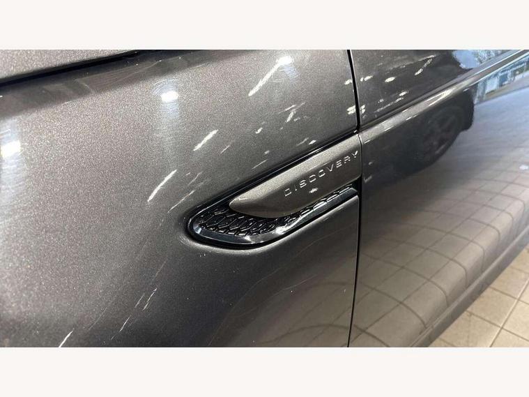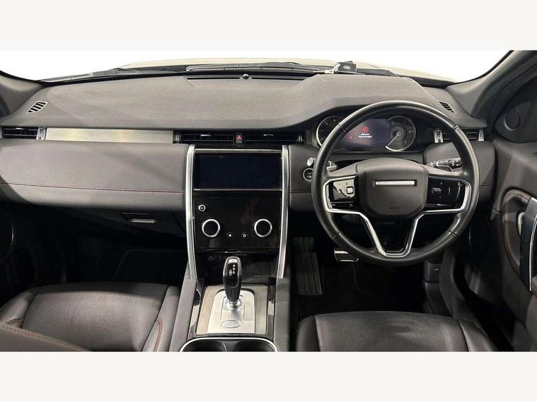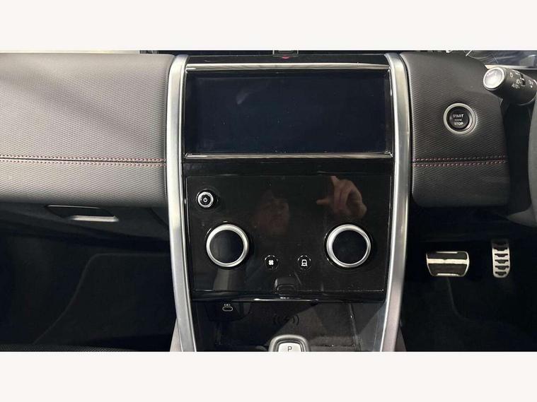 10" touch screen, Adaptive cruise control, Android Auto, Apple CarPlay, Driver condition monitor, eCall emergency call system, Front and rear parking aid, InControl remote premium, Lane keep assist, Locking fuel flap, PAS, Pivi Pro connected navigation system with upgraded Infotainment, Powered tailgate/boot lid, Push button start, Rear collision monitor, Service interval indicator, Traffic sign recognition with adaptive speed limiter, Trip computer, Wade Sensing, All terrain progress control, Coil suspension system, Diesel particulate filter, Dynamic stability control, Terrain Response 2, Bluetooth connectivity including audio streaming, Digital Audio Broadcast radio-DAB, Steering wheel mounted audio controls, 3rd brake light, Automatic headlights, ClearSight interior rear view mirror, Electric front/rear windows, Electric heated/power fold door mirrors with approach lights and auto dimming driver side, Fixed panoramic sunroof with powered sunblind, Front and rear recovery eyes, Heated rear window, Heated windscreen including heated washer jets, No badges, R Dynamic badge, Rain sensing windscreen wipers, Rear fog lights, Rear side wing doors, Rear wing door, Rear wiper, 5 seats, Bright metal pedals, Centre console with armrest, Footwell lights, Front and rear grab handles, Front passenger isofix child seat attachment, Loadspace cover, Loadspace light, Overhead lighting console, Overhead stowage for sunglasses, Rear headrests, Satin chrome gearshift paddles, Sunvisors with illuminated vanity mirrors, Tilt/reach adjustable steering wheel, Black exterior pack - Discovery sport, Online pack with data plan - Discovery, 3 point seatbelts on all seats, ABS, Brake hold function, Child locks on rear doors, Collision mitigation braking system, Cornering brake control (CBC), Driver/Front Passenger airbags, Drivers knee airbag, Electronic brake force distribution, Electronic parking brake, Emergency brake assist, ESP + traction control, Hill descent control, Hill launch assist, Pedestrian airbag system, Rear seat ISOFIX, Roll stability control, Side and curtain airbags for front and 2nd row seats, Trailer stability control, Tyre pressure monitoring system, Battery Back Up System (BBUS) with tilt sensor, Global lock and unlock switch on driver door, Intrusion sensor, Keyless entry, Locking wheel nuts, Centre stack rails in noble chrome,