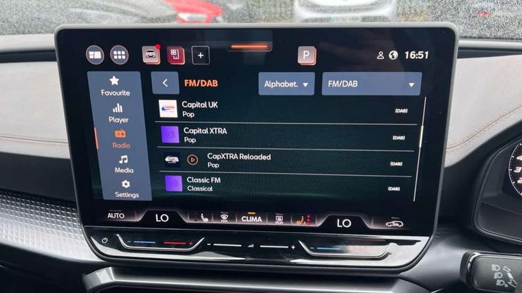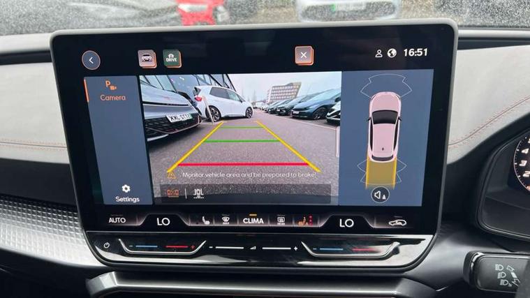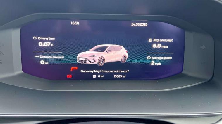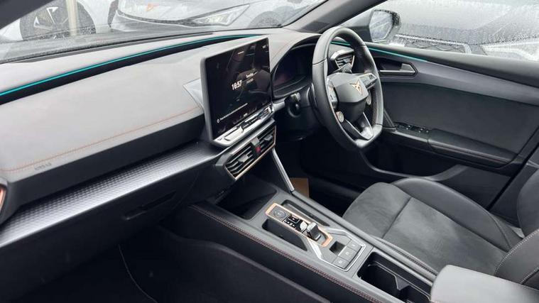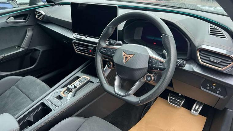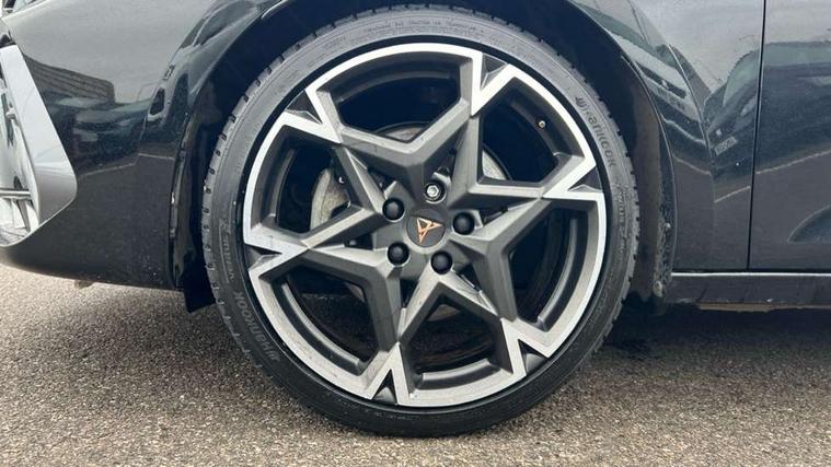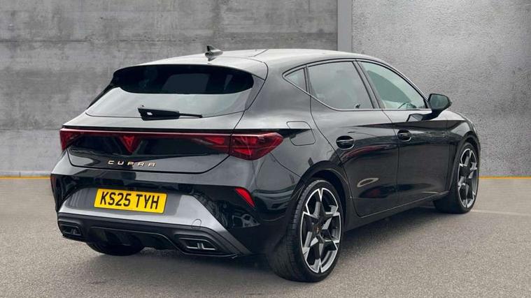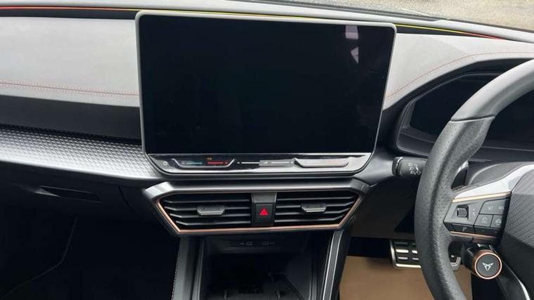 Adaptive cruise control with follow-to-stop and speed limiter, CUPRA drive profile selection with (Comfort/Sport/Individual), throttle response and gearshift mode, Digital cockpit, Dynamic road sign display, E-call, Front and rear parking sensors, Front assist with forward collision warning braking reaction to vehicles, pedestrians and cyclists, Full link smartphone integration with Mirror Link, wireless Apple CarPlay and wired Google Android Auto, Lane assist, Lockable tailgate, Rear view camera, RPM, trip computer, outside temp gauge, instrument light brightness, low fuel warning light, lights on reminder, gearshift indicator, Service interval indicator, Start/stop system with regenerative braking, Wireless phone charger, Auxiliary input socket, Auto dimming rear view mirror, Body colour door handles, Body coloured bumpers, Cupra sports bumpers, Dark tinted rear windows, Electric front/rear windows, Electrically adjustable, heated and folding door mirrors, High beam assist, LED front fog lamps with cornering function, LED headlights with dynamic turn signals, tail lights, rear fog lights with rear coast to coast lighting, LED rear fog lamp, Rain sensing wipers, Rear side wing doors, Rear wash/wipe, Separate daytime running light with automatic headlight control and coming home feature, Third brake light, Welcome light with logo projector in door mirrors, 12v power supply in centre console, 3 seat bench in 2nd row, 5 headrests, 60/40 split rear bench seat with armrest, Ambient lighting (glovebox, footwell, ambient lighting multicoloured), Black headlining, Cupra sports pedals, CUPRA Supersports, heated steering wheel with satellite buttons, Dinamica cloth upholstery, Electrically adjustable driver seat and lumbar support with memory function + manually adjustable passenger seat, Folding boot cover, Four x USB Type C ports (2 in front and 2 in rear), Front and rear reading lights X 4, Front centre armrest, Heated front seats, Height/reach adjust steering wheel, Illuminated interior front door sills, Interior wraparound lighting, ISOFIX points in outer rear seats with top tether anchorage points, Single front passenger seat, Storage pockets on rear of front seats, Sunvisors with illuminated mirror, Three zone climate control, Dynamic and comfort pack - Leon Cupra, Media system plus with 12.9" display + navigation pack - Leon Cupra, 3 point seatbelts on all rear seats, ABS, Brake control system - ESC and brake booster, Child proof door locks, Cupra black brake calipers, Driver and front passenger airbags with front passenger airbag de-activation, front side and curtain airbags, Electronic parking brake, Hill hold control, Rear disc brakes, Seat belt reminder for front and rear seats, Tiredness recognition system, Tyre pressure monitoring system, Anti theft alarm system with interior monitoring in cab, backup horn and towing protection, KESSY Advanced - Keyless start, keyless entry, Locking wheel bolts, Chrome and copper interior detailing, 19" Polar machined sport black and silver alloy wheel with 91Y tyres, Tool kit,