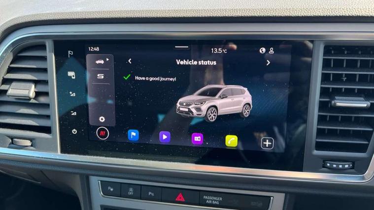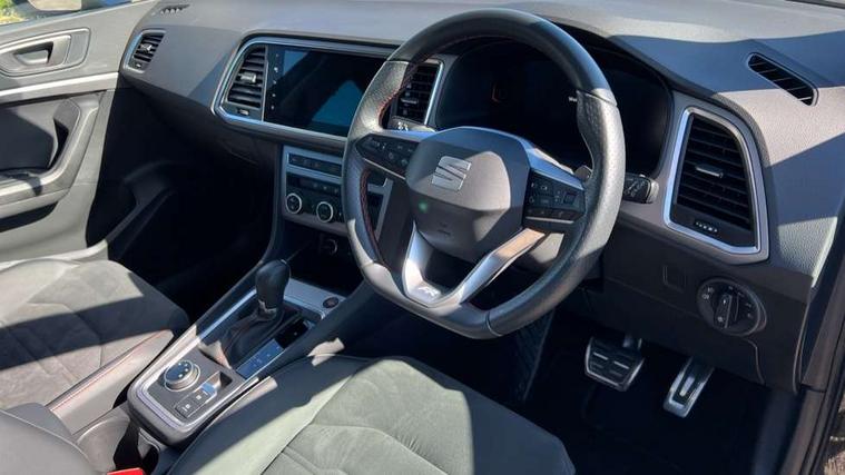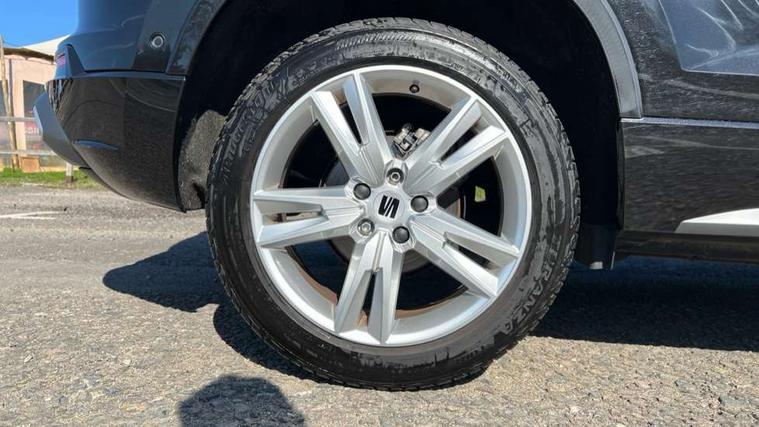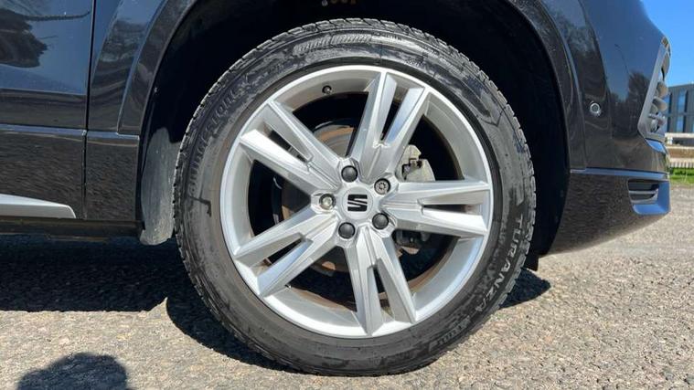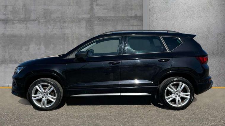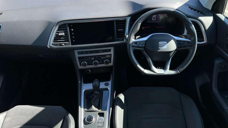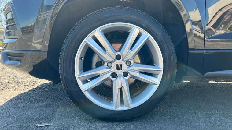 8" Digital cockpit, Colour multi-function on board computer display, Cruise control system with speed limiter, E-call, Outside temperature gauge, Progressive power assisted steering, SEAT drive profile with driving experience button - Normal, Sport, Eco and Individual mode, gearshift, steering and throttle response, Self parking functionality (includes front and rear parking sensors), Start/stop system, Tailgate, Trip computer, wired and wireless full link smartphone integration, Wireless phone charger, Steering wheel mounted audio/phone controls, Black roof rails, Black side window trim, Body colour bumpers, Body coloured wheel arch surrounds, Chrome front grille frame, Dark tinted rear windows, Daytime running lights, Door mirrors with welcome light silhouette, Dynamic headlight range control with self adjusting whilst driving, Electric adjustable/heated/folding door mirrors, Front and rear electric windows, Full LED headlamps with lens and LED front fog lamps with cornering function, Illuminated aluminium front door sill, LED 3rd brake light, LED rear tail lights with dynamic indicators, Rear exhaust tailpipe, Rear fog lights, Rear side wing doors, Rear wash/wipe, Roof spoiler, Variable front intermittent wipers, 12V socket in front, 3 seat bench in 2nd row, 60/40 split folding rear seat, Aluminium pedals, Dinamica upholstery with front comfort seats, Drawer under right front seat, Dual zone climate control, Front and rear head restraints, Front centre armrest, Front seat back storage pockets, Height adjustable driver and passenger seat with lumbar adjustment, ISOFIX points in outer rear seats with top tether anchorage points, Leather sports steering wheel and gear knob, Rear armrest and easy back seat release mechanism from boot, Single front passenger seat, Steering wheel mounted gearshift paddles, Convenience pack - Ateca, Interior lighting pack - Ateca, Navigation system pack with DAB - Ateca, Safety and driving pack with attention and drowsiness assist - Ateca, 3x3 point rear seatbelts, ABS, Traction control system (TCS), Electronic stability control (ESC) and Electronic differential lock system (XDS), Airbags - Driver and front passenger airbag with deactivation, front side, two curtain and driver's knee airbags, Electric parking brake with auto hold function, Front and rear seatbelt reminder, Front assist with autonomous emergency braking, Hill hold control, Manual rear child locks, Single tone horn, Tiredness recognition system, Tyre pressure monitoring system, Alarm, Keyless entry, Locking wheel bolts, Remote central locking, Chrome interior detailing, 18" Brillaint silver alloy wheels,
