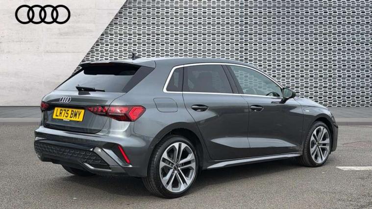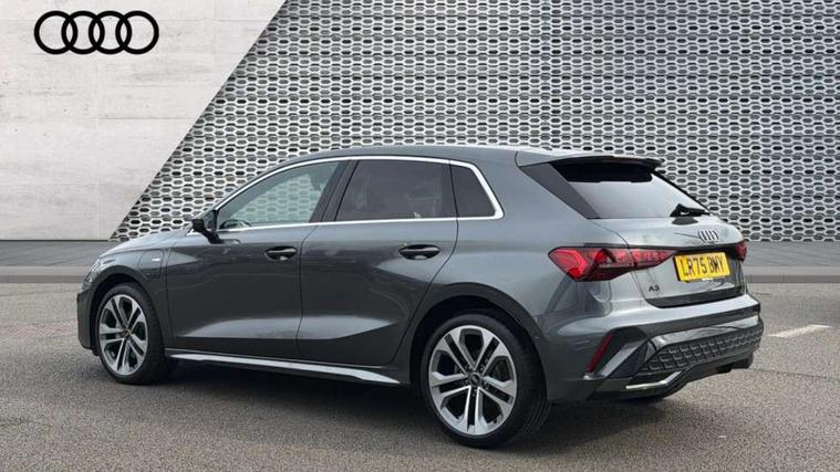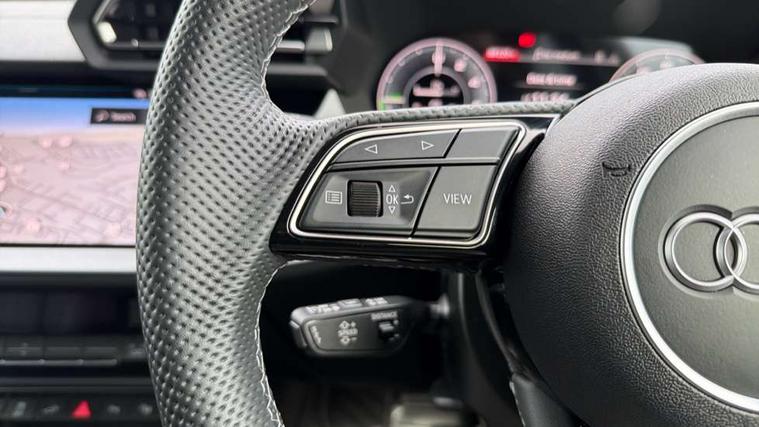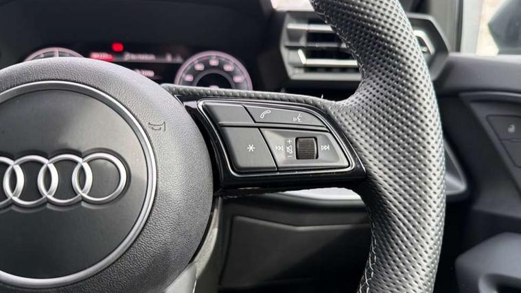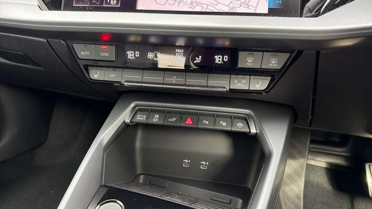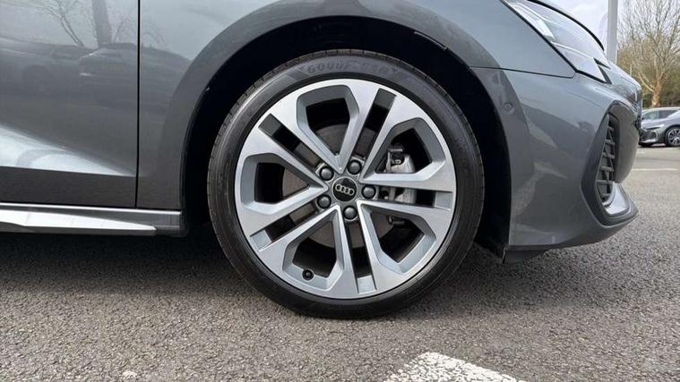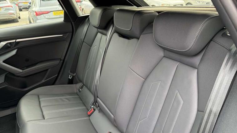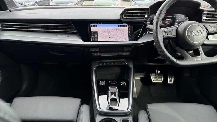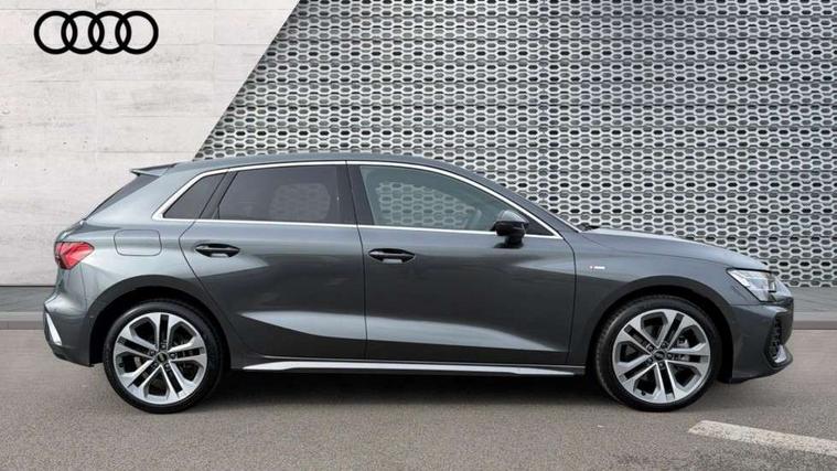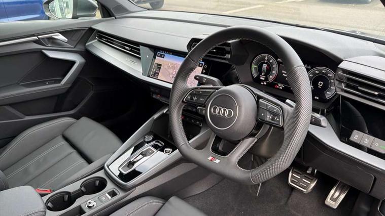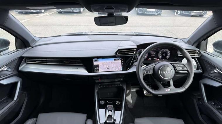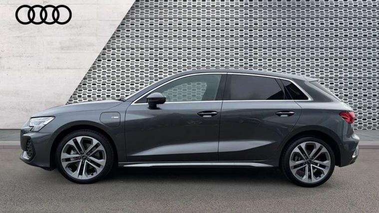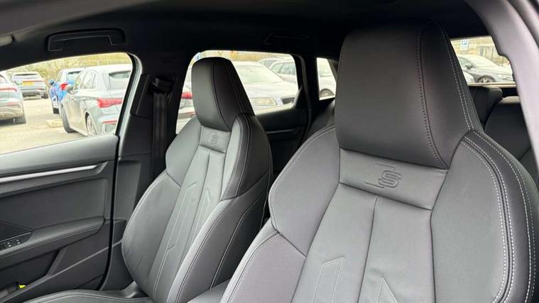 Adjustable speed limiter, Audi drive select, Audi smartphone interface with app store includes wireless Apple carplay, Android auto and Amazon alexa integration, Audi virtual cockpit plus - 12.3" full HD resolution dynamic digital instrument cluster, Automatic start/stop system with recuperation, Bluetooth interface, Camera based traffic sign recognition, Collision avoidance assistant, Cruise control, Distraction and Fatigue warning, e-Call (emergency call), Electromechanical power speed sensitive steering, Emergency assist, Lane departure warning system, MMI Navigation Plus with high resolution 10.1" colour touch screen display, Park Assist with parking system Plus, Service indicator, Trip computer, Voice control system with natural language interaction, 3 pin 10 amp domestic charging cable, CCS socket for DC charging, Charging cable for public charging, mode 3 (type 2), 32 A, Compact charging system, Industrial connector CEE 32 A, 230 V, length 1.6 m, Standard suspension, Type 2 socket for AC charging, Audi Phonebox light with wireless charging, Audi sound system - 10 loudspeakers including centre loudspeaker and subwoofer, DAB Digital radio, USB ports with charging function in the rear, Acoustic glass windscreen, All weather light, Aluminium window trim, Auto dimming frameless rear view mirror, Automatic dynamic range control, Body colour exterior mirrors, Chrome exhaust tailpipes, Dipped beam, main beam, position light and turning light, Electrically adjustable/heated/folding/auto dimming door mirrors with integrated LED indications + kerb view function for passenger side, Exterior model badging, Front and rear side air inlets in grained matt black with dark liquid chrome frame, Front electric windows, Front radiator grill in high gloss dark chrome, Heat insulating glass windscreen, Illuminated door sills with aluminium inserts at the front with S logo, Intersection light, LED 3rd brake light, LED brake lights, LED daytime running x3, LED headlights with LED rear lights and dynamic rear indicators, LED rear number plate lights, LED reverse light, LED tail lights, Light and rain sensors, Manoeuvring light, Motorway light, Privacy glass - dark tinted rear window, rear door and side windows, Rear diffuser and grill in grained matt black with inlay in dark liquid chrome, Rear electric windows, Rear side wing doors, Rear wiper, S line bumpers, S roof spoiler, Side S line emblems on front wings, Side sill trim in dark liquid chrome, Static cornering light, 12V socket and storage compartment in front centre console, 3 seat bench in 2nd row, 3 spoke flat bottomed leather multifunction sport steering wheel with gear shift paddles, 3-zone deluxe automatic air conditioning, 4 way electrically adjustable lumbar support for driver and front passenger, 40/20/40 split folding rear seat bench, Black cloth headlining, Black front and rear floor mats, Convenience auxiliary air conditioning, Front and rear centre armrest in artificial leather with contrasting stitching on armrests and instrument panel, Front and rear headrests, Heated front seats, Height and reach adjustable steering wheel, Manual boot compartment lid, Manually adjustable front seats, Rear centre armrest with cupholder, S badging on the steering wheel, Seat side bolsters, Single front passenger seat, Stainless steel pedals and front footrest in black, Twin leather upholstery with front sports seats S embossed logo, Aluminium interior elements pack - A3, Multi-coloured LED interior lighting package with Multi-coloured contour lighting of instrument panel - A3, 3x3 point rear seat belts, Acoustic vehicle alerting system, Driver and front passenger airbag with passenger airbag deactivation, Electronic Stabilisation Control (ESC) including ABS, ASR and EDL, First aid kit with warning triangle and 2 safety vests, Front side airbags with head airbags and interaction airbag, Hill hold assist, Pre-sense front with pedestrian and cyclist detection, Seatbelt monitoring, Tyre pressure loss indicator, Anti theft alarm, Anti-theft wheel bolts, Electronically operated child locks, Immobiliser, Remote central locking with safelock, Black dashboard, Inlay in dark aluminium spectrum, Tyre repair kit,