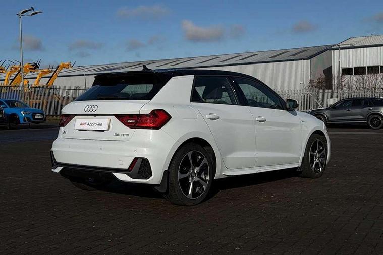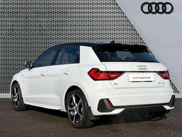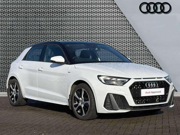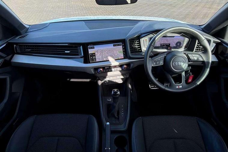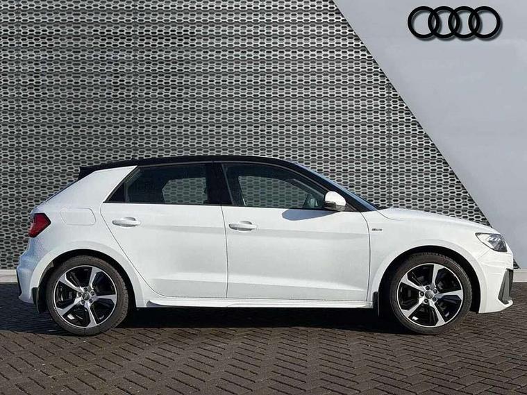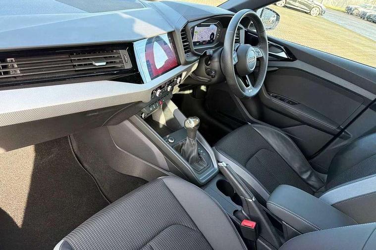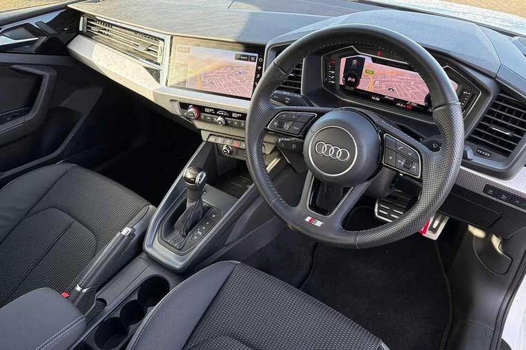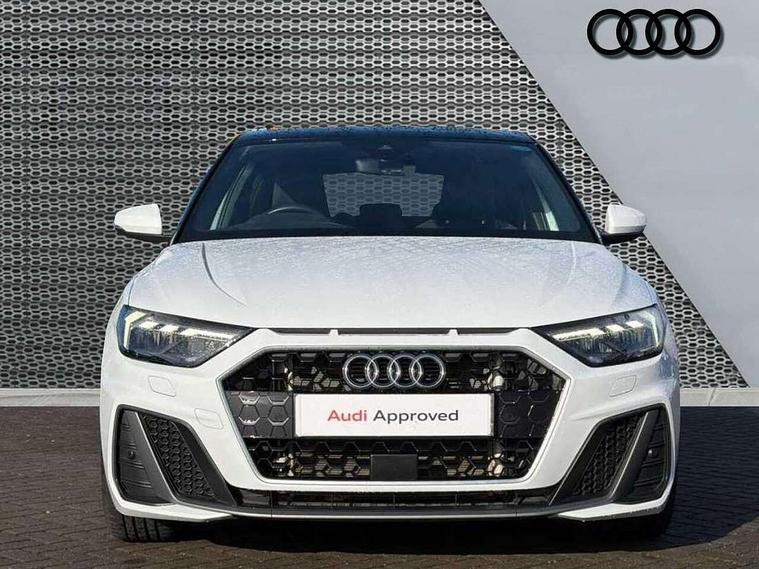 10.25" Digital instrument cluster display screen, Audi connect safety emergency and service including E-call, Audi drive select, Audi smartphone interface, Automatic start/stop system, Bluetooth interface, Driver's information system, Electromechanical power steering, Lane departure warning system, Service interval indicator, Speed limiter, Voice control system, Washer fluid level indicator, Sports suspension, 1 x SDXC card reader, 1 x USB type C and 1 USB type A charging points, Audi music interface, Bluetooth audio streaming, DAB Digital radio, MMI radio plus with 8.8" colour MMI display screen and MMI touch, Auto dimming rear view mirror, Body colour side sill mouldings, Body coloured bumpers, Body coloured door mirrors, Door sills with aluminium inlays and S Line logo, Electric front and rear windows, Front side air inlets in grained matt black and C frame in titanium black, Heat insulating glass windscreen and side windows, Heated rear windscreen, LED headlights with LED rear lights + dynamic rear indicators, Matt aluminium silver tailpipe trim, Matt black radiator grille frame, Matt platinum grey in front spoiler clip and rear diffuser clip, Rain and light sensors, Rear fog lights, Rear wiper, S line badges on front wings, S line exterior bumpers, S line roof spoiler, Side air inlet frames titanium black, Side front spoiler lips in grained matt black, 12V socket in centre console with two cup holders, 3 rear seats, Black cloth headlining, Driver and passenger seat with manual height adjust with forward and backwards adjustment, Front and rear black floor mats with contrast stitching in fine silver, Front head restraints, Height and reach adjustable steering wheel, ISOFIX child seat mounting in front passenger and rear outer seats, Leather gear knob with aluminium trim, Leatherette handbrake grip, Luggage compartment light with front and rear reading lights, Lumbar adjustment for front seats, Rear head restraints, Split folding rear seats, Stainless steel pedals, 3x3 point rear seatbelts, Audi pre-sense front with pedestrain and cyclist recognition, Brake assist function, Driver and front passenger airbag with front side and head airbags, Electronic Stability Control including ABS, EBD, ASR and EDL, Front and rear seatbelt reminder, Front passenger airbag deactivation switch, Hill hold assist, Seatbelt height adjustment for front seats, Seatbelt monitoring, Tyre pressure warning light, Warning triangle and first aid kit, Anti theft alarm, Anti theft wheel bolts and loose wheel warning, Immobiliser, Remote central locking with 2 remote folding keys, Aluminium trim for control switches, air vents and digital instrument cluster, Silver grey inlays polygon structure in diamond paint finish, Structured grey accent areas including air vents, door handle recesses and centre console in quartz paint finish,