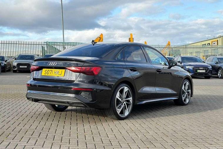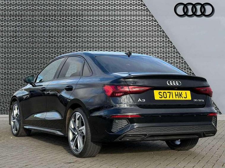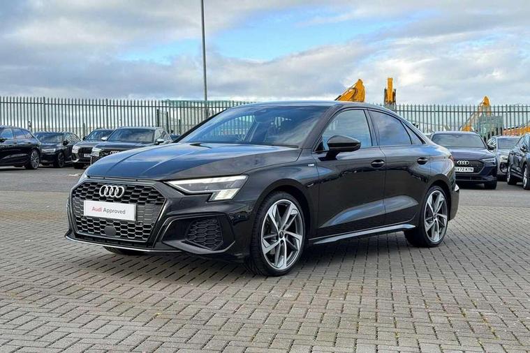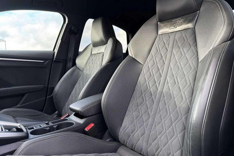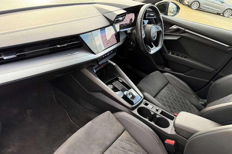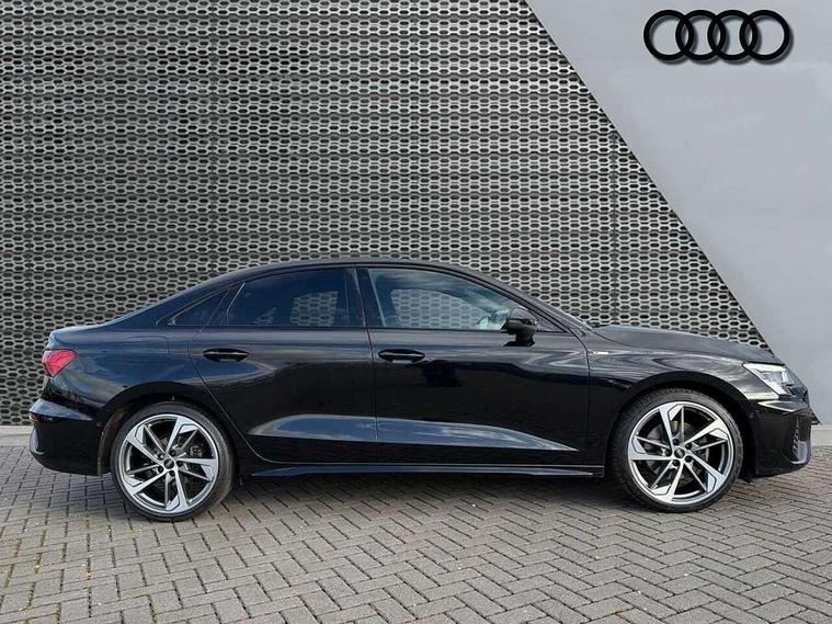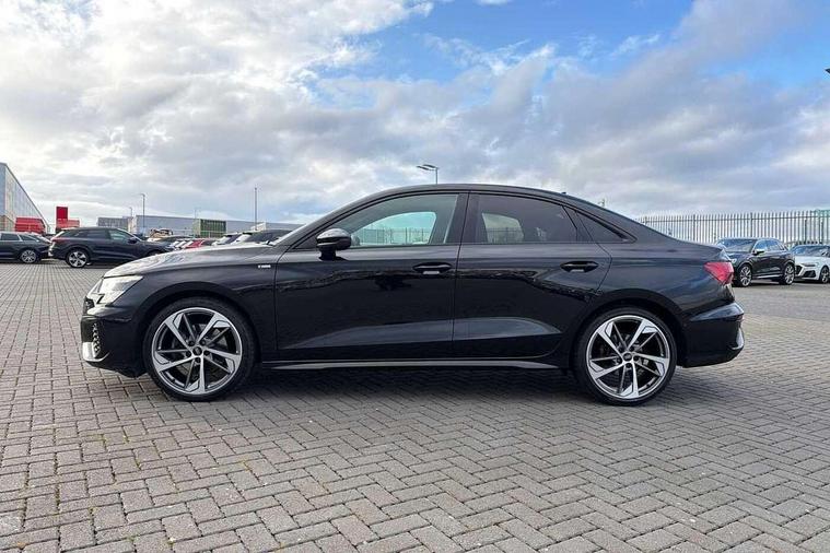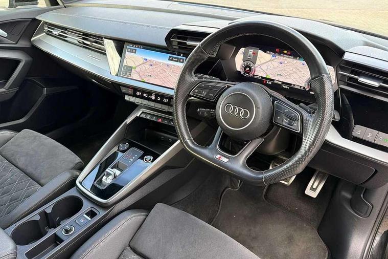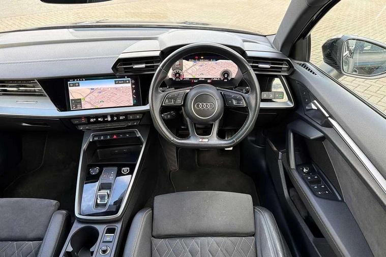 Audi connect emergency call and service, Audi drive select (Auto, Comfort, Dynamic, Efficiency and Individual), Audi smartphone interface, Audi virtual cockpit plus - 12.3" dynamic digital instrument cluster, Automatic start/stop system with recuperation, Bluetooth interface, Collision avoidance assistant, Electromechanical power speed sensitive steering, Lane departure warning system, MMI Navigation Plus with high resolution 10.1" colour touch screen display, Service indicator, Voice control system with natural language interaction, Sports suspension, 2x USB Type C ports (for charging and data transfer), 6 passive loudspeakers, CD player, DAB Digital radio, 3rd brake light, Acoustic glass windscreen, Audi matrix LED headlights, LED rear lights, dynamic front and rear indicators and headlight cleaning system, Auto dimming frameless rear view mirror, Electrically adj heated/folding + automatically dimming exterior mirrors + automatic kerb side function for passenger side exterior mirror, Front electric windows, Illuminated door sills with aluminium inserts at the front with S logo, Integrated LED indicators in door mirrors, LED daytime running lights, Light and rain sensors, Model and engine designation badges at rear, Privacy glass - dark tinted rear window, rear door and side windows, Rear electric windows, S roof spoiler, 12V socket and storage compartment in front centre console, 4 way electrically adjustable lumbar support for driver and front passenger, 40/20/40 split folding rear seat bench with cupholder, Black cloth headlining, Dual zone electronic climate control, Electrically adjustable front seats, Front and rear centre armrest in leather, Front and rear headrests, Front/rear floor mats, Heated front seats, Height and reach adjustable steering wheel, Interior lighting - glove compartment light and right hand side, Luggage compartment floor covering, Seat side bolsters, Stainless steel pedals and front footrest in black, Aluminium interior elements pack - A3, Black styling pack - A3/S3, Dinamica microfibre/mono.pur 550 artificial leather pack - A3 Saloon, Extended ambient lighting pack - A3/S3 Saloon, LED interior lighting pack - A3 Saloon Edition 1/Vorsprung, 3x3 point rear seat belts, Driver and front passenger airbag with passenger airbag deactivation, Electronic Stabilisation Control (ESC) including ABS, ASR and EDL, First aid kit with warning triangle and 2 safety vests, Front side airbags with head airbags and interaction airbag, Hill hold assist, Pre-sense front with pedestrian and cyclist detection, Seatbelt monitoring, Tyre pressure loss indicator, Anti theft alarm, Anti-theft wheel bolts, Electronically operated child lock, Immobiliser, Remote control central locking, Aluminium air vent surrounds, Aluminium trim elements, Dark spectrum aluminium inlays, accent surfaces in the dashboard and centre console in platinum grey silk effect paint finish, 19" 5 arm trapezoid design alloy wheels in titanium matt grey with diamond cut finish,
