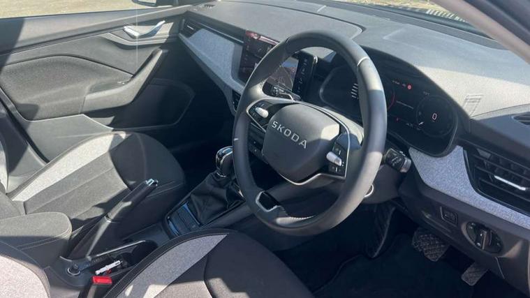 Advanced driver attention and drowsiness monitor, Bluetooth, e-Call (emergency call), Front assist system, PAS, Rear parking sensors, Rear view camera, Speed limiter, Tailgate, Traffic sign recognition, Virtual Cockpit - 10.25" digital display, Voice control system, Wireless smartlink, 4 USB C ports, 8 Speakers, 9.2" Skoda navigation display, DAB radio, Auto dimming rear view mirror, Automatic headlamp activation with Coming home and Leaving home feature, Automatic high/low beam, Body colour bumpers, Body colour door mirrors and handles, Chrome moulding around grille, Front and rear electric windows, Full LED headlights, Heated rear window, LED 3rd brake light, LED brake lights, LED daytime running lights, LED front turning lights, LED high beam, LED low beam, LED taillights, Rear LED fog light, Rear side wing doors, Rear wiper, Tinted windows, Unique dark chrome design logo on alloy wheels, 12V socket in luggage compartment, 3 seat bench in 2nd row, Black / Grey armrest stitching, Black hotstamping, Cargo elements, Chrome inner door handles, Door inserts in satin black, Driver and passenger sun visors with vanity mirror, Dual zone climate control, Front and rear roof lights, Front centre armrest, Front head restraints, Glasses storage in roof liner, Height adjustable driver seat, Height adjustable passenger seat, Ice scraper, Illuminated glove compartment, Inner circulation control with pollen filter, ISOFIX for front passenger seat, Isofix preparation for back seats, Leather gearknob and handbrake lever, Loft cloth upholstery, Luggage net under rear parcel shelf, Manual lumbar support for front seats, Net package and top tether hooks in boot space, Pearl grey ceiling, Pocket on the back of both front seats, incl. mobile phone pockets, Single front passenger seat, Skoda lettering on steering wheel, Textile floor mats, Third rear headrest, Ticket holder, Top tether for front passenger seat, Umbrella in driver's door, 3x3 point rear seatbelts, ABS, Child locks, Curtain airbags and front side airbags, Disc brakes, Driver and front passenger airbags, ESP, Hill hold control, Manual leather parking brake, One tone horn, Passenger airbag switch off function, Seatbelt reminder for driver and front passenger, Tyre pressure monitoring system, Anti theft alarm system with interior monitoring, backup horn and towing protection, Anti-theft wheel bolts, Remote central locking with 2 remote folding keys, SAFE function for remote central locking, Decord pad, door inserts Kota uni,