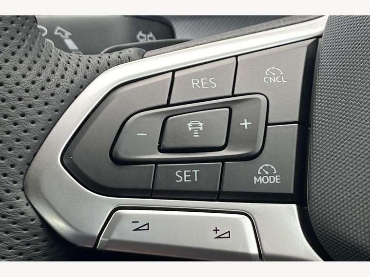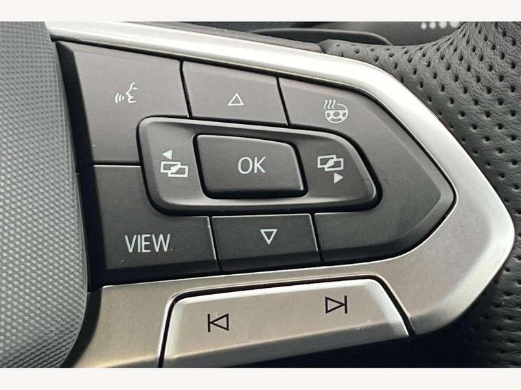 Activated carbon canister, Adaptive cruise control (ACC), Advanced driver attention and drowsiness monitor, Dynamic road sign display, Dynamic steering, E-Sim card for online connectivity, eCall emergency call system, Multi-color Digital cockpit pro, selection of different info profile possible, Multifunction front facing camera for distance control, Navigation system, Oncoming vehicle braking when turning including swerve support, Speed limiter, Speedo, rev counter, electronic odometer, trip, service interval display, exterior temperature and fuel gauge, Traffic jam assist, Voice enhancer and voice control, Warning signal and warning light for front and rear seatbelts not fastened, We connect plus preparation, We connect preparation, Wireless app connect, Hybrid propulsion system, Petrol Particulate Filter, Start-stop system with battery regeneration (recuperation - energy recovery during braking), XDS electronic differential lock for improved traction and handling, 2 USB C ports in front, 2 USB charging sockets on the centre console in the rear charging capacity upto 45W, Digital radio reception (DAB), Diversity antenna for FM reception, Gaming platform via car app, Infotainment system with 12.9" display, Mobile phone interface with inductive charging feature, 3rd brake light, Automatic headlamp activation with Coming home and Leaving home feature, Body colored bumpers in R-Line style, Body colour door handles, Exterior mirrors convex on the left and aspherical on the right, Front and rear electric windows, Heat insulating windshield made of laminated glass, LED separate daytime running light, Rear exhaust tailpipe, Rear fog light on one side and reversing lights on both sides, Rear side wing doors, Rear windscreen washer and wiper with interval delay, Remote electrically foldable door mirrors, puddle lights and reverse activated passenger's door mirror, Welcome light with surround lighting, 12V socket in front centre console, 12V socket in luggage compartment, 3 rear head restraints, 3 seat bench in 2nd row, Ambient lighting with 30 colour including LED light unit in front footwell with selectable light colour, Black roof lining, Brushed stainless steel pedals, Chrome plated radiator grille inserts, air vent surrounds and light switch surrounds, Door insert, side trim panel and arm support in leatherette, Front + rear black carpet mats, Front centre armrest, Front seat lumbar support adjuster, Integrated front head restraints, ISOFIX anchors for child seats on outer rear bench seats and on front passanger seat compatible for i-Size, Luggage compartment lighting, Manual height adjustable front passenger seat, Manually height adjustable driver seat, Plastic gear knob, Premium sports seats in front, Rear cupholder and loadthough, Sardegna cloth upholstery with front and outer rear seats Art Velour inner sides of bolsters, Single front passenger seat, Split folding backrest with centre armrest and unsplit rear seat bench, Sun visors with illuminated vanity mirrors, Titanium black instrument panel, 3 point height adj front seatbelts + pretensioners, 3 rear three point seatbelts, ABS, Autonomous emergency braking front assist with pedestrian and cyclist monitoring, Child locks on rear doors, Driver and front passenger airbag with front passenger airbag deactivation, Electronic parking brake with auto hold, ESC (Electronic Stability Control), Extended pedestrian protection measures, Hill start assist, Rear disc brakes, Two tone horn, Tyre pressure loss indicator, Volkswagen roadside assistance, Anti theft wheel bolts, Preparation for alcohol interlock, Decorative inserts carbon grey for dashboard and front door trim panels, Tool kit for tyre mobility set, Tyre mobility kit Includes 12V compressor and tyre sealant,