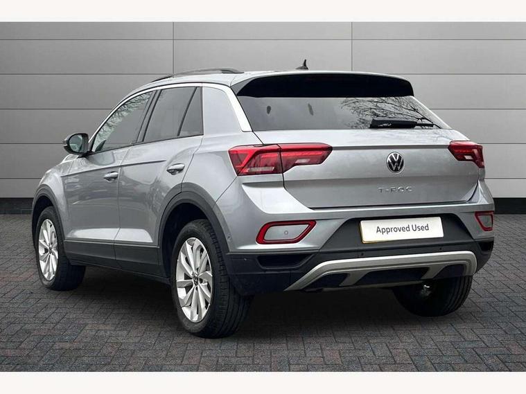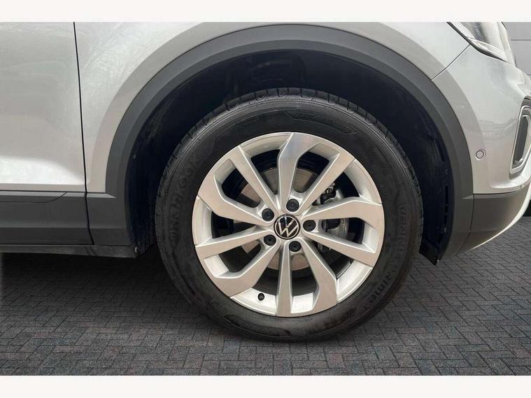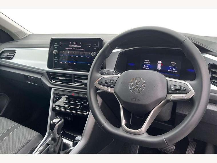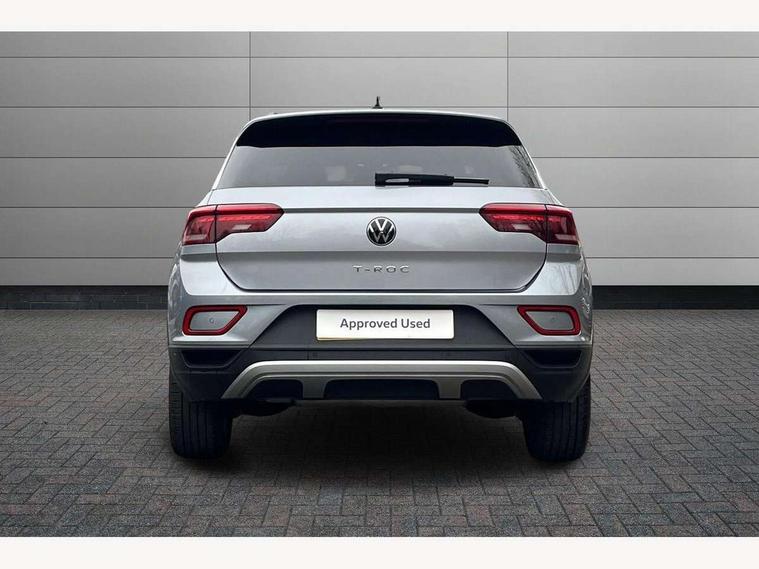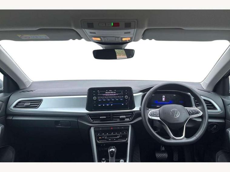 Advanced driver attention and drowsiness monitor, Dynamic road sign display, Emergency call service, Lane keeping system Lane Assist, Mobile phone interface, Modified key software - reduce switch off time for key status change to Long no motion, Online services, Park assist including front and rear parking sensors, Power assisted speed sensitive steering, Rear view camera, Service interval indicator, Tailgate/trunk lid release from outside, Think blue trainer driver tips and journey analysis, Warning sound and light for front seatbelts unfastened, Wireless app connect, Battery regeneration during braking, Front shock absorption, Rear shock absorption chassis with increased ride height, Start/stop function with battery regeneration, DAB Digital radio, Diversity antenna for FM reception, Music playback - MP3, WMA and AAC files, SD card slot, Simultaneous pairing of 2 compatible mobile devices, Title and cover art display, We Connect and We Connect Plus functionality, Auto dimming interior rear view mirror, Automatic hazard lights activation under emergency braking, Automatic headlight control with LED separate daytime running lights with coming/leaving home function, Black roof rails, Body coloured bumpers and radiator grille with chrome trim and front fog lamps with chrome bezel, Body coloured exterior mirror housings and door handles, Electrically adjustable and heated door mirrors, Extended roof spoiler, Exterior mirrors aspherical on driver side, convex on front passenger side, External USB type C socket and charging sockets, Front windscreen wiper with intermittent wipe and 4 position delay, Heated rear window, LED 3rd brake light, LED rear combination lamps, LED rear number plate lights, Power windows with comfort operation and circuit breaker, Privacy glass for rear side windows and rear window, Rain sensor, Rear exhaust tailpipe, Rear fog light on one side and reversing lights on both sides, Rear side wing doors, Rear wash/wipe with intermittent wipe setting, Remote electrically foldable door mirrors, puddle lights and reverse activated passenger's door mirror, 12V power socket in centre console, 3 rear head restraints, 3 seat bench in 2nd row, 4 load lashing points in luggage compartment, Air care climatronic air conditoning system with active combination filter and 2-zone temperature control, Black stitching for floor mats, Ceramique roof liner, Cloth upholstery, Door and side trim panel in cloth, Drawer under drivers seat, Driver/front passenger seat height adjustment, Front centre armrest, Front comfort sports seats, Front cupholders x 2, Front reading light, Front seat back storage pockets, Glove compartment door with light, Instrument lighting, white adjustable panel illumination, Interior ambient lighting and surround lighting, Interior light delay, Isofix child seat preparation, Leather gearshift handle, Load-through provision with cup holder when folded down ('Unsplit rear seat bench, split folding backrest, with centre armrest), Luggage compartment lighting, Lumbar support for driver's and front passengers seat, Non-folding front passenger seat backrest, Single front passenger seat, Storage compartment in left and right luggage area, Storage compartment in rear doors, Storage compartments in driver and front passenger doors, Sunvisors with illuminated vanity mirrors, Variable boot floor, height adjustable and removable, Driver assistance pack without proactive passenger protection - T-Roc Life/Match, 3 point height adj front seatbelts + pretensioners, 3 point seatbelts in outer rear with ECE label, ABS, Child locks on rear doors, City emergency braking and pedestrian monitoring, Driver and front passenger airbag with front passenger airbag deactivation, Driver and front passenger safety-optimised head restraints, Drivers seatbelt reminder, Electronic parking brake, Electronic Stability Control (ESC) inc EDL (Electronic Differential Lock) and ASR (Traction Control), Front and rear passengers curtain airbag system including front side airbags, Front disc brakes, Hill start assist, Predictive pedestrian protection, Rear disc brakes, Two tone horn, Tyre pressure loss indicator, Volkswagen roadside assistance, Alarm with interior protection, Keyless locking and starting system keyless access with safelock, Pewter matt decorative inserts for intrument panel, centre console and door panels at the front, Trims for alloy wheels,