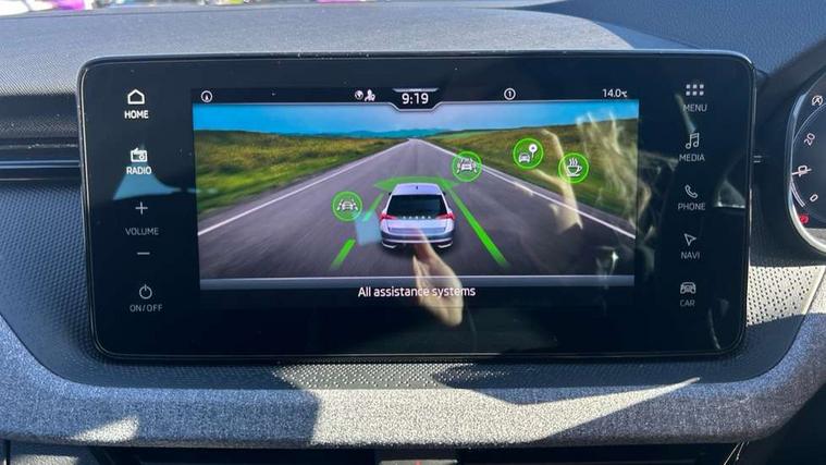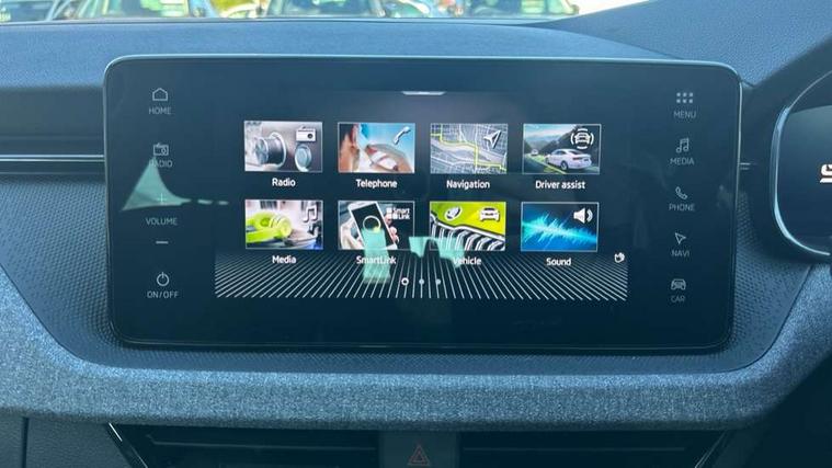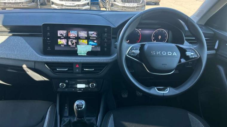 Advanced driver attention and drowsiness monitor, Bluetooth, e-Call (emergency call), Front assist system, PAS, Rear parking sensors, Rear view camera, Speed limiter, Tailgate, Traffic sign recognition, Virtual Cockpit - 10.25" digital display, Voice control system, Wireless smartlink, 4 USB C ports, 8 Speakers, 9.2" Skoda navigation display, DAB radio, Auto dimming rear view mirror, Automatic headlamp activation with Coming home and Leaving home feature, Automatic high/low beam, Body colour bumpers, Body colour door mirrors and handles, Chrome moulding around grille, Front and rear electric windows, Full LED headlights, Heated rear window, LED 3rd brake light, LED brake lights, LED daytime running lights, LED front turning lights, LED high beam, LED low beam, LED taillights, Rear LED fog light, Rear side wing doors, Rear wiper, Tinted windows, Unique dark chrome design logo on alloy wheels, 12V socket in luggage compartment, 3 seat bench in 2nd row, Black / Grey armrest stitching, Black hotstamping, Cargo elements, Chrome inner door handles, Door inserts in satin black, Driver and passenger sun visors with vanity mirror, Dual zone climate control, Front and rear roof lights, Front centre armrest, Front head restraints, Glasses storage in roof liner, Height adjustable driver seat, Height adjustable passenger seat, Ice scraper, Illuminated glove compartment, Inner circulation control with pollen filter, ISOFIX for front passenger seat, Isofix preparation for back seats, Leather gearknob and handbrake lever, Loft cloth upholstery, Luggage net under rear parcel shelf, Manual lumbar support for front seats, Net package and top tether hooks in boot space, Pearl grey ceiling, Pocket on the back of both front seats, incl. mobile phone pockets, Single front passenger seat, Skoda lettering on steering wheel, Textile floor mats, Third rear headrest, Ticket holder, Top tether for front passenger seat, Umbrella in driver's door, 3x3 point rear seatbelts, ABS, Child locks, Curtain airbags and front side airbags, Disc brakes, Driver and front passenger airbags, ESP, Hill hold control, Manual leather parking brake, One tone horn, Passenger airbag switch off function, Seatbelt reminder for driver and front passenger, Tyre pressure monitoring system, Anti theft alarm system with interior monitoring, backup horn and towing protection, Anti-theft wheel bolts, Remote central locking with 2 remote folding keys, SAFE function for remote central locking, Decord pad, door inserts Kota uni,