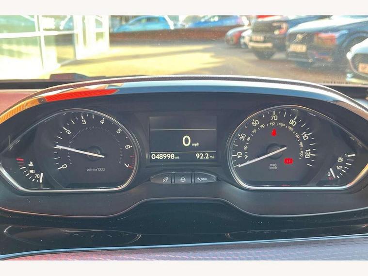 3D connected satellite navigation + voice control + Peugeot connect SOS and assistance, Apple car play/Android Auto, Aviation style handbrake, Bluetooth system, Colour Reversing camera, Cruise control + speed limiter, Electrically assisted power steering, External temperature gauge, Mirror link, Multifunction 7" touchscreen with steering wheel mounted control, PEUGEOT SOS and assistance, Rear parking aid, Service interval indicator, Trip computer, 2 front and 2 rear speakers + 2 tweeters, DAB Digital radio, USB interface, Automatic activation of hazard warning lights, Body colour bumpers, Bright chrome fog lamps surround, Bright chrome radiator grille with embossed pendant design and bright chrome surround, Cielo panoramic fixed glass roof with electric sunblind and ambient lighting, Colour coded door handles, Colour coded door mirrors, Cornering front fog lights, Electric front windows, Electric rear windows, Electrically operated heated door mirrors with electric folding operation, Follow me home headlights, Front and rear scuff plates, LED daytime running lights, One touch electric front/rear windows, Rear fog lights, Rear LED Peugeot signature 'Claw Effect' lights, Rear sports spoiler, Rear wash/wipe, Roof bars, Tinted rear and side windows, Wheel arch extensions, 1/3 to 2/3 rear bench seats with one touch fold, 1/3 to 2/3 split folding rear seats, 3 point rear seat isofix location mount X 2, 3 rear head restraints, Auxilliary 12V power socket, Driver seat height adjust, Driver/passenger sunvisors and vanity mirrors, Dual zone automatic air conditioning, Front head restraints, Front passenger seat height adjust, Gear shift indicator, Height/reach adjust steering wheel, High level retaining net, Leather and chrome gear knob, Leather steering wheel, Premium part leather upholstery, Visibility pack - 2008, 3 rear 3 point seatbelts, ABS/EBFD/EBA, Child safety lock, Driver and passenger airbags with passenger airbag deactivation switch, ESP with Hill Assist, Front and rear curtain airbags, Front side airbags, Seatbelt warning lamp and buzzer, Tyre pressure sensor, Alarm, Deadlocks, Remote central locking, Seatbelt alarm (Driver & Passenger), Thatcham Cat 2 engine immobiliser, 15" steel spare wheel, 16" Aquila alloy wheels,