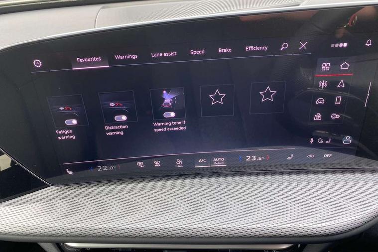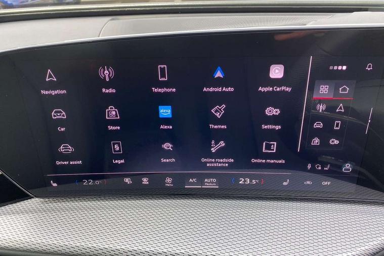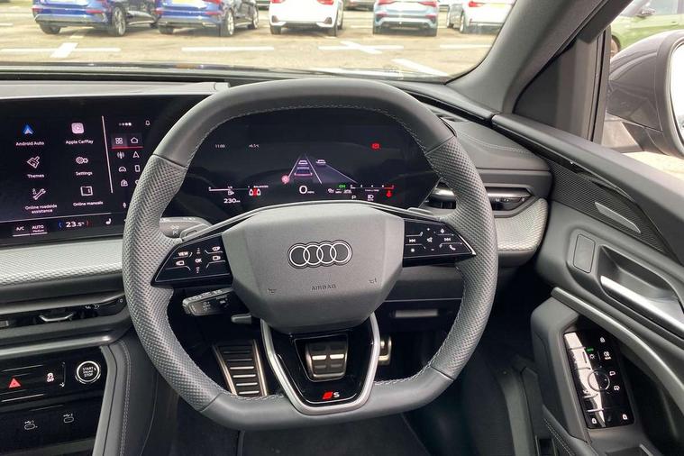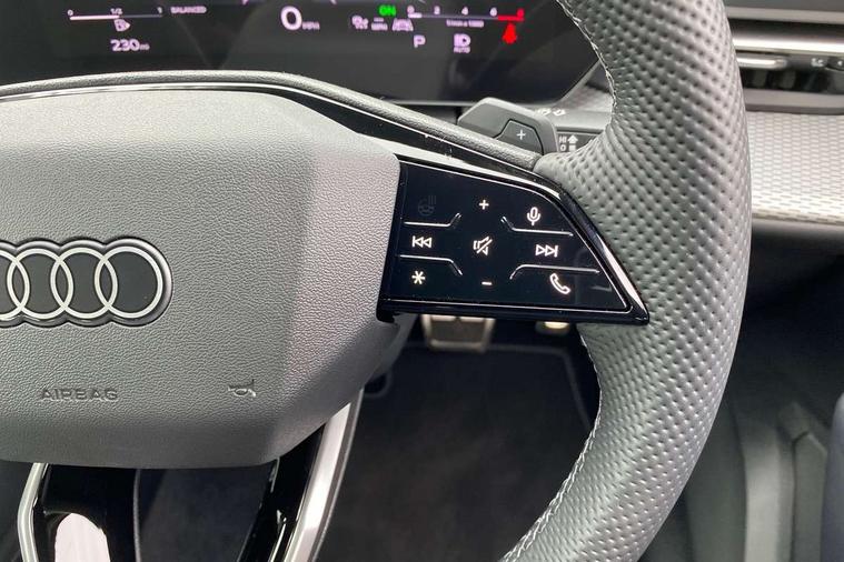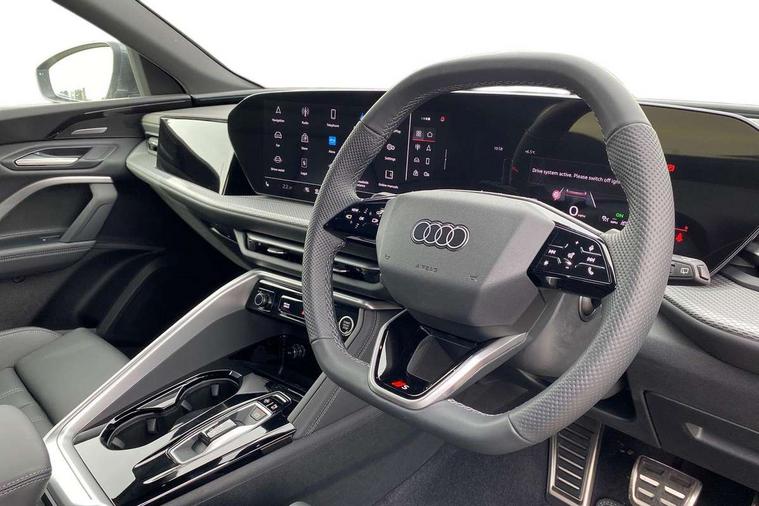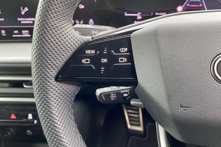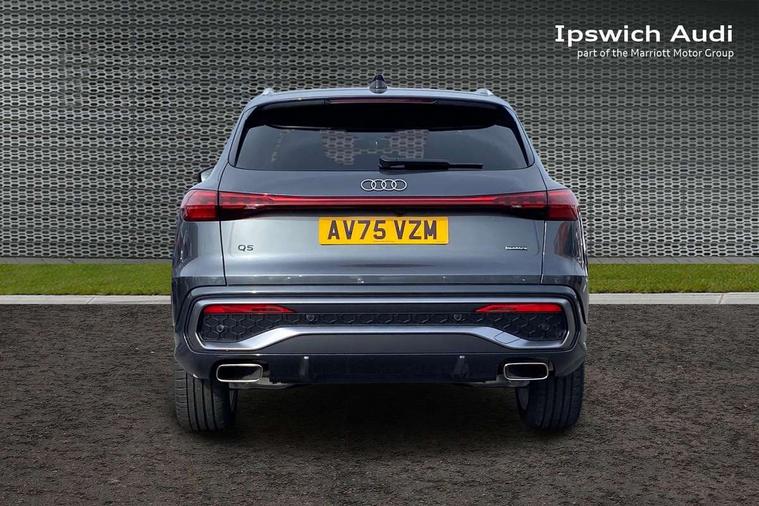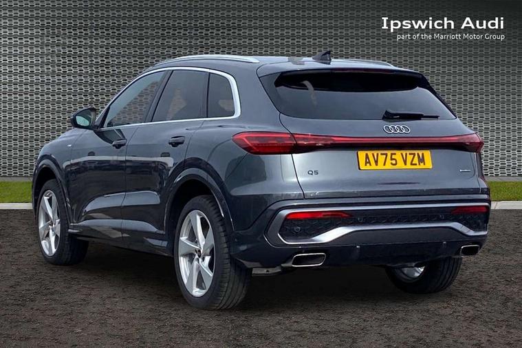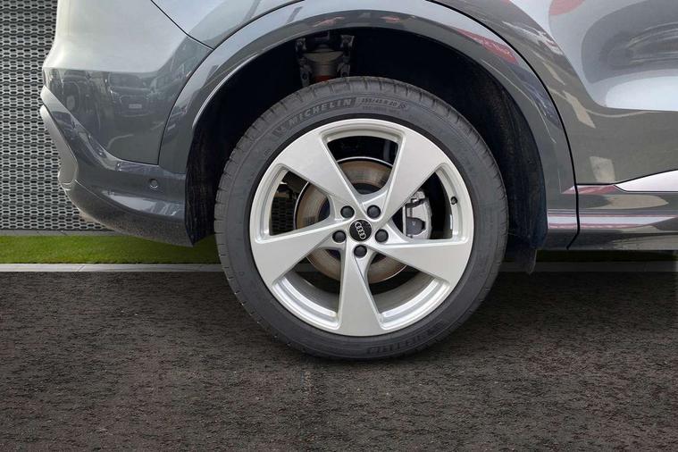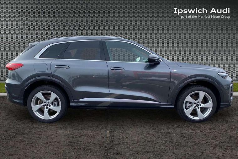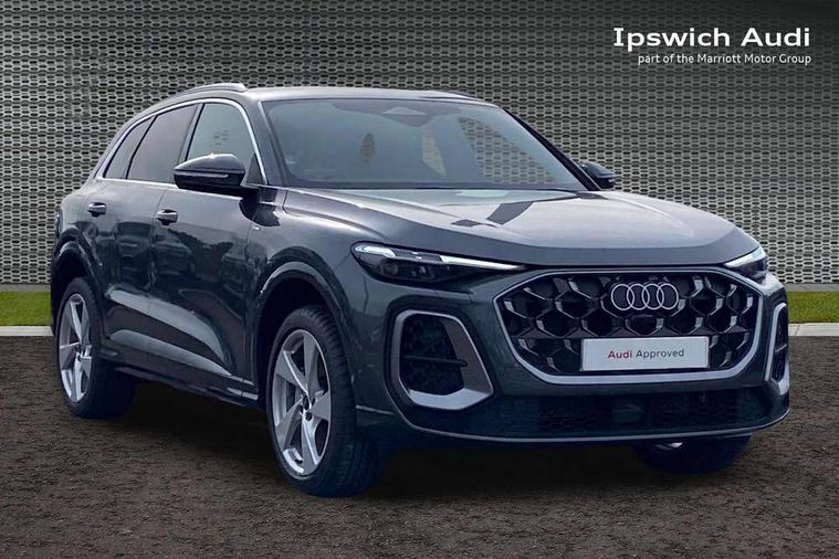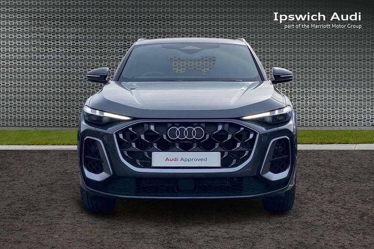 Adaptive cruise control, Attention and drowsiness detection with driver observation, Audi application store, Audi connect emergency call and service, Audi digital key, Audi drive select, Audi smartphone interface, Audi virtual cockpit plus with 11.9" OLED colour display, Camera based traffic sign recognition, Front cross traffic intersection assist, Lane change assistant with exit warning system, rear cross traffic alert and rear turn assist, Lane departure warning system, MMI navigation plus with high resolution 14.5" OLED touchscreen colour display, Park assist plus, PAS, Reversing camera, Swerve assist and front turn assist, Traffic sign based speed limiter, Audi sound system impressive sound with 8 loudspeakers including centre speaker and subwoofer, 6-channel amplifier with a total output of 180 watts, DAB Digital radio, Smartphone compartment with wireless charging, Aluminium roof rails, Auto dimming rear view mirror, Body coloured door mirrors, Electrically adjustable heated and folding + automatically dimming exterior mirrors, Front and rear electric windows, Front door sill trims with aluminium inlays, illuminated with 'S' logo, Grill frame, inlay and front air inlets in matt anthracite chrome, Headlight cleaning system, Heated rear window, High beam assist, High gloss window surrounds, LED headlights plus incl. digital DRL, dynamic coming and leaving home function with turning/all weather/motorway/manouevring and intersection lights, LED rear lights pro incl. dynamic rear indicators and illuminated light strip with animated coming and leaving home function, Logo projection light in exterior mirrors, Privacy glass, Projection third brake light for rear window in LED, Radiator grille in phantom black, Rear and side windows with heat insulating glass, Rear honeycombe grille in matt black with inlay in matt anthracite chrome, Rear side wing doors, Rear wash/wipe, S Line badge on the front wings, S line bumpers in contrasting Volcano grey metallic paint finish, Windscreen with acoustic glazing, 3 rear head restraints, 3 seat bench in 2nd row, 3 spoke leather steering wheel with multi-function buttons with touch control, flattened on top and bottom, with S badging and contrast stitching, 4 way electric lumbar support for driver and front passenger, Black carpets, Comfort centre armrest front, Deluxe 3 zone electronic climate control, Front and rear floor mats, Front sport seats with integrated head restraints, Headlining in black cloth, i-Size child seat mounting on the front passenger side and outer rear seats, i-Size and top tether on the outer rear seats, Increased charging capacity for USB ports 2X100 Watts in rear, 2X60 Watts in front, Interior trim in aluminium look, Luggage compartment lid, electrically opening and closing, Manual steering column adjustment, S embossed logo on front sport seats, Single front passenger seat, Softwrap in black, Stainless steel pedals and footrest, Steering wheel grips in perforated leather and shift paddles, Ambient lighting package plus - Q5, Rear seat bench plus pack - Q5, Storage and luggage compartment pack with luggage net - Q5, 3x3 point rear seatbelts, ABS, Acoustic vehicle alerting system, Convenience key with safelock, Driver and front passenger airbag with passenger airbag deactivation, Electric child safety locks, First aid kit with warning triangle and high visibility vests, Front emergency brake assist, Front side airbags with head airbag system and front interaction airbag, Hill hold assist, Rear seat occupant reminder, Tyre pressure loss indicator, Anti-theft wheel bolts, Thatcham approved category 1 anti theft alarm, Accent surfaces and control buttons in gloss black, Anthracite matt brushed aluminium inlays with linear embossing, Black dashboard with contrast stitching, Upper and lower interior elements in artificial leather, Tyre repair kit,