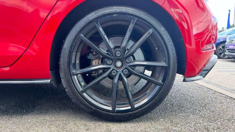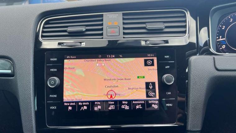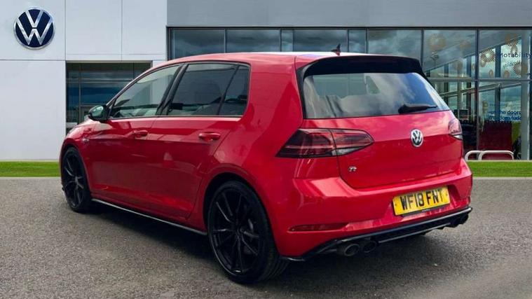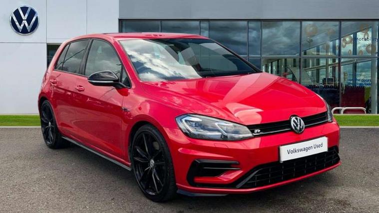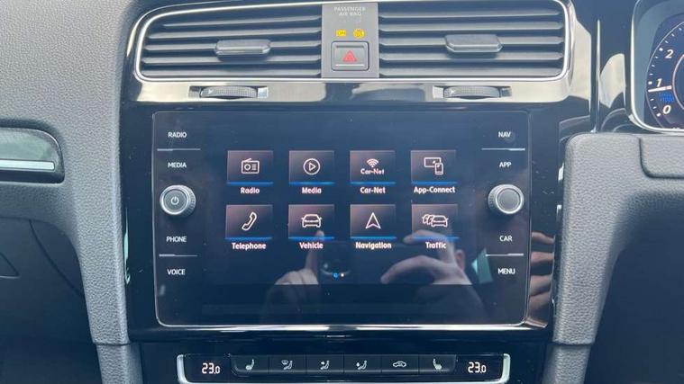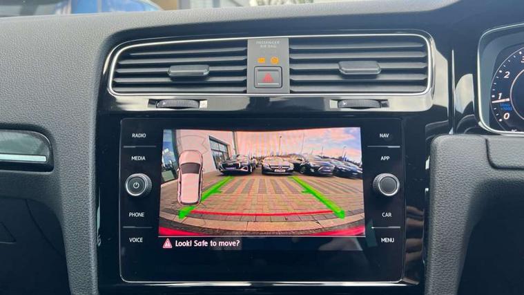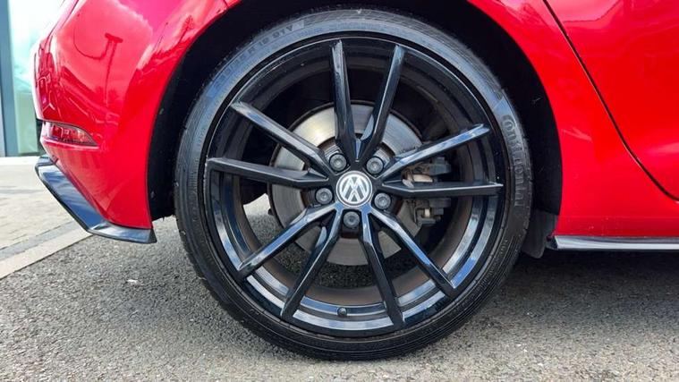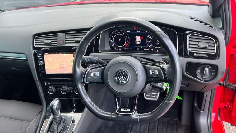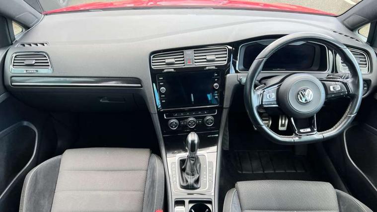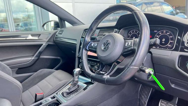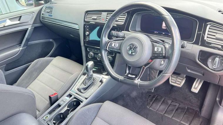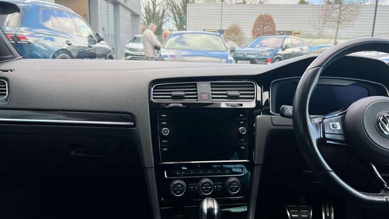 App-Connect, 'Lights On' Reminder warning buzzer, 8" touch screen, Adaptive Cruise Control with pedestrian detection and speed limiter, Bluetooth hands free telephone connection, Brake pad wear indicator warning light, Driver alert system, Driver profile selection, Exterior temperature gauge, Front assistant collision mitigation, Instrument cluster in white, Multifunction computer, Progressive power assisted steering, Rev counter, Trip and service interval display, Ultrasonic front and rear optical and audible parking sensors, Warning buzzer and light for front seatbelts unfastened, Anti-tramp function, Limited slip differential, Lowered sports suspension, CD/MP3/WMA, USB and SD card reader, aux-in, Composition media system, DAB Digital radio, 3D-LED-SBBR with sweeping indicator, Auto dimming rear view mirror, Automatic coming/leaving home lighting function, Automatic headlights, Black rear diffuser, Body colour door handles, Body colour rear roof spoiler, Body colour sports bumpers, Electric front windows, Electric rear windows, Electrically adjustable and heated door mirrors, Heated rear windscreen, Honeycomb radiator grille - black, LED daytime running lights, LED rear lights, Rain sensor, Rear windscreen washer and wiper with interval delay, 12V socket in luggage compartment, 3 rear headrests, 3 spoke steering wheel, 60/40 split folding rear seat, Air conditioning - 2 zone electronic climate control, Bag hook in luggage compartment, Black headlining, Boot lashing points, Chrome pedals, Cooled glovebox, Courtesy light delay, Cover for storage compartment in centre, Dust/pollen filter, Front + rear carpet mats, Front centre armrest with storage box and rear air vents, Front passenger seat height adjust, Front seat back storage pockets, Gearshift paddles, Grab handles, Height adjustable driver's seat, Height/reach adjust steering wheel, Illuminated door sills, Illuminated vanity mirrors, Isofix preparation for 2 rear child seats, Load through provision with rear centre armrest and cupholders x2, Luggage compartment cover, Luggage compartment lighting, Multifunction leather steering wheel with grey stitching leather trimmed gear knob including paddle shift, Overhead storage box, Storage box in luggage compartment, Storage compartments in doors, Sun visors, Variable boot floor, height adjustable and removable, Ambient lighting pack - Golf, Mirror pack - Golf, 3 point height adj front seatbelts + pretensioners, 3 rear 3 point seatbelts, ABS, Automatic post collision braking, Black brake calipers, Child locks on rear doors, Driver/Front Passenger airbags, Driver/Passenger whiplash optimised head restraints, Drivers knee airbag, Electronic parking brake with auto hold, ESP with EDL + ASR, Front and rear curtain airbags, Front passenger airbag deactivation, Front side airbags, Pre crash system, Tyre pressure monitor, Alarm with interior protection, Electronic engine immobiliser, Remote central locking with 2 remote folding keys, Carbon touch decorative inserts, Chrome-plated light switch surround, Piano black centre console, Space saver spare wheel,