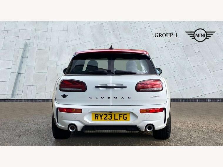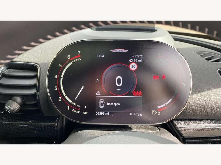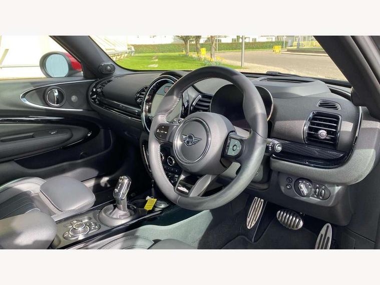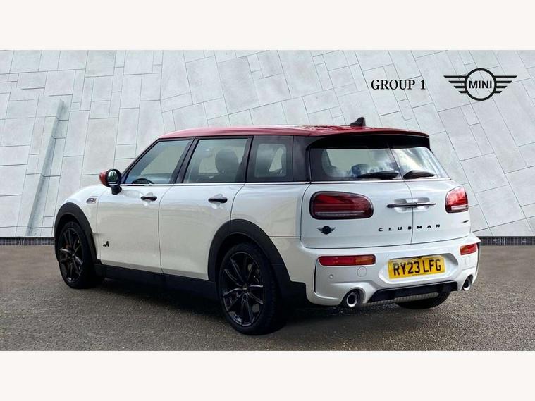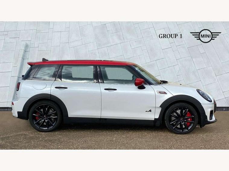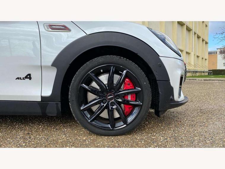 Active Guard incl speed limiting and lane departure functions with auto steering, and front collision warning with brake intervention, Automatic start/stop function with brake energy recuperation, Car sharing preparation, Compatible mobile phone bluetooth with audio streaming, Electro-mechanical speed dependant steering assistance, Instrument cluster, Mini E-call, MINI TeleServices, On board computer, 8 Speed steptronic sport transmission including electronic gear shifter and steering wheel paddles, All Wheel Drive (AWD), Double Vanos system, Fully variable valve control, High precision injection, Performance Control, FM tuner and DAB digital radio, Bonnet scoop, Chrome fuel filler cap, Dynamic brake lights, Electric windows, Heated rear window, Heated windscreen washer jets, John Cooper Works - aerodynamic kit (front and rear apron, spoiler), front and rear sport bumpers and part-painted side sills with door sill finishers, John Cooper Works entry sills, John Cooper Works rear spoiler, LED rear light with union jack design, Metal door sill strips with Cooper S imprint, Model logo on rear doors, Piano black exterior, Radiator grille piano black border with honeycomb structure in matt black with John Cooper Works logo above an individual grille struct in chilli red, Rain sensor with auto headlights, Rear fog lights, Rear side wing doors, Rear window wiper, Rear wing door, Side scuttle with MINI John Cooper Works logo in high gloss black with red border, Split rear doors, Sun/heat protection glass, Third brake light, Twin exhaust tailpipe, Variable front intermittent wipers, White indicator lenses, 12V Accessory socket in centre console, 3 seat bench in 2nd row, 360L luggage compartment capacity, 4 lashing eyes in luggage compartment, 60/40 split folding rear seat, Anthracite headlining with grab handles and clothes hooks, Chrome interior highlights, Cupholders, English handbook, Floor mats, Glove compartment, Height and length steering column adjustment, Interior lighting with 12 basic colours selectable via toggle switch in roof, Isofix rear child seat preparation, John Cooper Works leather gearshift lever and handbrake gaiter, John Cooper Works sports seat with integrated headrest, adjustable thigh support and John Cooper Works logo, LED reading lights, vanity mirror lights, front foot well light and spotlight on front seats, Multifunction steering wheel, Nappa leather steering wheel with JCW badge, Paddle shifts, Rubberised stainless steel pedals, Single front passenger seat, Storage compartments in doors, Sunvisors with vanity mirrors, Toolkit, Comfort plus pack with Park assist - Mini Clubman, Excitement pack - Clubman, Extended interior lighting pack - Mini Clubman, Navigation pack - Clubman, 17" front sport brake with 4 piston fixed calliper, 2 tone horn, 3 point seatbelts on all seats, 6 Airbags - front, side, head and seat belt tensioners, Anti-lock braking system (ABS), Child locks on rear doors, DSC - Dynamic Stability Control, Electronic handbrake, Front and rear disc brakes, Red brake callipers with John Cooper Works logo, Torsen mechanical limited slip differential, Tyre pressure monitoring system, Alarm system with tilt sensor, monitoring doors, bonnet interior and tailgate, Auto drive away locking, Comfort access system, Deadlocking function, Electronic vehicle immobiliser, Locking wheel bolts, Remote central locking, Start/stop toggle with keyless go,