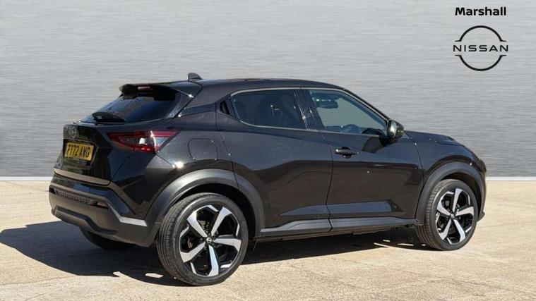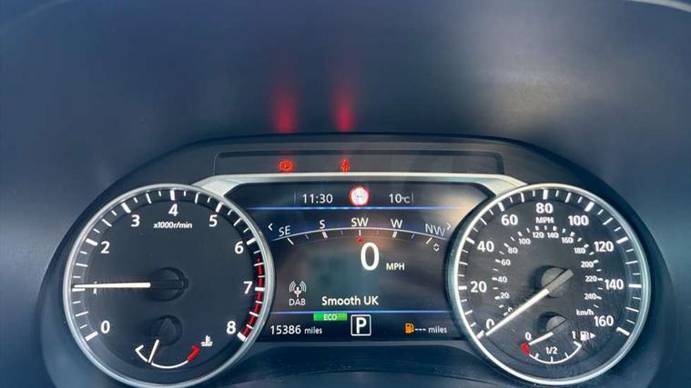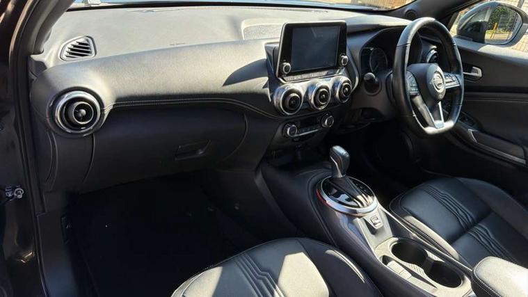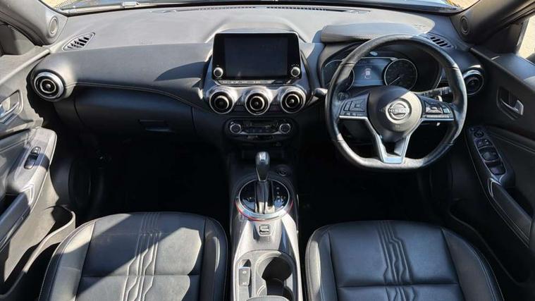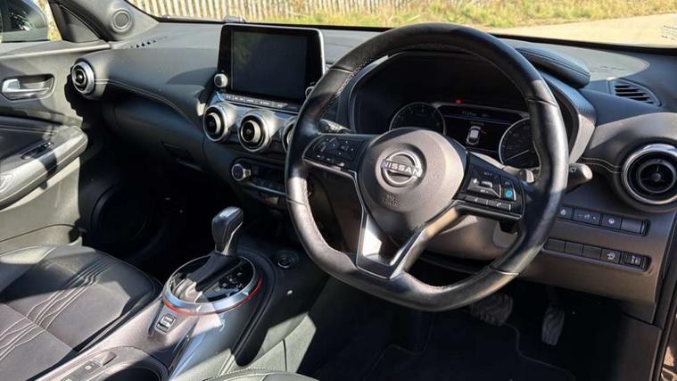 7" full colour TFT screen combimeter, Apple CarPlay and Google Android auto, Drive modes select (Eco, normal and sport), Emergency and breakdown call, Front parking sensor, Idle start/stop system, Intelligent lane intervention, Lane departure warning system, Nissan connect 8" touch screen entertainment system, Nissan connect nav with TomTom traffic, Nissan connect services and Wifi connection, Outside temperature sensor, Power Steering, Rear parking sensor, Traffic sign recognition, Trip computer, Voice recognition, Gasoline particulate filter, 10 Bose speakers 6 speakers and 2 headrest speakers for driver/passenger seats, Bluetooth system, USB, Aux-in and 12V socket, Bose personal sound stage control, DAB Digital radio, Rear console USB port, Auto dimming interior rear view mirror, Auto headlights, Automatic hazard signal with emergency stop signal, Body colour bumpers, Body colour door handles, Electrically adjustable door mirrors with integrated indicators, Follow me home headlights, Front and rear electric window with one touch driver window, Heated and auto folding door mirrors, High beam assist, LED daytime running lights, LED front fog lights, LED headlamps, LED rear fog lamp, LED rear lamps, Rain sensor windscreen wipers, Rear privacy glass, Rear side wing doors, Rear wiper, Thermaclear heated windscreen, Three blink turn signal, 3 height adjustable rear headrests, 3 seat bench in 2nd row, 60/40 split folding rear seat, Automatic climate control, Card holder on driver sunvisor, Door ambient lighting, Driver and passenger sliding and reclining seats, Driver seat back pocket, Driver side rear coat hanger, Driver/passenger sunvisors and vanity mirrors, Front and rear cabin lights, Front armrest, Front door pockets with bottle holders, Front head restraints, Front passenger isofix child seat anchorage point, Front/rear passenger grab handles, Gear console ambient circle lighting, Grey synthetic leather kneepad, Heated front seats, Height adjustable driver's seat, Height adjustable passenger seat, Internal chrome door handles, Leather gearshift knob, Leather steering wheel, Luggage board, Luggage space lighting, Monoform sporty seats, Multifunction steering wheel, Passenger seat back pocket, Rear door bottle holders, Single front passenger seat, Steering wheel mounted gearshift paddles, Synthetic leather upholstery, Telescopic steering wheel adjustment, Two cupholders in front centre console, Two rear isofix child seat anchorage points with top tether, Welcome light and console tray ambient lighting, ProPilot pack - Juke, ABS with EBD and brake assist, Active ride control, Active Trace Control, Driver and passenger airbags, Driver and passenger side airbags, Electric handbrake with auto hold function, Electronic Stability Programme (ESP), Front and rear curtain airbags, Height adjustable seatbelts, Hill start assist, Intelligent emergency braking with pedestrian and cyclist recognition, Rear door child safety locks, Seatbelt reminder for driver/front passenger and rear seats, Single tone horn, Three 3 point rear seatbelts, Traction control, Tyre pressure monitoring system, VDC Dynamic Vehicle Control, Ventilated rear brake discs, Alarm, Immobiliser, Intelligent key and start push button with walk away lock and approach unlock functions, Remote central locking,