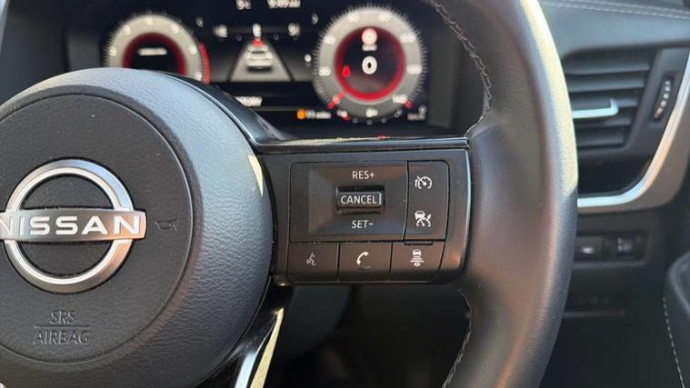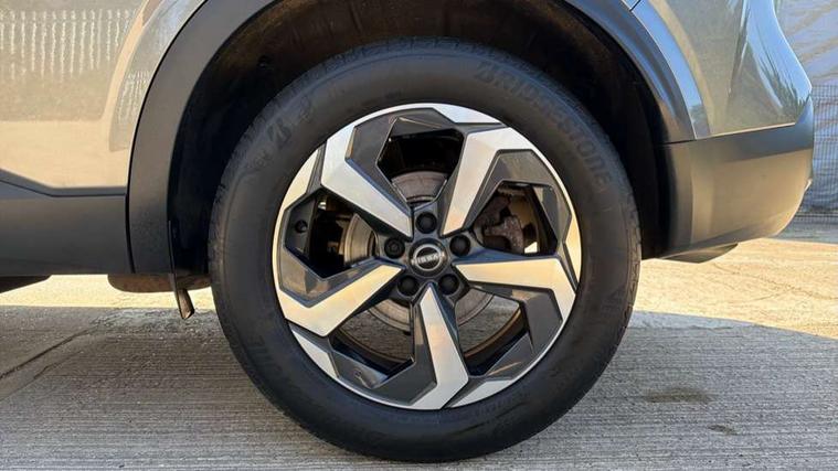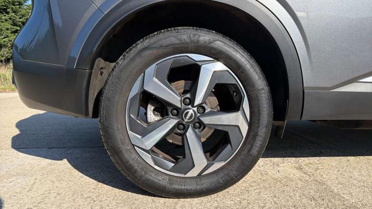 Android auto/Apple CarPlay (Wired), Blind spot warning, Drive modes (sport, normal, eco), Electric speed sensitive power steering, Emergency and breakdown call, Front and rear parking sensors, Full Digital 12.3" TFT Digital Combimeter, Google maps services - search, weather, 3D maps and Google street view, Idle stop/start system, Intelligent around view monitor, Intelligent Cruise control (ICC), Intelligent driver alert system, Intelligent forward collision warning, Intelligent lane intervention, Lane departure prevention, Lane departure warning system, Maximum speed limiter, Moving object detection, Nissan connect 12.3 inch touchscreen infotainment system, Nissan connect navigation, Push button starter, Rear cross traffic alert, Rear view camera, Remote control services - door locks, lights, horn and car locator, Telematics - notifications and connectivity services, TomTom live traffic services, Traffic sign recognition with legal speed adjustment, Trip computer, Virtual personal assistant and firmware over the air capability, Wireless apple carplay, 6 speakers, AM/FM audio system with DAB, Bluetooth audio streaming, Front USB connections (Type-A and Type-C), Rear USB charging only ports (Type-A and Type-C), Auto dimming rear view mirror, Auto rear wiper when reversing, Automatic hazard signal with emergency stop signal, Body colour mirror caps, Body coloured door handles, Bodyside mouldings, Chrome side window finisher, Door handle with button, Electric auto folding door mirrors, Electrically adjustable and heated door mirrors with LED turn indicator, Follow me home headlights, High beam assist, Intelligent auto headlights, LED daytime running lights, LED Headlights, LED rear lights, One touch front and rear electric windows with remote opening and closing, Partially body coloured bumpers, Privacy glass, Rear bumper with graphite insert, Rear reversing light (bulb lighting), Rear roof spoiler, Rear side wing doors, Rear styling plate, Shark fin antenna, Splash free rain sensing wipers, Super UV and infrared cut glass, Three blink turn signal, 12v power socket in dashboard and luggage, 2x Rear coat hooks, 3 bench rear seats in 2nd row, 3 rear headrests, 4 folding assist grip, 6 Luggage hooks - 4 on floor, 2 on side, 6-way manually adjustable driver's seat, 60/40 split folding rear seat bench, Ambient lighting around centre console, Centre console storage tray, Chrome interior door handles, Cloth monoform upholstery, Driver and front passenger sunvisors with illuminated vanity mirrors, Driver seat back pocket, Dual zone automatic climate control with pollen filter, Electrically adjustable lumbar support for driver, Front and rear door storage, Front centre console and armrest, Front cupholders x 2, Front door with bottle holders, Glovebox with light, Hard trunk cover, Height adjustable driver's seat, Height adjustable front headrests, Height adjustable passenger seat, Leather shift knob, Leather steering wheel, Luggage board system, Luggage space lighting, Manually adjustable passenger (slide recline + lifter), Multifunction steering wheel, Passenger seat back pocket, Rear armrest with 2 cupholders, Rear door bottle holders, Single front passenger seat, Soft PVC kneepad, Steering wheel switches, Sunglasses holder, Tilt/telescopic adjustable steering wheel, Two rear isofix child seat anchorage points with top tether, Welcome light and console tray ambient lighting, 3x3 point rear seatbelt pretensioners + load limiters, ABS with EBD and brake assist, Active brake limited slip, Auto hold function, Child locks on rear doors, Curtain and front side, far side airbags, Driver and passenger airbags, Driver, passenger and 2nd row rear seat belt reminder, Electronic parking brake, Front seatbelt pretensioners + load limiters, Height adjustable front seatbelts, Hill start assist, Intelligent blind spot intervention, Intelligent front emergency braking with pedestrian, cyclist recognition and junction assist, Intelligent rear automatic braking, Tyre pressure monitoring system, Vehicle dynamic control, Capless fuel filler, Engine immobiliser, Intelligent Key, Remote central door locking with deadlocking, Thatcham Cat.1 alarm, Interior instrumental panel B finisher, 18" Diamond cut alloy wheels, Tyre puncture repair kit,