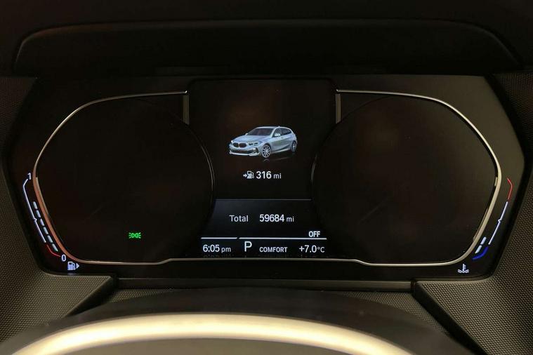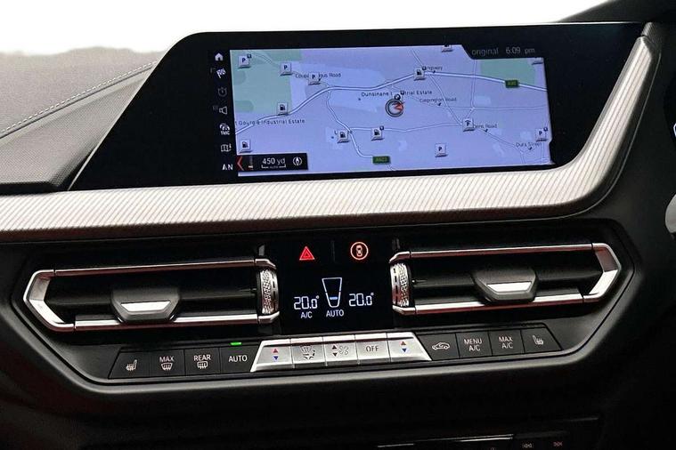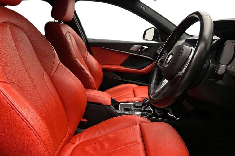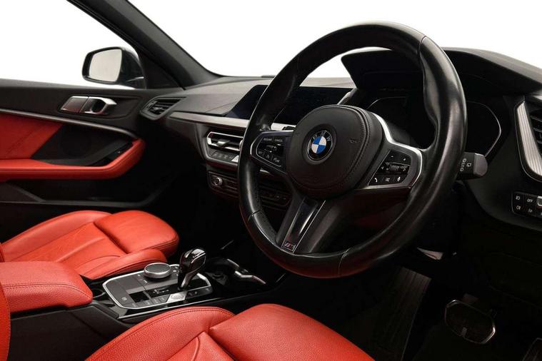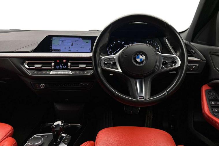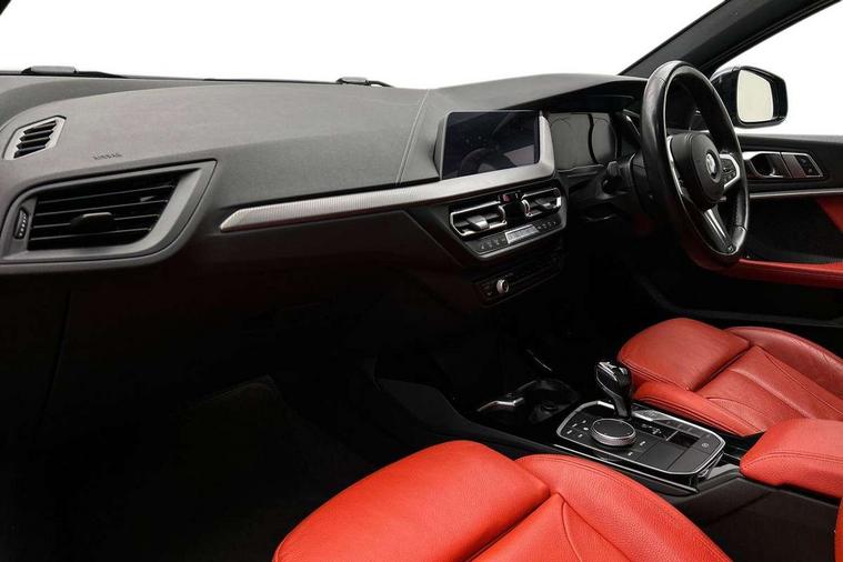 Active guard plus, Attentiveness assist, BMW Online services, BMW Teleservices, Check Control warning system for monitoring of lights and door/luggage compartment open warning, Connected eDrive Services, Eco pro mode, Electric power steering with Servotronic steering optimised at all speed ranges, Integrated owners handbook, Oil sensor for level and grade, On board computer, Optimum shift indicator, Personal Profile, Pull away assistant, Speed limiter, Aluminium lightweight construction, Anti roll bar front and rear, Balancer shaft, Double VANOS, Drive Performance Control, Electronic differential lock, High precision injection, M sports suspension + self levelling, Petrol Particulate Filter, VALVETRONIC engine management, Bluetooth audio streaming, DAB Digital radio, Auto dimming rear view mirror, Automatic headlight beam throw control, Body colour door handles, Body colour mirror caps, Chrome 'M' logo side designation, Chrome exhaust tailpipe in single, round (Exhaust tailpipe, stainless steel - single, round), Chrome kidney grille frame with Satin Aluminium struts, Direction indicator side lights in exterior mirrors, Electric folding and anti dazzle exterior mirrors, Fading support, Follow me home headlights, Front and rear electric windows with open and close fingertip control, anti trap facility and comfort closing, Front door sill finishers in black plastic with BMW designation, Green tinted heat protection glazing, Heated, electrically adjustable exterior mirror aspheric on driver side, convex on passenger side, High gloss shadow line exterior trim, High gloss shadowline window frame, Recess cover mirror frames and B/C pillar embelisher trim, High level third brake light, LED daytime running lights, LED eyebrow turn indicators, LED front fog lights, Lightweight engineering, Matt black air guide grilles, Model designation on right side of tailgate, Nearside reverse light in rear light cluster, Rain sensor including auto headlights activation, Rear fog lights, Rear window wiper, Shark fin antenna, Visible VIN plate, Welcome lighting, Windscreen wipers with integrated washing jets, 12V power socket in centre console, 2 cupholders in front centre console, 3 rear seat head restraints, 3 spoke M sports design leather steering wheel finished in nappa leather with specific M badge, Anthracite headlining, Anthracite Velour floor mats, Child seat ISOFIX attachment for two outer rear seats and front passenger seat with anchorage points, Conditioned based service, Dakota leather upholstery with perforation and contrast stitching, Driver and front passenger seat heating, Driver side folding compartment in instrument panel, Folding rear clothes hook, Folding rear seats, Four grab handles integrated in roof lining, Front and rear door pockets, Front and rear side armrest integrated into door trim, Front armrest foldable with integrated storage compartment, Front sports seats with electric side bolster adjustment, Glove compartment, Height adjustable front head restraints, Manual adjust steering wheel, Multi-function controls for steering wheel, Rear seat backrest with manual 60:40 split folding with 3 top tether clips integrated on rear of seat panels, Storage compartment in centre console, Sun visors with vanity mirrors and insert tab, Two zone automatic air conditioning, Extended Lighting pack - 1 Series, Extended storage pack - 1 Series, Interior lights pack - 1 Series, Luggage compartment pack - 1 Series, M Sport exterior styling aerodynamics pack - 1 Series, 2 tone horn, 3 point seatbelts on all seats, front pyrotechnic belt tensioners, stopper and belt force limiters, rear coded belt buckles, Airbags - Front driver and passenger, front and rear head, front side, curtain head protection, Anti lock braking system (ABS) with brake assist, BMW emergency call, Brake drying, Braking readiness, Crash sensor activating central locking release, hazard warning lights, fuel cut off, interior lighting + activation of safety battery terminal clamp, Driver and front passenger seat belt security check, Dynamic stability control + (DSC+), Dynamic Traction Control - DTC, Electrically operated hand brake, Front and rear disc brakes, Front passenger manual airbag deactivation, Rear child proof door locks, Seatbelt warning, Side impact protection, Tyre pressure monitoring system, Warning triangle and first aid kit, Automatic drive away locking facility, Central locking switch for all doors, fuel filler cap and luggage compartment, Deadlocking function system to all doors, Locking wheel bolts, Remote control with integrated key with High-gloss Black inlay and M designation and 1 button for open/ close lock, window, open luggage compartment, Start/stop button with comfort go keyless engine start and auto start stop deactivation button, Thatcham Cat.1 alarm and immobiliser, Contrast stitching on instrument panel, Reduced rolling resistance tyres,
