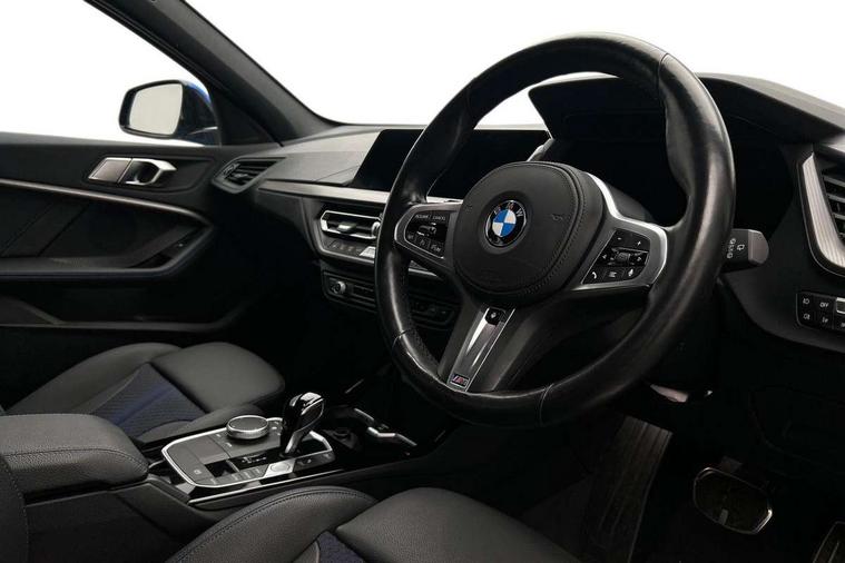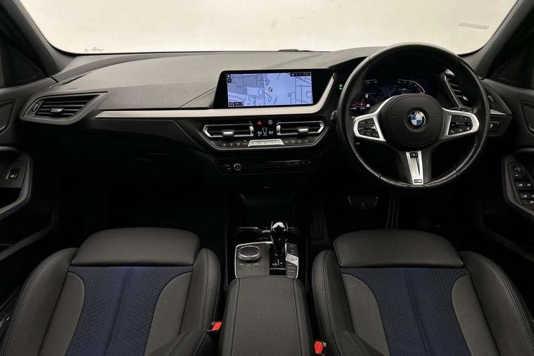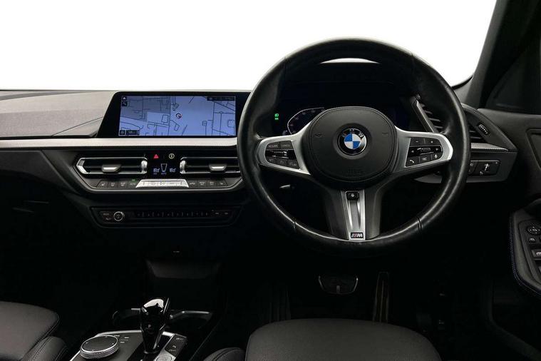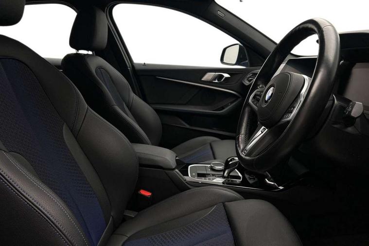 Active guard plus, Attentiveness assist, Bluetooth / WiFi interface for wireless connection of mobile terminal devices and audio streaming, BMW ConnectedDrive online services, BMW Teleservices, Check Control warning system for monitoring of lights and door/luggage compartment open warning, Cruise control with brake assist, Eco pro mode, Front axle single joint with specific axle kinematics to minimise drive influences on steering + provide increased rigidity agile driving behaviour, Integrated owners handbook, Lane departure warning system, Oil sensor for level and grade, On board computer, Optimum shift indicator, Personal Profile, Pull away assistant, Rigidly mounted rear subframe - Multi link construction with separate spring / damper configuration and excellent driving characteristics, Speed limit Info including no-overtaking indicator, Speed limiter, Aluminium lightweight construction, Anti roll bar front and rear, Balancer shaft, Double VANOS twin scroll turbocharging system, Drive Performance Control, Electronic differential lock, High precision injection, M sport suspension, Petrol Particulate Filter, Twin tube gas filled shock absorbers with degressive characteristic curve, VALVETRONIC engine management, DAB Digital radio, Auto dimming rear view mirror, Automatic headlight beam throw control, Automatic windscreen wipers and automatic headlight, Body colour door handles, Body colour mirror caps, Body colour roof trims, Chrome 'M' logo side designation, Chrome exhaust twin tailpipes round 90mm in left, Chrome kidney grille frame with Satin Aluminium struts, Direction indicator side lights in exterior mirrors, Fading support, Folding side mirrors with auto dimming/folding wing mirrors with auto dimming, Follow me home headlights, Front and rear bumper system with replaceable deformation elements, Front and rear electric windows with open and close fingertip control, anti trap facility and comfort closing, Front door sill finishers in black plastic with M designation in metallic look, Green tinted heat protection glazing, Heated, electrically adjustable exterior mirror aspheric on driver side, convex on passenger side, High gloss shadowline window frame, Recess cover mirror frames and B/C pillar embelisher trim, High level third brake light, Integrated front windscreen with washer jets, LED daytime running lights, LED eyebrow turn indicators, LED front fog lights, Lightweight engineering, Matt black air guide grilles, Matt black wheel arch trim, Model designation on electric bootlid, Nearside reverse light in rear light cluster, Preparation for high beam assistant, Rear fog lights, Rear side wing doors, Rear window wiper, Shark fin antenna, Trailer stabilisation logic, Visible VIN plate, Welcome lighting, 12V power socket in front centre console with blanking plug, 3 rear seat head restraints, 3 seat bench in 2nd row, 3 spoke sports leather steering wheel with black leather and stitching, pearl chrome decorative finish, specific M Badge, Ambient interior lighting, Anthracite headlining, Black boot net with lashing eyes, Cargo function on 2nd seat row, Child seat ISOFIX attachment for two outer rear seats and front passenger seat with anchorage points, Conditioned based service, Driver and front passenger seat heating, Folding rear clothes hook, Four grab handles integrated in roof lining, Front and rear door pockets with bottle holders, Front and rear side armrest integrated into door trim, Front armrest, Front sports seats, Glove compartment, Height adjustable front head restraints, Luggage compartment for bag hooks on left and right, foldable luggage compartment liner and four lashing eyelets, Manual adjust steering wheel, Multi-function controls for steering wheel, Single front passenger seat, Storage compartment in centre console, Sun visors with vanity mirrors and insert tab, Two front centre console cupholders, Two zone automatic air conditioning, Velour floor mats, Additional interior lighting pack - 1 Series, BMW live cockpit professional pack- 1 Series, Connected pack professional - 1 Series, Interior lights pack - 1 Series, M Sport exterior styling aerodynamics pack - 1 Series, 2 tone horn, 3 point seatbelts on all seats, front pyrotechnic belt tensioners, stopper and belt force limiters, rear coded belt buckles, Airbags - Front driver/passenger, front and rear curtain head protection, front side, manual deactivation of front passenger airbag, Anti lock braking system (ABS) with brake assist, BMW emergency call, Brake drying, Braking readiness, Child proof locking system in rear door, City braking function, Comfort modes, Cornering brake control, Crash sensor activating central locking release, hazard warning lights, fuel cut off, interior lighting + activation of safety battery terminal clamp, Driver and front passenger seat belt security check, Dynamic stability control + (DSC+), Dynamic Traction Control - DTC, Electrically operated hand brake including automatic hold function, Front and rear disc brakes, Seatbelt warning, Side impact protection, Tyre pressure monitoring system, Warning triangle and first aid kit, Central locking switch for all doors, fuel filler cap and luggage compartment, Deadlocking function system to all doors, Drive away locking system on all doors and luggage compartment with de-activated in iDrive settings, Locking wheel bolts, Remote control with integrated key with High-gloss Black inlay and M designation and 1 button for open/ close lock, window, open luggage compartment, Start/stop button illuminated in centre console with keyless engine start and auto start stop deactivation button, Thatcham Cat.1 alarm and immobiliser, Wheel slip limitation close to the actuator (ARB), Contrast stitching on instrument panel, Electrically powered 12V compressor, Reduced rolling resistance tyres,