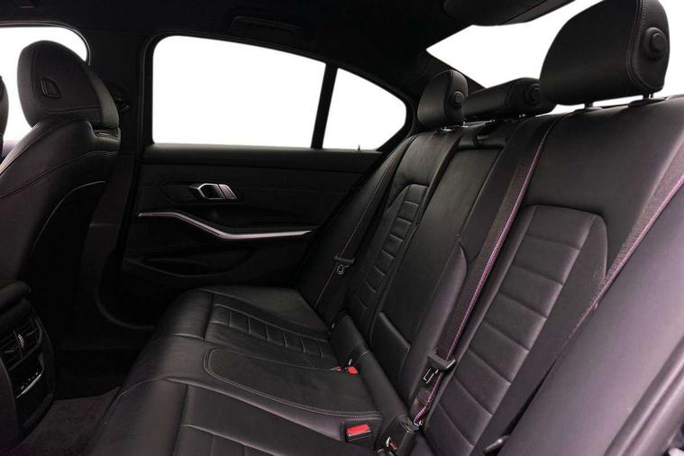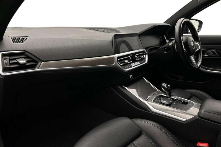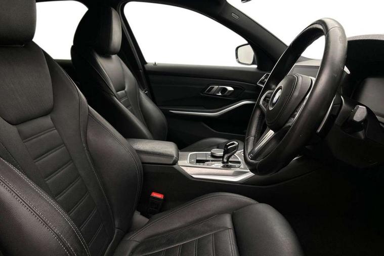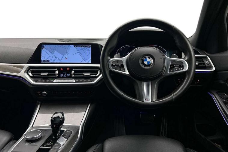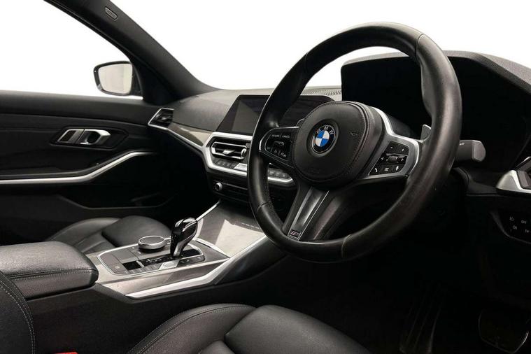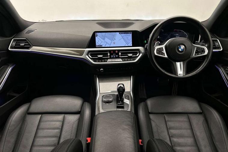 Active guard plus, Attentiveness assist, Auto start-stop, BMW ConnectedDrive online services, BMW iDrive controller on centre console, BMW Live Cockpit Professional sat nav system including 10.25" high resolution display and Intelligent Voice Assistant, BMW service history, BMW Teleservices, Brake pad wear indicator in front and rear, Check Control warning system for monitoring of lights and door/luggage compartment open warning, Condition based service, Electric power steering with Servotronic steering optimised at all speed ranges, Instrument cluster with speedometer with mph readout, tachometer, fuel gauge and oil temperature gauge, Integrated owners handbook, Oil sensor for level and grade, warning by check control system, On board computer - average speed+fuel consumption, service interval, clock/date, odometer/trip meter, outside temperature display and ice warning, Optimum shift indicator, Personal Profile - automatic lock when driving away selectable, Variable sport steering, Adaptive M suspension, Balanced 50/50 weight distribution, Battery cut-out switch, Drive performance control - ECO PRO, comfort and sport modes, Electronic differential lock control (EDLC), Larger capacity fuel tank, Petrol Particulate Filter, Sport automatic transmission with steering-wheel mounted gearshift paddles and launch control, Stroke dependent dampers, DAB tuner, Electronic service booklet, Acoustic glazing, Active airstream chrome frame kidney grille with 8 high gloss black vertical slats, Automatic headlight beam throw control with load dependent regulating reaction, dynamic compensation of braking dive and acceleration squat, Black mirror caps, Black roof mouldings, BMW Individual high gloss shadow line with extended contents, BMW Unique paint, Body colour - fuel filler flap, front and rear bumpers, door handles and mirror caps with integrated turn indicator + bottom segment in matt black, Dynamic brake lights, Electric windows - front and rear, with open/close fingertip control, anti-trap facility and comfort closing, Exhaust tailpipe - split left and right, Extended LED headlights, Exterior mirrors - electrically folding with anti-dazzle, Fading support, Front and rear bumper system with replaceable deformation elements, Front black door sill finishers with BMW designation, Green tinted heat protection glazing, Interior rear view electrochromatic mirror with automatic anti dazzle function, LED front fog lights, Lightweight engineering, M designation on front side panels, left and right, M rear spoiler, Matt black exterior B pillar, Model designation on right side of tailgate, Rain sensor with automatic headlight activation, Rear wiper, Shark fin antenna, Sun protection glass, Two part LED tailights in L-shape with components in smoked glass, brake light, LED turn indicator and rear fog light, Visible VIN plate, Welcome lights in interior and door handle area, Windscreen wipers with integrated washing jets, 12V power socket in front storage compartment, 2 front cupholder in centre console with clamping elements and matt black inlay, 3 rear seats with non folding headrests with 3 point seat belts, 3 zone automatic air conditioning, 4 pieces lashing eyelets in luggage compartment, 40:20:40 split folding rear seat with loading system, Ambient lighting with welcome carpet light, Anthracite headlining, Armrest integrated in front and rear door trim + front centre console armrest, Centred top Luggage compartment lights, Four grab handles integrated in roof lining, Front and rear door exit lighting (left / right), Front and rear door pockets, Front and rear reading lights, Front and rear velour floor mats, Front head restraints, Front sport seats, Heated driver and front passenger seats, Height adjustable mechanically and infinitely variable steering column, Illuminated armrest storage compartment, Illuminated glove compartment with separate small compartment, Interior lighting - front centre over interior mirror with soft light, rear centre and front and rear footwell lighting, M Sport multifunction leather steering wheel, Make-up mirror lights, Rear centre armrest with 2 cupholders, Rear centre console with storage compartment and ventilation grille, Sunvisors with vanity mirrors and ticket pocket, Toolkit located in luggage compartment, Connected pack professional - 3 Series Saloon/Touring, M Aerodynamics pack - 3 Series Saloon/Touring, 2 tone horn, BMW emergency call, Brake energy regeneration, Braking pre-tensioning, Child proof locking system in rear door, Child seat ISOFIX attachment rear outer seats, Coasting in idle in ECO PRO mode, Crash sensor activating of airbags, Unlocking doors, hazard warning lights, interior light, safety battery terminal, Driver and front passenger side airbags, integrated in the door side seat backrest bolsters for all seat variants, Driver/Front Passenger airbags, Dry braking, Dynamic brake control, Dynamic stability control + (DSC+) - Anti-lock Braking System (ABS) with brake assist and cornering brake control + Automatic Stability Control (ASC), Dynamic Traction Control - DTC, Electric parking brake including automatic hold function and automatic release of the parking brake when driving off, Front passenger manual airbag deactivation, Head airbags for all 4 outer seats, Hill start assist, M Sport braking system, M sport seatbelt, Seat belt security check for driver and front passenger, Side impact protection, Three 3 point seat belts on all seats including front belt stopper, pyrotechnic belt tensioners and belt force limiters, Tyre pressure monitoring with three level warning strategy, Ventilated front and rear disc brakes, Warning triangle and first aid kit, Alarm system (Thatcham 1) with remote control and electronic engine immobiliser, Central locking switch for all doors, fuel filler cap and luggage compartment, Remote control with integrated key one button open/close vehicle and windows, sole opening of the luggage compartment lid and panic mode, Start/sto
