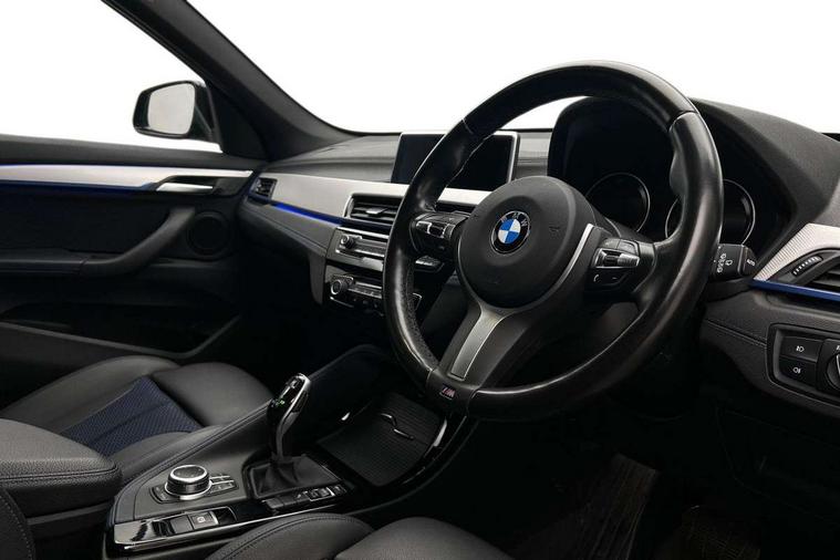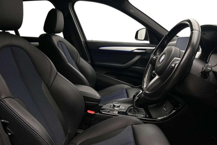 Active Guard incl speed limiting and lane departure functions with auto steering, and front collision warning with brake intervention, Ambient temperature display, Apple CarPlay, Arrow pointers, north up, direction of travel and perspective map displays, Attentiveness assist, Automatic tailgate opening, BMW ConnectedDrive, BMW Navigation system with 8.8" monitor and 800X480 pixel resolution, BMW Online services, BMW remote services, BMW Teleservices, Brake pad wear indicator in front and rear, Characteristic map controlled oil pump system, Cruise control with brake assist, Front axle single joint with specific axle kinematics to minimise drive influences on steering + provide increased rigidity agile driving behaviour, Front/rear park distance control (PDC), Instrument cluster with Black optic display featuring superimposed dials and 5.7" colour display, Instrument cluster with speedometer with miles per hour read out, tachometer and fuel gauge, Integrated hard drive with map data updates via USB interface, Lights on warning by audio warning signal when ignition is switched off, On board computer, Operation by iDrive with direct selection buttons and 8 programmable buttons, Optimum shift indicator, Outside temperature gauge, Park assist system, Personal Profile - automatic lock when driving away selectable, Real time traffic information, Rigidly mounted rear subframe - Multi link construction with separate spring / damper configuration and excellent driving characteristics, Service interval indicator, Servotronic PAS, Tyre puncture warning system, 12V compressor with integrated sealant injection bottle and hose, Aluminium lightweight construction including crankcase, Anti-roll bars, Balancer shaft, Double VANOS, Drive performance control with ECO PRO comfort + sport mode, Electronic differential lock control (EDLC), High precision injection, Performance Control, Seven speed dual clutch automatic transmission (DCT), Stop/start function, Turbocharger with Valvetronic, Twin tube gas filled shock absorbers with degressive characteristic curve, DAB Digital radio, Adjustable headlights, Aero curtain, Automatically dimming rear view mirror, BMW Icon design LED daytime driving lights, Body colour bumpers, Body colour door handles, Body colour door mirrors, Body colour wheel arches and side sills, Direction indicator side lights integrated exterior mirrors, Dynamic brake lights, Electric windows - front and rear, with open/close fingertip control, anti-trap facility and comfort closing, Electrically adjustable door mirrors with aspheric on driver side, convex on passenger side with integrated indicators, Exterior mirrors - electrically folding with anti-dazzle, Follow me home headlights, Front air guide finished in black silver, Front air inlets in matt black with silver finisher matt, Front and rear bumper system, Front bumper air intakes with dark shadow finisher, Green tinted heat protection glazing glass, Headlight beam throw control, Heated door mirrors, Heated windscreen washer jets, High level third brake light, Kidney grille with 14 chrome high gloss black vertical bars, LED direction indicator lights in headlight eyebrow, LED front fog lights, Lightweight engineering, M aerodynamic body styling, M logo designation in side chrome, Model designation, Rain sensor including auto headlights activation, Rear bumper with dark shadow and underbody protection in body colour, Rear fog lights, Rear window aerial, Rear window wash/wipe, Reversing light in rear light cluster, Roof mouldings in matt black, Shark fin antenna, Sill cover matt black with matt silver insert, Single chrome exhaust tailpipe, Two eye face design on light, Visible VIN plate, Welcome lighting, 12v power point in centre console, 2 cup holders in front, 3 rear headrests, 40:20:40 split folding rear bench seat, Anthracite floor mats with M specific designation, Anthracite headlining, Boot light, Centre armrest in 20 degree part rear seat backrest, Child seat ISOFIX attachment for two outer rear seats and front passenger seat with anchorage points, Conditioned based service, Driver and front passenger heated seats, Driver/front passenger seat backrest back with luggage net, Dual zone automatic air conditioning, Four grab handles integrated in roof linings, Front and rear side armrests integrated into door trim, Front centre armrest/sliding cover, Front centre interior light over interior mirror and rear centre automatic interior light when door is opened/ignition switched off or via remote key, Front door sill finishers with M designation, Front sports seats, Front/rear adjustable head restraints, Illuminated glovebox, Leather gearknob/gaiter/handbrake grip, LED ambient lighting in door trim, Luggage area underfloor compartment, Luggage compartment access via recessed handle below tailgate, Luggage compartment lighting, Luggage compartment loading edge with stainless steel insert, M Sport nappa leather 3-spoke steering wheel, Manually adjustment steering wheel column, Multifunction steering wheel, Rear coded belt buckles, Standing free front adjustable armrest and fixed in different positions, Steering wheel gearshift paddles, Sunvisors with vanity mirrors and ticket pocket, Extended lights pack - X1, Extended storage package - X1, ABS/EBD, Audio/visual collision warning system, Automatic Stability Control (ASC), Battery safety cut-off, BMW emergency call, Brake drying, Brake energy regeneration, Braking readiness, Collision mitigation braking system, Cornering brake control (CBC), Crash Sensor - activates hazard/interior lighting + unlocks doors, Driver/Front Passenger airbags, Driver/front passenger side airbags, Dynamic brake control, Dynamic stability control + (DSC+), Dynamic Traction Control - DTC, Electronic parking brake, Front and rear head airbags, Front passenger airbag deactivation, Front seatbelt force limiters, Front ventilated disc brakes, Hill start assist, Pyrotechnically pre-tensioned front seatbelts, Rear disc b