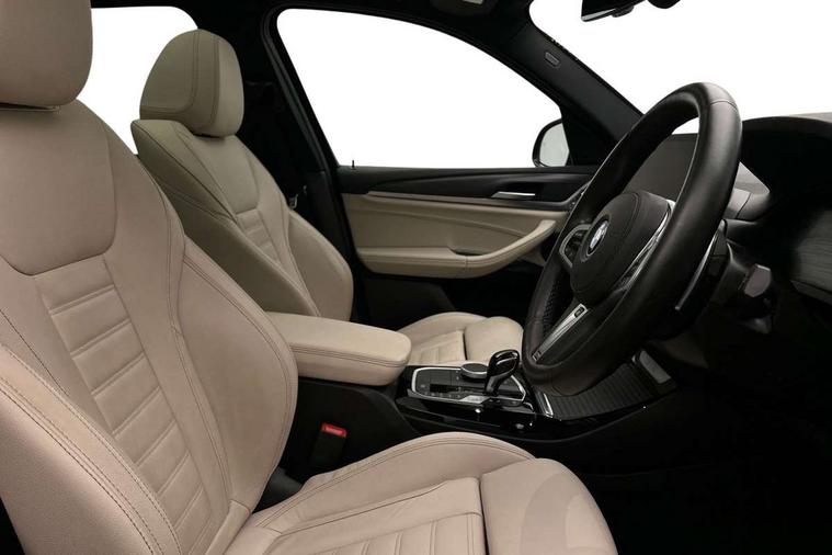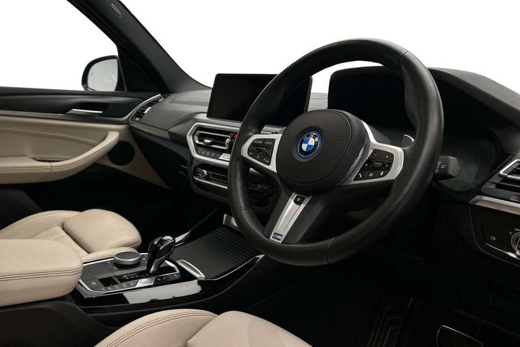 Active Guard, Attentiveness assist, Bluetooth hands free telephone connection with USB audio interface + audio streaming, BMW Live Cockpit Professional nav system including 12.3" instrument display + 12.3 high resolution control display, BMW Online services, BMW Teleservices, Brake pad wear indicator in front and rear, Check Control warning system for monitoring of lights and door/luggage compartment open warning, Condition based service - BMW service history, electronic service booklet, integrated owner's handbook, Connected drive services, Cruise control with brake function + speed limiter, Electric boot lid, Front/rear Parking distance control, iDrive Controller with 8 favourite buttons, Instrument cluster with speedometer with mph readout, tachometer, fuel gauge and oil temperature gauge, Lights on warning by audio warning signal when ignition is switched off, Oil sensor for level and grade, warning by check control system, On board computer - average speed+fuel consumption, service interval, clock/date, odometer/trip meter, outside temperature display and ice warning, Optimum shift indicator, Personal Profile - automatic lock when driving away selectable, Stop/start system, Variable sports power steering, Charging cable - Mode 2, Drive performance control with ECO PRO comfort + sport mode, eDrive exterior sound, Incorrect fuelling protection, Multi-link rear suspension, Performance Control, Sport automatic transmission with gearshift paddles, BMW professional radio/CD/MP3, DAB tuner, HiFi loudspeaker audio system, Acoustic glazing, Automatic windscreen wipers and automatic headlight, Black finish on B pillars, Body colour door handles, Body colour electric adjust heated aspherical door mirrors, Body colour roof mouldings, Body coloured bumpers, Direction indicator, side repeaters, integrated in exterior mirrors, Dynamic brake lights, Exhaust tailpipes - dual, round, split left and right with chrome finisher, Fingertip control / anti-trap function on electric window, Folding wing mirrors with auto dimming, Follow me home headlights, Front and rear bumper system with replaceable deformation elements, Front and rear electric windows, Gloss chrome tailpipes finishers, Green tinted heat insulating glass, Heated windscreen washer jets, High beam assistant, High gloss black shadow line roof rails, High gloss shadowline exterior trim in decorative moulding side frame/recess cover/guide rail/B, C pillars/mirror frame and triangle with mirror base, High level 3rd brake light incorporating LED Technology, Interior rear view electrochromatic mirror with automatic anti dazzle function, LED tail lights, Lightweight engineering, M aerodynamic bodystyling, Model designation, Rear side wing doors, Rear wing door, Rear wiper, Shark fin antenna, Side exterior M designation badges, Visible VIN plate, Welcome lighting, Windscreen wipers with adjustable interval, 12V power socket in front centre console, 3 rear headrests, 3 zone automatic air conditioning, 4 lashing points to secure luggage, 40:20:40 split folding rear seat with loading system, 5 seats, Ambient lighting, Anthracite headlining, Automatic interior light when door is opened/ignition switched off or via remote key, Foldable storage floor with compartment, Four grab handles integrated in roof lining, Front and rear bottle holders integrated into door trim storage compartments, Front and rear side armrests integrated into door trim, Front centre armrest with storage compartment, Front footwell lights, Front head restraints, Front sports seats, Front/rear courtesy lights with soft on/off dimming, Front/rear reading lights, Heated front seats, Isofix rear child seat preparation, Leather gear knob, Luggage area underfloor compartment, Luggage compartment lighting, M sport leather steering wheel, Multifunction steering wheel, Parcel shelf removeable and storable under boot floor, Reach and rake adjustable steering column, Rear centre armrest with 2 cupholders, Removable / retractable luggage cover, Seat backrest width adjustment, Slope adjustable rear seats, Storage compartment in rear centre console and front/rear door trims, Sun visors with vanity mirrors and ticket pocket, Toolkit located in luggage compartment, Two front cupholders with removable oddments tray/lid, Vernasca leather upholstery, Connected pro pack - X3, Driving assistant pack - X3, ADB - Automatic Differential Brake, Anti-lock braking system (ABS) with brake assist, Automatic Stability Control (ASC), Battery safety cut-off, BMW emergency call, Brake drying, Brake energy regeneration, Braking pre-tensioning, Child locks on rear doors, Cornering brake control (CBC), Crash Sensor - activation of central locking release, hazard warning light and interior lighting, Deactivation of fuel pump in the event of a crash, Driver and front passenger front and side airbags with passenger deactivation and ITS front and rear head airbags, DSC+, Dynamic brake control, Dynamic Traction Control - DTC, Electromechanical parking brake, Hill descent control, Hill start assist, Seatbelt security check for front seats, Side impact protection, Three point seatbelts to all seats with front and outer rear pyrotechnic belt tensioners and seat belt force limiters, Two tone horn, Tyre pressure sensor, Ventilated front and rear disc brakes, Warning triangle and first aid kit, Central locking switch for all doors, fuel filler cap and luggage compartment, Electronic engine immobiliser, Locking wheel nuts, Remote control including two integrated key - one button for open/close all lockable content, windows and separate button for open luggage compartment, Remote control Thatcham category 1 alarm, Start/stop button with Comfort Go keyless engine start and auto Start/stop deactivation button, Low rolling resistance tyres,