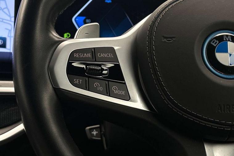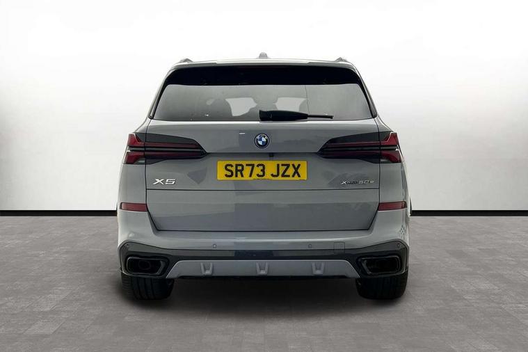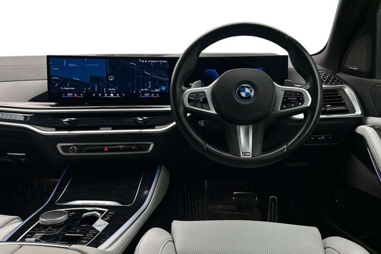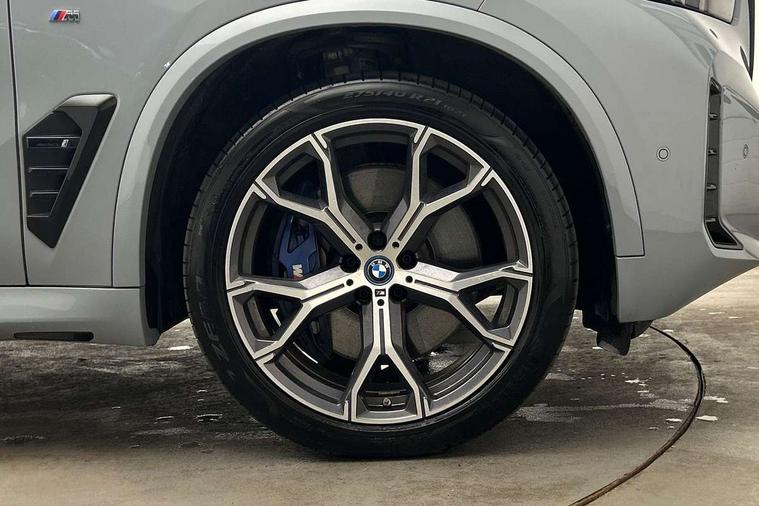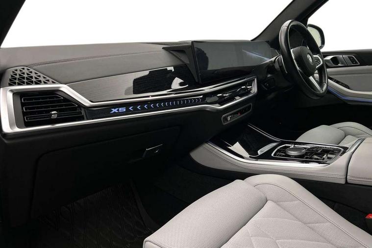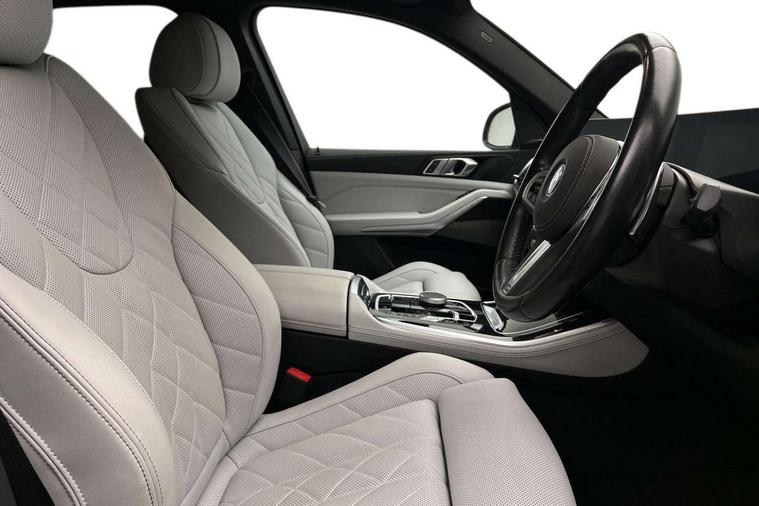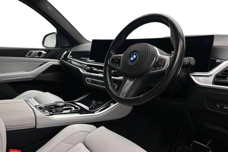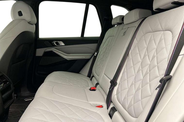 Attentiveness assist, Automatic tailgate operation, BMW ConnectedDrive online services, BMW live cockpit + with curved 12.3 instrument cluster/14.9 central display, nav/Tuner with diversity reception, RDS/4GLTE/remote software upgrade, BMW Teleservices, Condition based service, Cruise control with brake assist, eCall emergency call system, Enhanced bluetooth with wireless charging, Integrated owner's handbook, PAS, Speed limiter, Wi-Fi hotspot, Adaptive 2-axle Front and rear air suspension, Drive performance control with ECO PRO comfort + sport mode, Eight speed steptronic sport automatic transmission and gearshift paddles on the steering wheel, Flexible charger (Mode 2), Hi-Fi loudspeaker system, Adaptive LED Headlights, Front and rear electric windows, High beam assistant, High gloss black shadow line roof rails, LED daytime running lights, Rear side wing doors, Third brake light in rear spoiler, Variable intermittent rear wash/wipe, 12V - Power sockets with 2x centre console and 1x luggage compartment, 3 seat bench in 2nd row, Foldable rear centre armrest with 2 cupholders and storage compartment, Front and rear side armrest integrated into door trim, Headrests for all seats, Luggage compartment separating net, Single front passenger seat, Three spoke sport M leather steering wheel, Velour floormats, Ambient light interior pack - X5, Driving assistant pack with radar based driver assistance system - X5, Expanded exterior mirror pack - X5/X5 M, M aerodynamics pack - X5, 3 rear seatbelts, Acoustic protection for pedestrians, Active protection, Airbags - driver/front passenger, rear and side, first and second row seats head airbags, front passenger seat airbag deactivation + knee airbag, Anti-lock braking system (ABS), Automatic Stability Control (ASC), Brake energy regeneration, Cornering brake control (CBC), Crash sensor activating central locking release, hazard warning lights, fuel cut off, interior lighting + activation of safety battery terminal clamp, DSC - Dynamic Stability Control, Dynamic Traction Control - DTC, Electromechanical parking brake with automatic drive away release and auto hold function, Electronic brake force distribution, Hill start assistant, M Sport blue painted brake calipers with 'M' designation, Mechanical child proof lock on rear doors, Tyre pressure monitoring system, Tyre pressure sensors, Ventilated front and rear disc brakes, Warning triangle and first aid kit, Closing system with central locking, Comfort access system, Locking wheel bolts, Sensatec instrument panel,