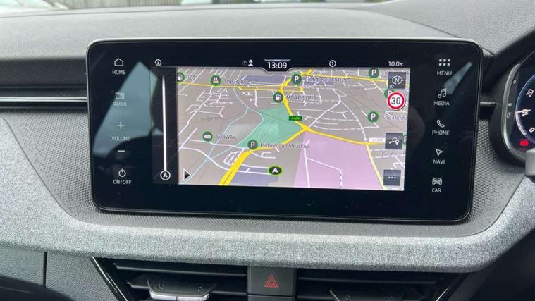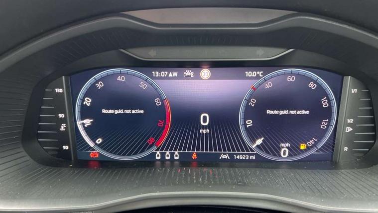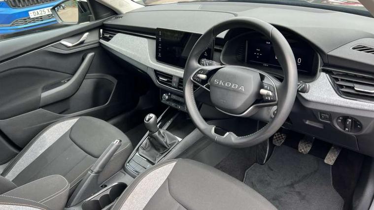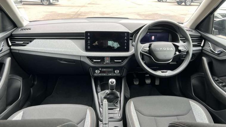 Advanced driver attention and drowsiness monitor, Bluetooth system, E-call, Front assist system, PAS, Rear parking sensors, Rear view camera, Service indicator, Speed limiter, Traffic sign recognition, Virtual cockpit with 10.25" display, Voice control system, Wireless smartlink, 4 USB C ports, 8 Speakers, 9.2" Skoda navigation display, DAB Digital radio, Auto dimming rear view mirror, Automatic headlight control with coming home and leaving home feature, Black roof rails, Body colour bumpers, Body colour door mirrors and handles, Chrome grille surround, Front and rear electric windows, Full LED headlights, Heated rear window, LED brake lights, LED daytime running lights, LED front turning lights, LED high beam, LED low beam, LED third brake light, Rear LED fog light, Rear side wing doors, Rear wiper, Ticket holder inside windscreen, 12V socket in luggage compartment, 3 seat bench in 2nd row, Black hotstamping, Cargo elements, Chrome inner door handles, Driver and passenger sun visors with vanity mirror, Dual zone climate control, Front and rear roof lights, Front centre armrest, Front head restraints, Glove compartment with illumination, Height adjustable driver seat, Height adjustable front passenger seat, Ice scraper, Inner circulation control with pollen filter, ISOFIX on front passenger seat, Isofix preparation for back seats, Krepp recycled decor inserts, Leather gearknob and handbrake lever, Loft cloth upholstery, Manual lumbar support for front seats, Net package and top tether hooks in boot space, Net under rear shelf, Overhead glasses storage compartment, Pocket on the back of both front seats include mobile phone pockets, Rake/reach adjustable steering wheel, Reading lights, Satin black door inserts, Single front passenger seat, Textile floor mats, Third rear headrest, Top tether for front passenger seat, Umbrella in driver's door, 3x3 point rear seatbelts, Airbags - driver and front passenger, Disc brakes, ESP, Extended and predictive pedestrian/cyclist protection, Front passenger airbag deactivation switch, Front side airbags with curtain airbags, Hill hold control, Manual leather parking brake, Manual rear child locks, One tone horn, Seatbelt reminder for driver an co-driver, Traction control, Tyre pressure monitor, Anti-theft alarm system with interior monitoring, backup horn, towing protection and remote central locking with SAFE system, Anti-theft wheel bolts, Electronic engine immobilizer,