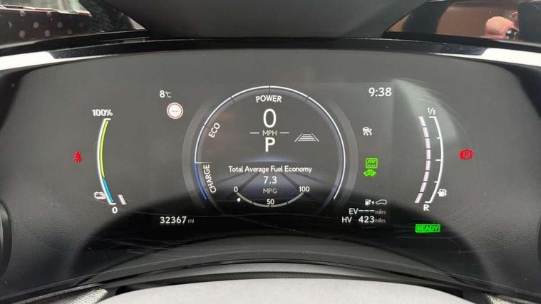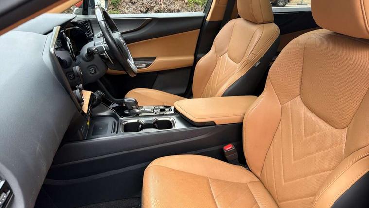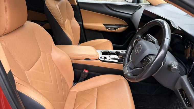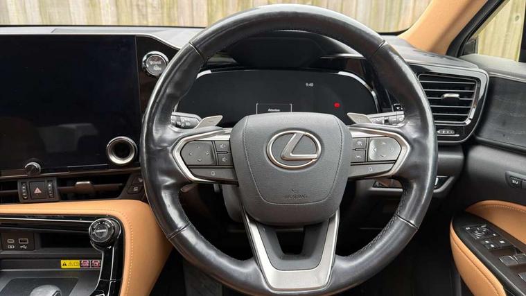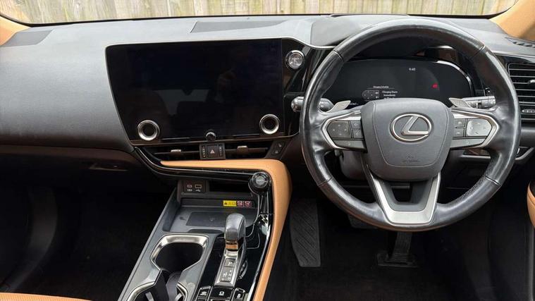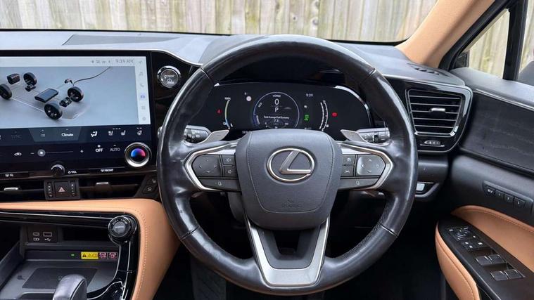 360 degree panoramic view monitor, 4 driving modes EV/Eco/Normal/Sport, 7" display in instrument binnacle, Blind spot monitoring with rear cross traffic alert, Bluetooth telephone connectivity, eCall emergency system, Electric speed sensitive power steering, Extended lexus safety+ system includes front cross traffic alert and lane change assist, Fully automated parking, Head up Display, Intelligent parking sensors - 4 front and 4 rear, Lane change flasher function, Lexus link connect - Cloud based navigation, cloud based voice assistant, always online, 14" HD touchscreen, embedded nav and faster CPU, Push button starter, Reversing camera with back guidelines, Service interval indicator, Tazuna cockpit with 7" improved meters display, 10" HUD and capacitive touch steering wheel switches, Wireless Apple CarPlay and wired Android Auto, Wireless Smartphone charger, 6.6 kW onboard charger, All Wheel Drive (AWD), Hybrid automatic transmission, Vehicle Dynamics Integrated Management (VDIM), Vehicle Stability Control (VSC), 10 speakers, 4 USB ports - 2 front, one USB C, 2 rear USB C, DAB Digital radio, 4 eye LED headlight with adaptive high beam, Automatic headlights, Digital rear view mirror, Double hidden exhaust pipes, Electric sunroof, Front and rear one touch power windows, with anti-jam protection, Headlight cleaners, Heated, auto-folding, auto-dimming outside mirrors with reverse tilt function and turn indicators, Illuminated door handles with puddle light, LED brake lights and rear lights with emergency brake signal, LED cornering lights, LED daytime running lights, LED front fog lights, LED Indicators, Power back door with kick sensor, Privacy glass, rear doors and tailgate, Rain sensor windscreen wipers, Rear side wing doors, Rear wiper, 12V accessory port centre console and luggage compartment, 2 cupholders in front centre console, 2 x fixed shopping bag hooks in boot, 2 x sun visors with vanity mirror and lamp, 3 seat bench in 2nd row, 4 way electrical lumbar adjustment for driver, 4 x tie down hooks in the boot, 60/40 split folding rear seat, 8 way driver/passenger electrically adjustable front seats, Adjustable rear seat backrest, Card holder installed in driver and passengers sun visors, Centre armrest with storage box, Door courtesy lights, Driver seat memory function, Dual zone climate control air conditioning system with humidity sensor, Front and rear head restraints, Front and rear textile carpet mats, Front passenger seat, Heated and ventilated front seats, Heated rear seats, Heated steering wheel, Leather gear lever, LED ambient lighting, LED interior illumination, Power adjustable leather steering wheel with paddle shifts, Rear centre armrest with 2 cupholders, Smooth leather upholstery, Whiplash Injury Lessening (WIL) feature (active headrest) for seats, 2 x Isofix child rear seat restraints, 3 point ELR front seatbelts with pretensioners, 3x3 point rear seat belts, ABS, Adjustable seat belt anchor points, Driver and front passenger 2 stage airbag, Driver/front passenger side airbags, Drivers knee airbag, E-Latch with safe exit assist, EBD + Brake Assist, ECB (Electronically Controlled Brake System), Electronic parking brake, Front and rear curtain shield airbags, Front center airbag, Front passenger seat cushion airbag, Hill assist control, Lexus safety system - dynamic radar cruise control, pre collision system day and night, lane tracing assist, road sign, OTA, Manual rear child locks, Passenger airbag cut-off device, Traction control, Tyre pressure warning, 2 x remote key fobs, Anti-theft system with alarm, intrusion sensor, glass breakage sensor, tilt sensor and engine immobiliser, Locking wheel nuts, Smart card key, Smart keyless entry, Speed sensitive auto door locking, Two motion door lock with double lock, VIN Window etching, Sumi blackwood inlay,
