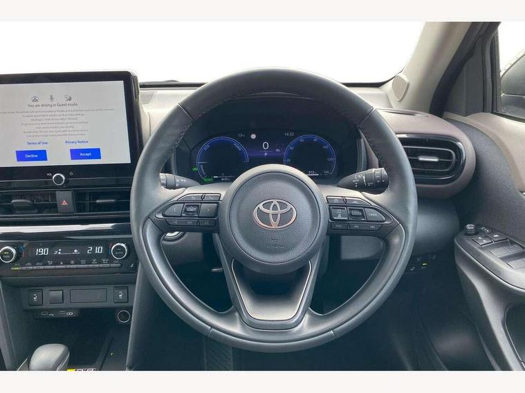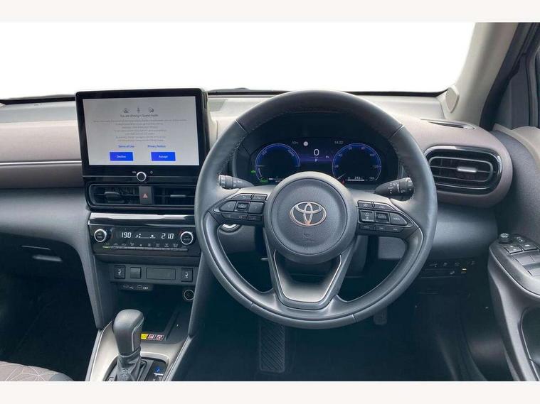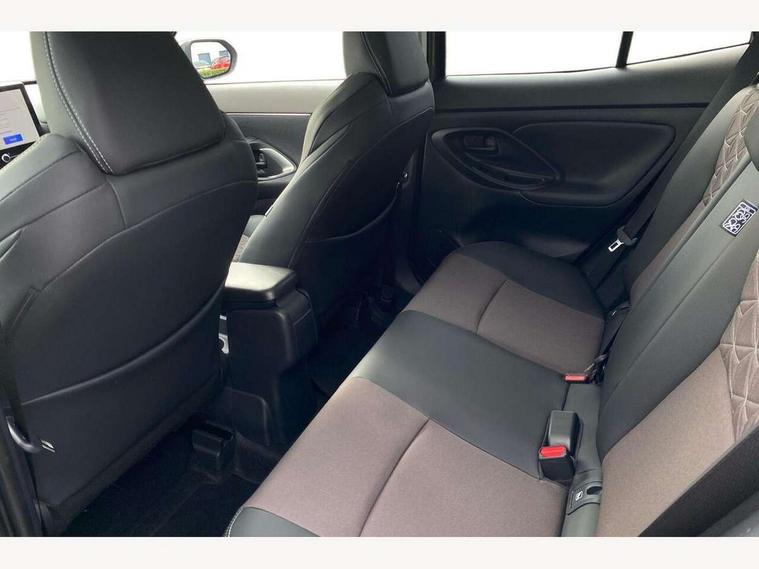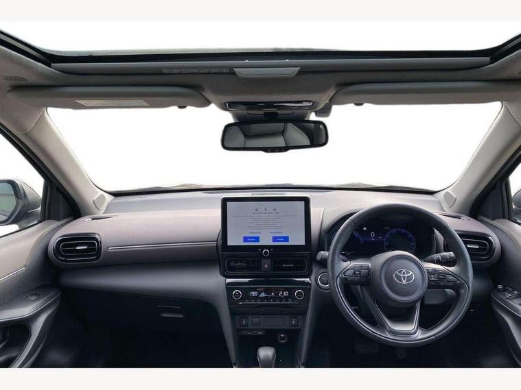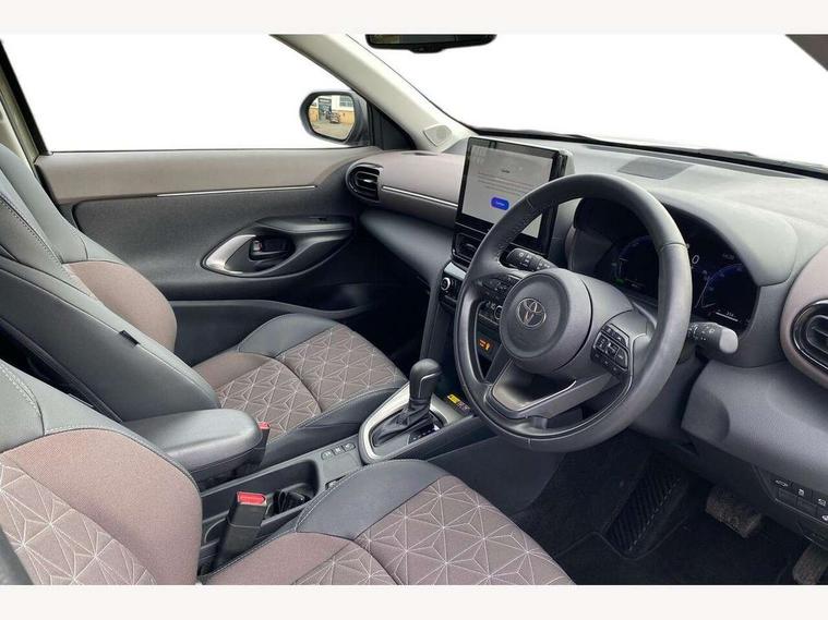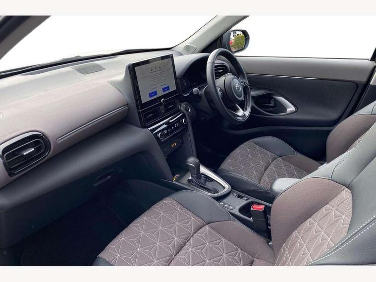 10.5" Multimedia display screen, 10.5" Toyota smart connect+ with navi multimedia system with wireless Smartphone integration incl Apple CarPlay, 360 degree panoramic view monitor, 7" Multi information display screen, Adaptive cruise control, multi info switches on steering wheel, Adjustable speed limiter, Advanced parking assist, Blind spot monitoring, Bluetooth connectivity, Color multi-information display, Digital speedometer, Digital tachometer, Drive mode selector, Driver attention alert system, Dynamic guide lines on reversing camera, eCall emergency system, Electric power steering, Emergency driving stop system, Full range intelligent adaptive cruise control, Hybrid system indicator, Intelligent front and rear parking sensors with clearance sonar and automatic braking, Intersection turn assist, Key reminder warning, Lane change assist, Lane trace assist, My T Connected services, Power tailgate, Pre-collision system enhanced with emergency steering assist, Rear cross traffic alert, Remote boot door release in cabin, Road sign assist - RSA, Safe exit assist, Tailgate, Telephone switch on steering wheel, Wireless Mobile Phone Charger, Steering assisted vehicle stability control, 6 speakers, DAB Digital radio, Front USB Type-C connector, Front USB-C device charger, Acoustic windscreen glass, Anti-jam protection on power windows, Auto dimming rear view mirror, Auto high beam [AHB] with on/off switch, Auto intermittent windscreen wipers, Automatic headlights, Automatic headlights cut-off, Black door moulding, Black lower front grille, Black protection moulding on side doors, Black roof rails, Black wheel arch mouldings, Body colour door handles, Body colour front bumper, Body colour rear bumper, Electric adjustable heated door mirrors, Follow me home headlights, Front and rear electric windows with auto up/down function, Gloss black upper front grille, Headlight cut off reminder, Indicators integrated on door mirrors, Intermittent rear wiper, Kick activated power back door, LED 3rd brake light, LED daytime running lights guide, LED front fog lights, LED front light guide, LED Indicators, LED projector headlights, LED rear lights with sequential indicators, Manual headlight levelling, Meshed shape upper front grille, Noise reduction layer on windscreen, Pre wiring for towing hook, Privacy glass, Rain sensor, Rear roof spoiler, Rear side wing doors, Rear window defogger, Shark fin antenna, 12v power outlet - front, 12V power point in boot, 2x Rear coat hooks, 3 seat bench in 2nd row, 3 spoke leather steering wheel, 40/60 split deckboard, 40:20:40 split folding rear bench seat, Adjustable rear headrests, Adjustable speed limiter switch on steering wheel, Boot light, Central armrest, Driver and front passenger personal lights, Driver and front passenger Whiplash injury Lesseing seats, Driver and passenger seatback pockets, Dual zone automatic air conditioning, Fabric door trim, Front console box, Front cup holders, Front door pockets, Front head restraints, Front sport seats, Front/rear assist grips, Gear shift indicator, Grey roof lining, Heated driver and passenger seats, Heated steering wheel, Height adjustable driver's seat, Height adjustable front passenger seat, Hooks for luggage holding belts, ISOFIX child restraint system, Lane departure alert switch on steering control, Leather gearshift, LED centre room light, Light on driver and passenger sun visor, Manual telescopic and tilting steering wheel, Mirror on driver and passenger sun visor, Nanoe-X air purifier, Partial synthetic leather upholstery, Pollen air filter, Power adjustable lumbar support on driver seat, Rear cup holders, Rear door pockets, Rear head restraints, Remote air-conditioning system, Single compartment glovebox, Single front passenger seat, Soft tonneau cover, Storage box under boot floor, Voice recognition switch on steering wheel, White ambient lighting in centre console, White ambient lighting in footwell, White ambient lighting on front doors, Yaris cross floor mats, Tech pack - Yaris Cross, 3x3 point rear seat belts, ABS+EBD+Brake assist, Downhill Assist Control (DAC), Driver and passenger central airbags, Driver and passenger front airbags, Driver and passenger side airbags, Electronic parking brake, Emergency brake light system (EBS), Front seat belt reminder, Hill start assist control (HAC), Passenger airbag on/off switch, Pre-collision system with pedestrian and cyclist detection, Rear door child safety locks, Rear passenger side airbags, Rear seat belt reminder, Traction control, Tyre pressure warning system, Immobiliser, Intrusion alarm, Keyless smart entry with push button start, Power door locks, Power passenger window lock, Remote door lock, Gloss black side air vent surrounds, Tyre repair kit,