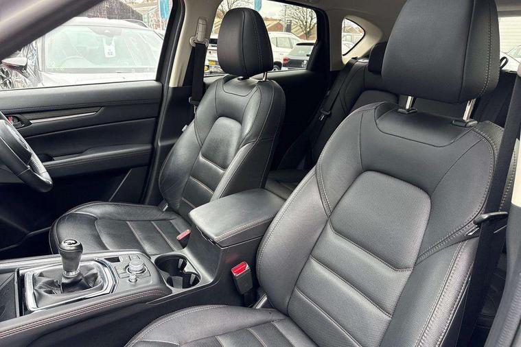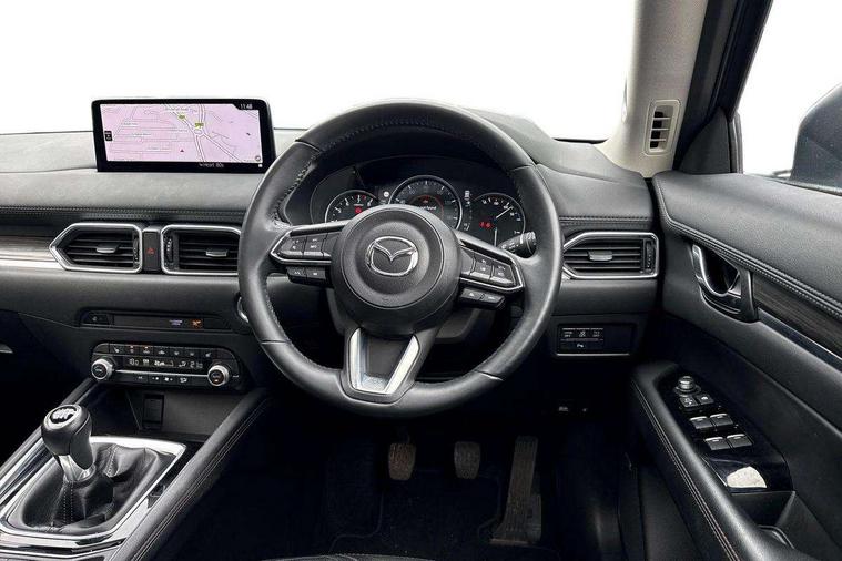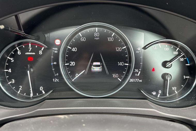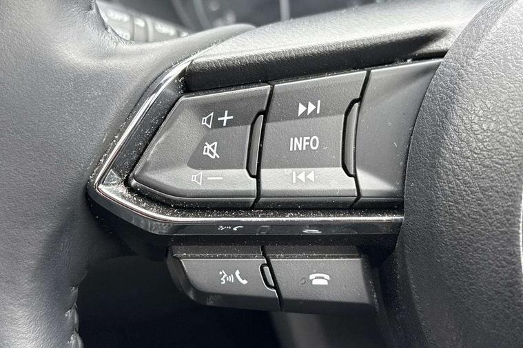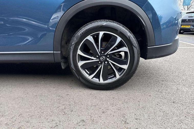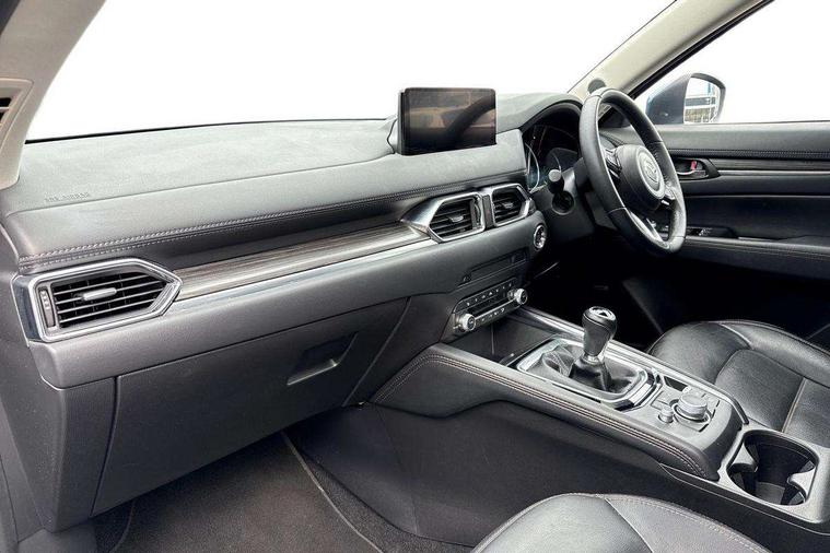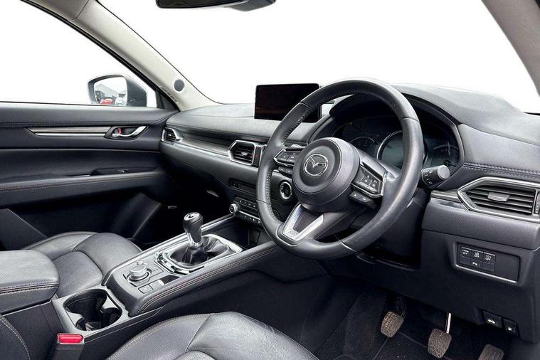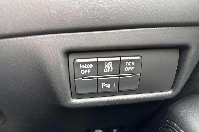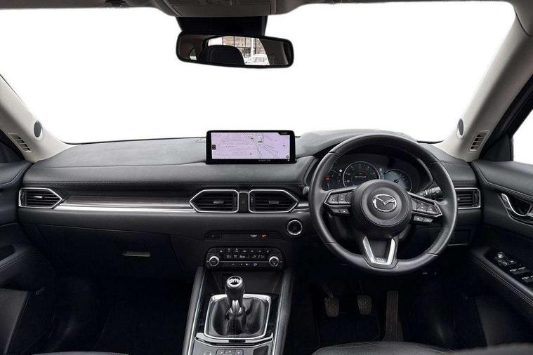 10.25" display with Mazda Connect infotainment, 7" colour TFT display, Advanced blind spot monitoring, Apple car play/Android Auto, Bluetooth connectivity with voice control, Collision prevention assist, Connected services, Cruising Traffic Support, Electric power steering, Emergency stop signalling system, Engine start/stop button, Forward collision warning, Front and rear parking sensors, Integrated navigation system, Intelligent speed assist, Lane departure warning system, Lane keep assist, Qi wireless phone charging, Radar cruise control, Rear cross traffic alert, Reversing camera, Service indicator, Traffic sign recognition (TSR), Trip computer, Windscreen projected colour active driving display (HUD) with memory, Cylinder Deactivation, i-stop, 2 USB sockets in rear, 2x USB sockets in front, AM/FM radio, Bluetooth audio streaming, Bose premium sound system with 10 speakers, DAB Digital radio, Multimedia Commander including separate volume dial, Steering wheel mounted audio controls, Adaptive front lighting system, Auto dimming rear view mirror, Automatic headlights, Black inlay dashboard panel, Body colour door mirrors, Body colour roof spoiler, Body coloured front and rear black lower bumper mouldings, Bright finish signature wing, Coming/leaving home lighting function, Door mirror integrated indicators, Dual chrome tailpipes, Dusk sensitive headlamps, Electric front/rear windows with one touch auto up/down, Front grille in gloss black finish, Gloss black B and C pillars garnish, High beam assist, Intermittent rear wash/wipe, LED auto levelling, LED daytime running lights, LED front fog lights, LED Headlights, LED third brake light, Power folding and heated door mirrors, Power tilt/slide sunroof, Privacy glass (rear side windows only), Rain sensing front wipers, Rear side wing doors, Satin black side mouldings, Scuff plates, Shark fin antenna, Signature LED rear combination lights, Vinyl with wood grain metal inlay door trim panel, Windscreen wiper de-icer, 12v electrical power outlet, 3 seat bench in 2nd row, 3 stage heated front seats, 40:20:40 Karakuri fold-flat seat system, 6 way electric adjustable passenger seat, 8 way electric driver seat with lumbar support + memory, Cargo room flat floor board with waterproof undertray, Driver seat power slide, recline and height adjustment, Driver, Front passenger and two rear grab handles with coat hooks, Driver/passenger front seatback pockets, Driver/passenger sunvisors + illuminated vanity mirrors (drivers with ticket holder), Dual zone climate control, Folding centre armrest with 2 cup holders, Front and rear door pockets, Front centre storage with two cupholders, Front passenger seat power slide, recline and height adjustment, Gear shift indicator, Heated steering wheel, Humidity sensor, Illuminated glovebox, Interior dome light with integral spotlight, ISOFIX child seat anchorage points attached on outer rear seats, Karakuri tonneau cover, Leather upholstery, Leather wrapped steering wheel and gear knob, Light roof lining, Luggage compartment LED lighting, Luggage compartment power outlet, Rear air vents, Rear headrests, Rear seat recline, Roof mounted sunglasses holder, Single front passenger seat, Three height adjustable head restraints, Tilt/height adjustable steering wheel, White interior LED illumination lighting, 3 point front seatbelts with pre-tensioners, 3 rear 3 point seatbelts, ABS, Advanced Smart City Brake Support - SCBS, Child locks on rear doors, Driver and front passenger side airbags, DSTC-Dynamic Stability and Traction Control, Dual front airbags, Electronic brake force distribution, Electronic parking brake with auto hold, ESP, Front and rear curtain airbags, Front passenger airbag deactivation, G-Vectoring control, Hill hold assist, Seatbelt reminder front and rear, Single stage passenger airbags, Smart brake support with forward obstruction warning, Tyre pressure monitoring system, Automatic door locking when moving off, Deadlock, Immobiliser, Power door locks, Remote central locking, Smart keyless entry, Thatcham Cat.1 alarm, 19" diamond cut black alloy wheels, Tyre repair kit,