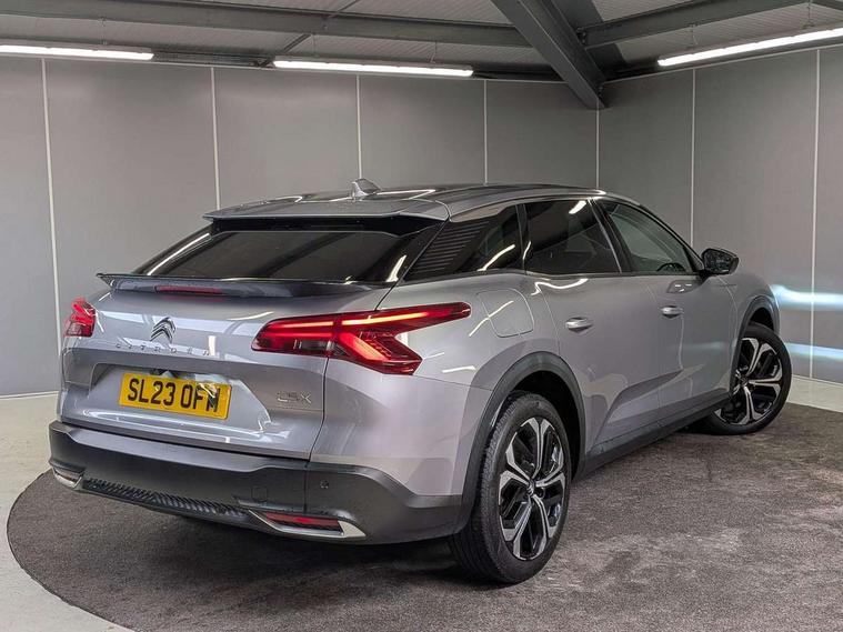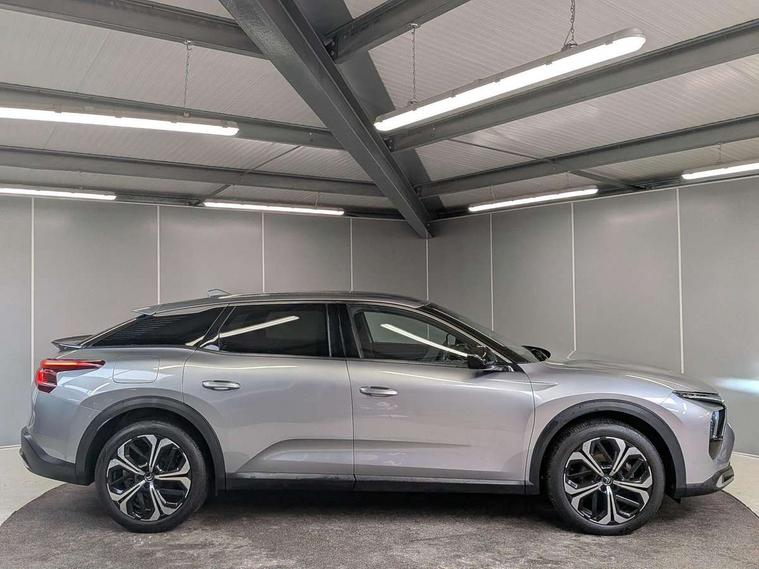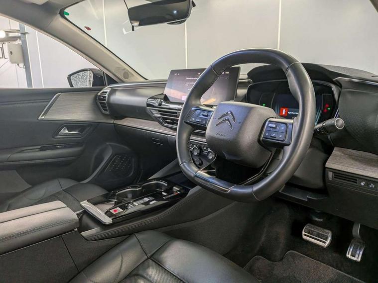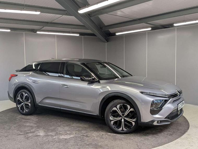 12" Central touch screen with separate heating and ventilation controls (with ADAS and Home buttons), 360 degree camera, 7'' Digital instrument cluster with smoked glass, 10 + 2 indicator lights and ambiance backlighting, Citroen connect box with emergency and assistance system, Coffee Break Alert, Connected 3D navigation, Driver attention alert system, Driver information panel with lighting fault indicator, E-call, Electric variable power assisted steering, Extended blind spot detection, Extended traffic sign recognition, Forward collision warning, Front and rear parking sensors, Highway Integrated Assist (Adaptive Cruise Control with Stop & Go function and Lane Positioning Assist), In-crash braking, Intelligent speed assist, Lane change assistant, Lane keep assist, Multi window screen, MyCitroën Drive Plus (incorporating electronic user guide), Outside temperature display, Radar Controlled Active Safety Brake (with enhanced pedestrian and cyclist pickup and able to function at night), Rear cross traffic alert, Remote functions: horn and lighting, lock/unlock doors, vehicle status, Speed limit recognition and recommendation, Visiopark, Voice recognition, Wireless mirror screen, Wireless smartphone charging, Citroen Advanced Comfort suspension with double (front & rear) progressive hydraulic cushions, 2 front USB plugs : 1 USB type C charge + data (front of centre console), 1 USB type C charge only (under centre front armrest), able to charge IPAD, 2 rear USB plugs charging only (able to charge IPAD), Bluetooth streaming, DAB Digital radio, A pillar in black, Acoustic insulated and tinted windscreen with Head Up Display (eHUD), Automatic illumination of headlamps when unlocking, Automatic rain-sensitive flat blade wipers with integrated wash function, Automatic welcome and follow me home lighting, Automatically illuminating LED headlamps with automatic High Beam Assist (with driver adjustment controls in passenger compartment), Body coloured door handles, Chrome Citroën chevrons integrated into front grille and extending outward into front light signature, Electronic, heated, black folding door mirrors with integrated LED indicator, LED approach lighting, Extra tinted glass in rear windows and tailgate, Extra tinted rear quarter panel windows with animation in glass, Extra tinted, heated rear window, Frameless electrochrome interior rear view mirror, Front and rear electric windows, Gloss black Citroën chevrons with chrome surround, chrome Citroën lettering and C5 X badging on rear tailgate, High level LED brake light, LED daytime running lights, LED fog lights with static cornering function integrated into front bumper apron, LED front indicators, LED rear lights, LED rear number plate lights, Motorised rear tailgate with hands free access (activated by key or via button on dashboard), Rear side wing doors, Rear wiper, Remote 4-window opening/closing with plip, Satin chrome trim on rear bumper, 12V power socket in front centre console, 12V socket in boot, 3 rear headrests, 3 seat bench in 2nd row, Aluminium door sills, Automatic dual zone air-conditioning with Soft/Normal/Fast variable settings, A/C max function and single- zone function (through touch screen), Black leather-effect central armrest with overstitching, Black leather-effect front and rear door panel inserts, Black tie down rings for secure load storage, Brushed aluminium effect pedals, Cabin air filter, Carpeted boot with low-friction loading floor rails, Courtesy lighting: front roof light, rear roof light, central console lighting, LED illuminated glovebox and LED boot light, Dashboard mounted black, backlit, chrome-ringed start/stop button, Driver and front passenger sun visors with mirrors and LED lighting, Driver's footrest, e-Toggle automatic gear selector switch on centre-console, Front and rear door pockets, Front and rear floor mats, Front and rear passenger storage areas in central console, Front headrests, Front seatback storage pockets, Heated electric driver and front passenger seat, Height and reach adjustable steering wheel, High efficiency air filter, Illuminated passenger glovebox, Interior LED welcome lighting - door handles, front foot wells, driver instrument panel, ISOFIX points in outer rear seats with top tether anchorage points, Magic Handles - allows rear seats to be folded flat from the boot compartment, Mistral carpet with reinforced driver's foot well, Multifunction heated, grained leather steering wheel with paddle shifters, driving assistance and infotainment control functions, Rear air vents with independent opening/closing and left and right airflow settings for rear seat passengers, Rear armrest storage and cup holders, Roll up awning fitted to tailgate, Satin chrome dashboard strip and satin chrome decor on bottom of door panels, Satin chrome highlighted air vents and steering wheel, Single front passenger seat, Smartphone storage in front of (front) centre armrest, Stainless steel boot sill, Storage area for emergency safety triangle/first-aid kit, Storage under central armrest, 2 tone horn, ABS, Curtain airbags, Driver and front passenger airbags, Electric parking brake, Electronic Stability Programme (ESP), Five 3 point inertia reel seat belts, Front inertia reel seatbelt with pre-tensioners and force limiters, Front passenger airbag deactivation, Hill start assist function, Intelligent Traction Control system, Lateral airbags, Pedestrian protection active bonnet, Power child locks on rear doors, Tyre underinflation detection, Unfastened seatbelt visual warning system on all seats + audible warning for driver/front passenger (front passenger presence detection), Deadlocking system, Locking wheel nuts, Perimetric and volumetric anti theft alarm, Proximity keyless entry (doors, boot and fuel filler flap) and start, Dashboard and door panels décor - wood film and grain, 19'' Aero-X Diamond Cut Alloys with Onyx black paint & Onyx black aero inserts,
