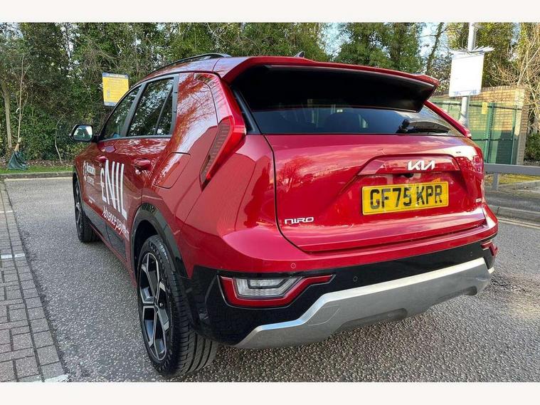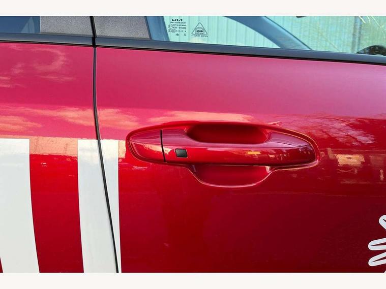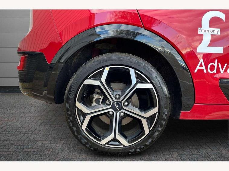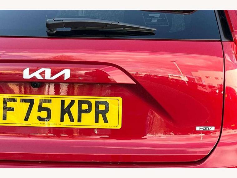 10.25" touchscreen satellite navigation, 4.2" driver display screen, Apple car play/Android Auto, Blind spot collision avoidance assist, Bluetooth connection, Drive mode select, E-call, Emergency stop signalling system, Forward Collision-Avoidance Assist (FCA) 1.5 - City/Pedestrian/Cyclist/Junction turning, Front parking sensors, Highway Driving Assist (HDA), Intelligent speed limit assist, Kia connect, Lane Following Assist (LFA), Lane keep assist, Motor driven power steering, Rear cross traffic collision avoidance assist (RCCA), Rear parking sensors, Reversing camera system, Safe exit warning (SEW), Smart cruise control with stop and go functionality, Tailgate, Trip computer with distance/fuel consumption/average speed, Wireless Smartphone charger, 220v AC Inverter, 'Shark fin' mobile antenna, 6 speakers, DAB Digital radio, Steering wheel mounted controls, USB port for connection of a media device, Acoustic windshield, All round electric windows with drivers and front passenger auto up/down and safety function, Auto dimming rear view mirror, Automatic defog system, Automatic headlight control system, Black window surrounds, Body colour bumpers, Body colour door mirrors, Body colour exterior door handles, Electrically adjustable and heated door mirrors with LED turn indicator, Electrically folding door mirrors, Front and rear chrome skid plates, Front fog lights, Gloss black radiator grille with chrome surround, Gloss black wheel arches, Heated rear window, LED daytime running lights, LED Headlights, LED High mounted brake light, LED rear combination lights, Privacy glass - Rear windows and tailgate, Rain sensing front wipers, Rear fog lights, Rear roof spoiler, Rear side wing doors, Rear wiper, Roof rails, Solar glass windscreen, Welcome and follow-me home light functionality, Windscreen Washer Level Warning, 12V socket in front, 12V socket in luggage compartment, 3 seat bench in 2nd row, 60:40 Split folding rear seats, All-round height adjustable headrests, Artificial leather steering wheel, Automatic air conditioning, Centre console cupholder, Centre console with storage box, Chrome coating interior door handles, Cloth / Artificial leather upholstery, Driver's power adjustable seat, Driver/passenger sunvisors with illuminated vanity mirrors, Drivers seat power lumbar support, Front and rear cabin lights, Front and rear door storage, Front cabin, rear & luggage compartment lights, Front passenger 1 x USB-C charging port, Front passenger seat manual adjustments, Glove box, Heated front seats, Heated steering wheel, ISOFIX Child seat top tethers and anchor fixings, Luggage area load cover, Luggage board, Manually adjustable steering column, Paddle shifts, Rear centre armrest with cupholder, Rear passenger 2 x USB-C charging ports, Seatback pocket - driver, Seatback pocket - front passenger, Shift by wire SBW, Single front passenger seat, Ventiliation ducts to rear compartment, 3 point seatbelts on all seats, ABS, Automatic unlocking of doors in case of impact, Curtain and side airbags, Dual shell horn, Electric parking brake with auto hold function, Electronic stability control, Front airbags, Front passenger airbag cut-off switch, Height adjustable front seatbelts, Hill start assist control (HAC), Knee airbags, Seatbelt reminder warning, Traction control, Tyre pressure monitoring system, Customisable automatic door locking, Customisable automatic door unlocking, Deadlocks, Engine Start/Stop Button with Smart Entry System, Locking wheel nuts, Manual child locks, Rear occupant alert, Smart key with motion sensor, Thatcham category 2 security alarm and immobiliser, Visible vehicle identification number, Warranty - 7 Years/ 100, 000 miles, Centre fascia chopped carbon, 18" Alloy wheels, Tyre mobility kit,