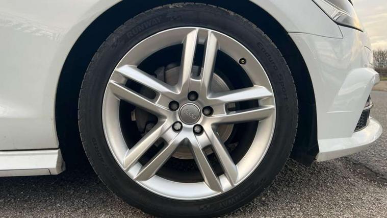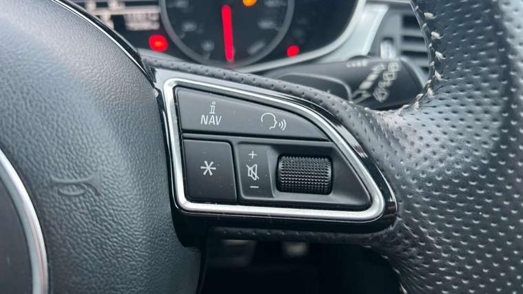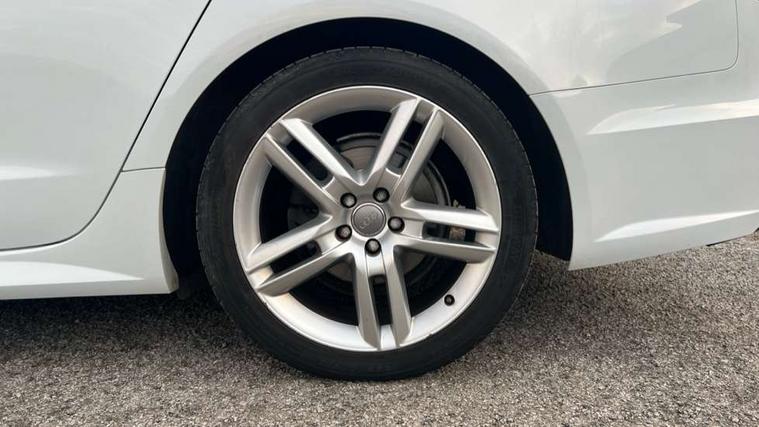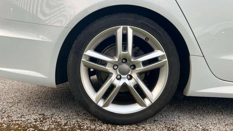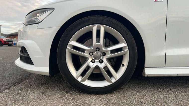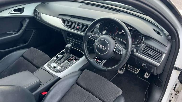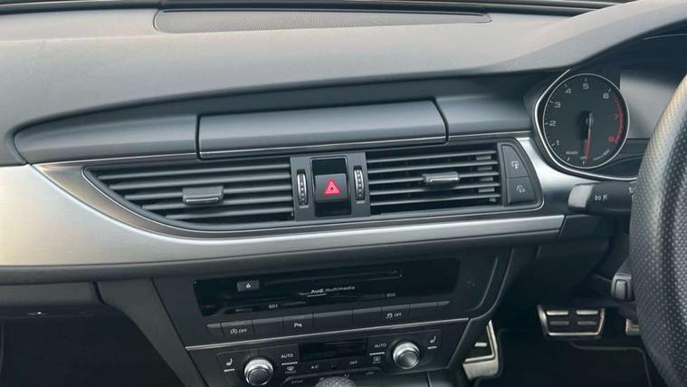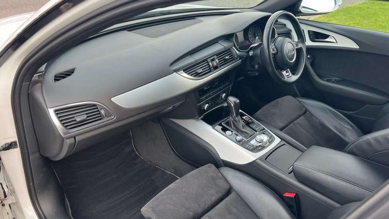 Audi drive select, Audi parking system plus with front and rear sensors, Audible and visual fasten seat belt warning - front and rear, Cruise control, Driver's information system, MMI SD card Navigation, Mobile telephone preparation, PAS, Service interval indicator, Audi music interface, Auxiliary input socket, DAB digital radio module, MMI Radio plus with CD player and bluetooth interface, SD card slot, USB connection, Auto dimming rear view mirror, Automatic headlights + automatic windscreen wipers, Body colour bumpers, Body colour door mirrors and handles, Body colour roof spoiler, Body coloured door mirrors, Electric front/rear windows, Headlight washers, High gloss black finish B pillar, High gloss black triangular aperture at rear door, LED daytime running lights, LED rear lights, Light sensor, Platinum grey front lip spoiler, Rain sensor, Rear wiper, S Line body styling, 12V power in rear centre console, 4 way electric lumbar support for driver and front passenger, 4 zone climate control, Aluminium door sill trims, Black cloth headlining, Door sill trims with S line logo, Double cargo floor, Electric front seats + driver memory, Front centre armrest, Front head restraints, Front/rear floor mats, Height adjustable front seats, Isofix front passenger and rear seat preparation, Jack and tool kit, Perforated leather gearknob, Rear headrests, Split folding rear seat, Non smoking pack - A6, 3 point seatbelts on all seats, ABS/EBD, ASR traction control, Curtain airbags, Driver and passenger airbags, Driver/front passenger side airbags, Electromechanical parking brake, Electronic stability control, Front passenger airbag deactivation, Hill hold assist, Tyre pressure monitoring system, Warning triangle and first aid kit, Anti theft alarm, Anti-theft wheel bolts, Immobiliser, Keyless Start, Remote central locking, Alcantara door trim, Space saver spare wheel,