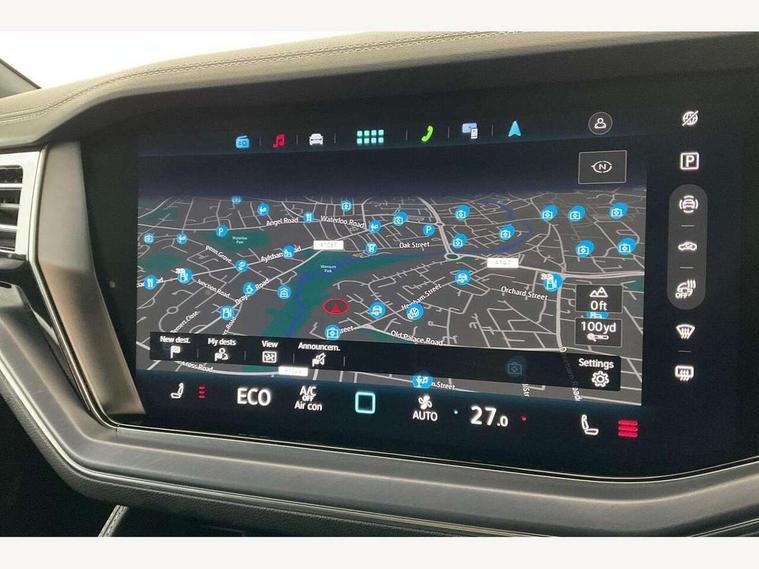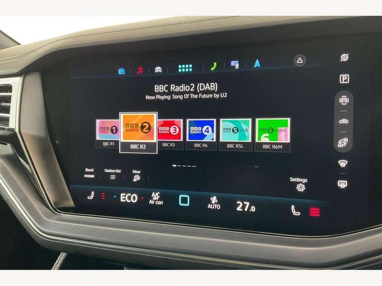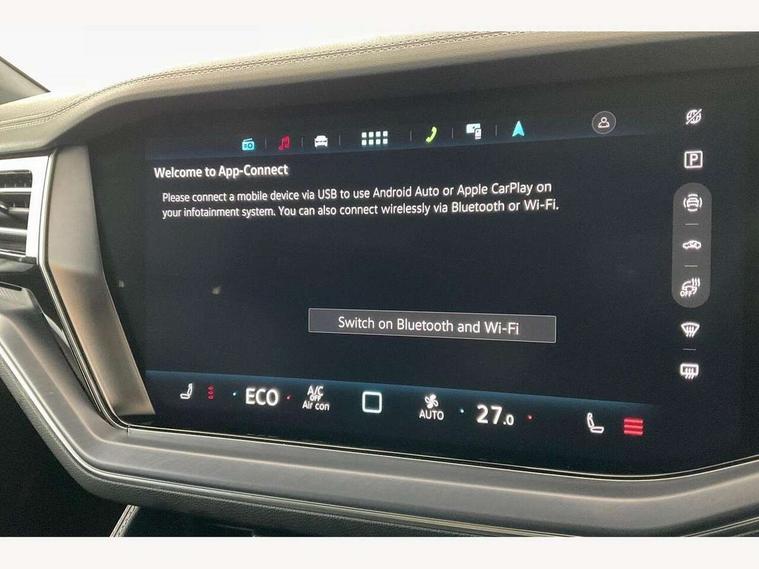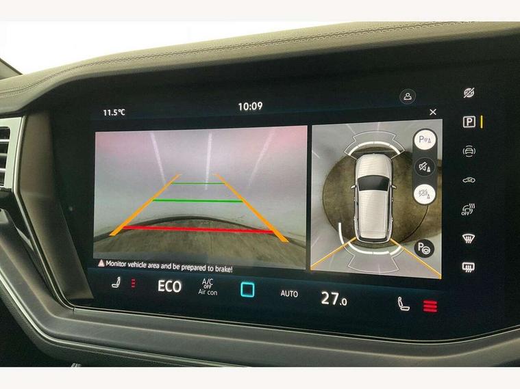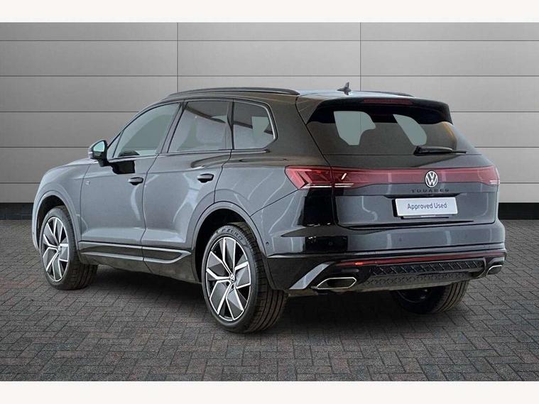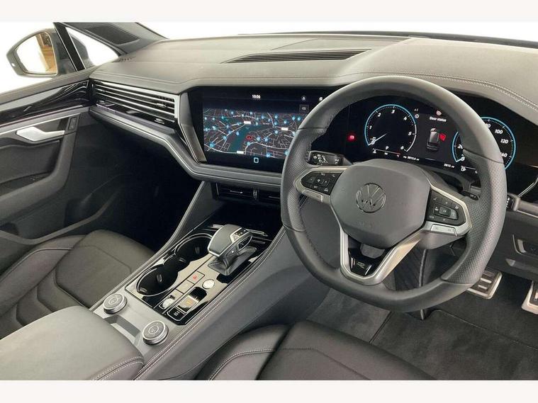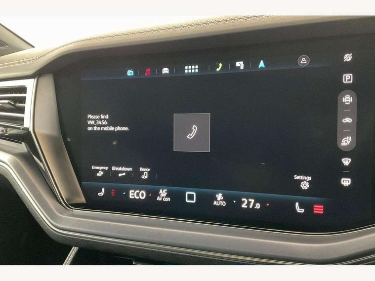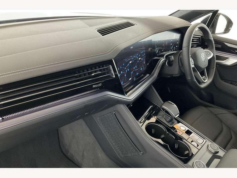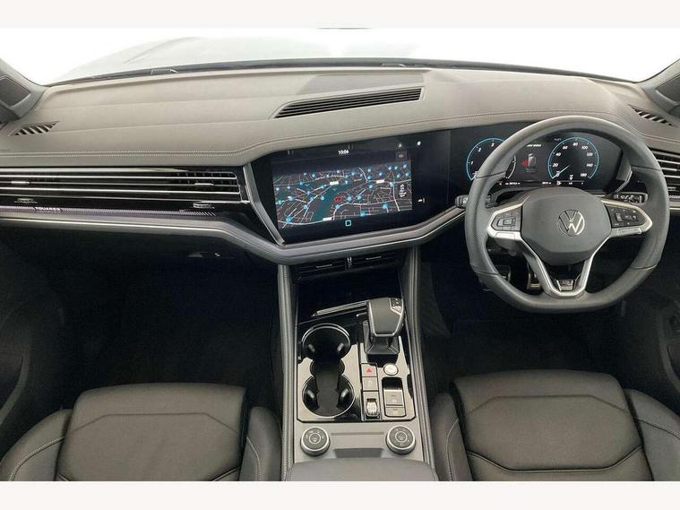 15" Screen Top infotainment system Premium (MIB3), Adaptive cruise control, Advanced driver attention and drowsiness monitor, Driver profile selection, Dynamic road sign display, E-Sim card for online connectivity, eCall emergency system, Innovision cockpit, Intelligent park assist, Mobile phone interface with inductive charging, Multi-colour Active Info display, Park Assist - Sensor controlled steering aid to assist parallel or bay parking, PAS, Warning signal and warning light for front and rear seatbelts not fastened, Wireless app connect, Adaptive chassis control, DAB Digital radio, Diversity antenna for AM/ FM reception, We Connect and We Connect Plus functionality, Automatic coming/leaving home lighting function, Automatic headlights, Black door mirrors, Black style comfort bumpers, Dynamic headlight range control with dynamic cornering light, Electric front tilt/slide panoramic sunroof and fixed rear sunroof, Electrically power adjustable, heated, folding, auto dimming, front passenger exterior door mirror lowering function, External USB type C socket and charging sockets, Gloss black roof rails, HD LED Matrix beam plus digital headlight projection with variable light distribution, Headlight washers, Highway light, LED 3rd brake light, LED daytime running lights, LED rear combination lamp with variable lighting functions and special styling, Poor weather light, Rain sensor, Rear exhaust tailpipe, Rear fog light with back up light on both sides, Rear light bar and illuminated logo, Rear side wing doors, Rear wiper, Stainless steel door sill protection, 12V socket in centre console, 3 rear headrests, 3 seat bench in 2nd row, 4 zone climate control, Airbag label on sun visor and B-pillar, Brushed stainless steel pedals, Double sun visors with illuminated vanity mirrors, Front + rear carpet mats, Front centre armrest, Leather wrapped multifunction sports steering wheel, heated, with touch control and shift paddles, Mechanical rear seat release, Power adjustable lumbar support in front, Power seats in front, right side with memory features and seat cushion depth adjustment, Rear seat backrest and split folding with center armrest, Single front passenger seat, Memory pack plus - Touareg, 3 point seatbelts, outer rear with ECE lable, ABS, Child locks on rear doors, Curtain airbags, Driver and front passenger safety-optimised head restraints, Driver/Front Passenger airbags, Extended pedestrian protection measures, Front assist, Front seat side impact airbags, Generative braking with start and stop system, Height adjustable 3 point front seatbelts with pre tensioners, Passenger airbag deactivate switch, Three 3 point rear seatbelts, Two tone horn, Warning triangle and first aid kit, Alarm system with interior protection, Easy open and close sensor controlled luggage compartment opening and closing with remote unlocking, Keyless Access Keyless locking and starting system with SAFELOCK, Aluminium decorative inserts, Black decorative trims, Gloss black decorative inserts in centre console, Tool kit,