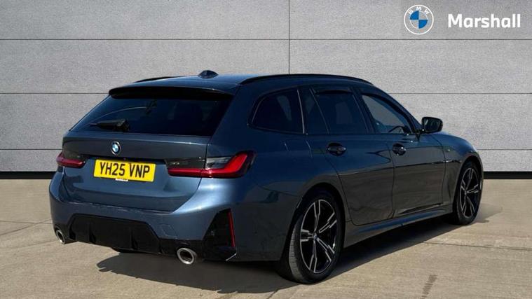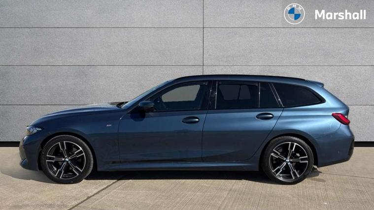 Active guard plus, Attentiveness assist, Automatic Start/stop button, Bluetooth Wi-Fi interface, BMW iDrive, BMW Teleservices, ConnectedDrive Services - last state call, Electric bootlid, Live cockpit plus with Navigation + 12.3" instrument display + 14.9" display, Intelligent voice assist, 2 USB, 4G LTE connect, Oil sensor for level and grade, Personal e-SIM, Shifting point display, Variable sport steering, Double joint spring strut front axle, Fuel tank breather system, Steptronic Sport automatic transmission with steering wheel mounted gearshift paddles launch control and xtreme drive lever control, DAB tuner, 3rd brake light, Auto dimming rear view mirror, Automatic headlight beam throw control with load dependent regulating reaction, dynamic compensation of braking dive and acceleration squat, Bi-LED Low and high beam headlights, BMW emblem, engine compartment lid and tailgate, Body colour roof fin, Door sill strips, Electric windows - front and rear, with open/close fingertip control, anti-trap facility and comfort closing, Fading support, Follow me home headlight function, Front and rear bumper system with replaceable deformation elements, Front apron plastic in body colour, Fuel filler flap - right rear in body colour, Heat protection glazing on front windows and windscreen, Heated washer jets, High gloss chrome kidney frame with high gloss black kidney struts, High gloss shadow line roof rails, LED daytime running lights, LED rear lights, LED turn indicator, Licence plate panel integrated into front bumper and tailgate, M high gloss shadow line exterior trim, Matt black B-pillar finsher, Matt black window recess cover, One piece front bumper cover including towing eye cover in body colour, Rain sensor with automatic headlight activation, Rear side wing doors, Rear wiper, Reversing lights, Side frame decorative moulding black matt, Trailer stabilisation logic, Visible exhaust tailpipe finisher, Welcome lights in interior and door handle area, 12V power socket in front storage compartment, 2 front cupholder in centre console with clamping elements and matt black inlay, 3 seat bench in 2nd row, 3 spoke M Sport multifunction flat bottom leather steering wheel, 3 zone automatic air conditioning, 40:20:40 split folding rear seat with loading system, Anthracite headlining, Armrest integrated in front and rear door trim + front centre console armrest, BMW ID, Cruise control operation in steering wheel, Driving experience mode switch, Folding rear centre armrest with 2 cupholders, Front and rear headrests, Front and rear velour floor mats, Front reading light, Heated front seats, Height adjustable mechanically and infinitely variable steering column, Illuminated armrest storage compartment, Illuminated glove compartment, Illuminated luggage compartment, Lashing eyelets in luggage compartment, Single front passenger seat, Sunvisors with illuminated vanity mirrors and ticket pocket, Toolkit located in luggage compartment, Connected pack professional - 3 Series Saloon/Touring, Interior and exterior mirror pack - 3 Series Touring/Saloon, M sport exterior styling pack - 3 Series Saloon/Touring, Parking assistant pack - 3 Series, 3x3 point rear seatbelts, BMW emergency call, Child locks on rear doors, Crash sensor activating of airbags, Unlocking doors, hazard warning lights, interior light, safety battery terminal, Drive-off assistant, Driver and front passenger with seat occupancy detection for driver's and passenger side, Driver and passenger side airbags, body protection at side and airbags deploy from seat backrests, Dry braking, Dynamic brake control, Dynamic stability control + (DSC+) - Anti-lock Braking System (ABS) with brake assist and cornering brake control + Automatic Stability Control (ASC), Dynamic Traction Control - DTC, Electric parking brake including automatic hold function and automatic release of the parking brake when driving off, Electronic differential lock control (EDLC), Front airbag deactivation, Front airbags for driver and front passenger, Head airbags in 1st and 2nd row, head protection at side, curtain airbags open from headliner above 1st and 2nd row, Plastic fuel tank, Side impact protection, Tyre pressure sensors, Ventilated front and rear disc brakes, Warning triangle and first aid kit, Alarm system, Centre lock switch, Closing system with central locking, Electronic vehicle immobiliser, Locking wheel bolts,