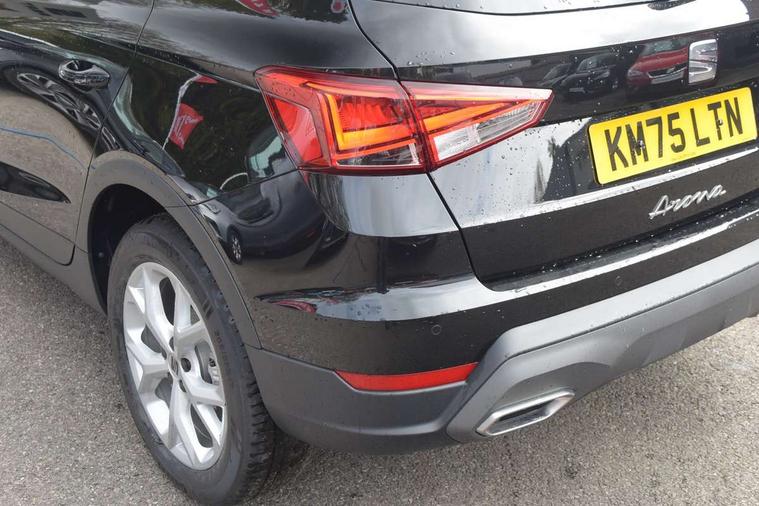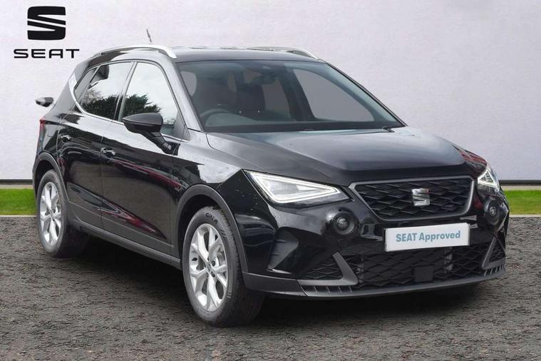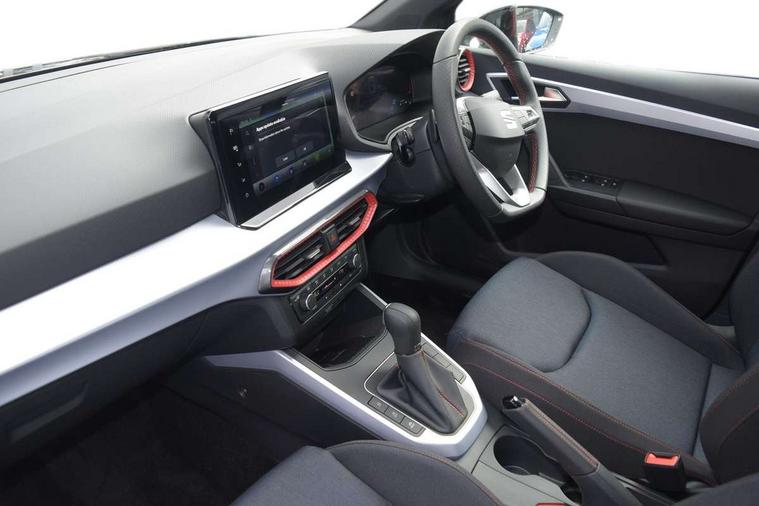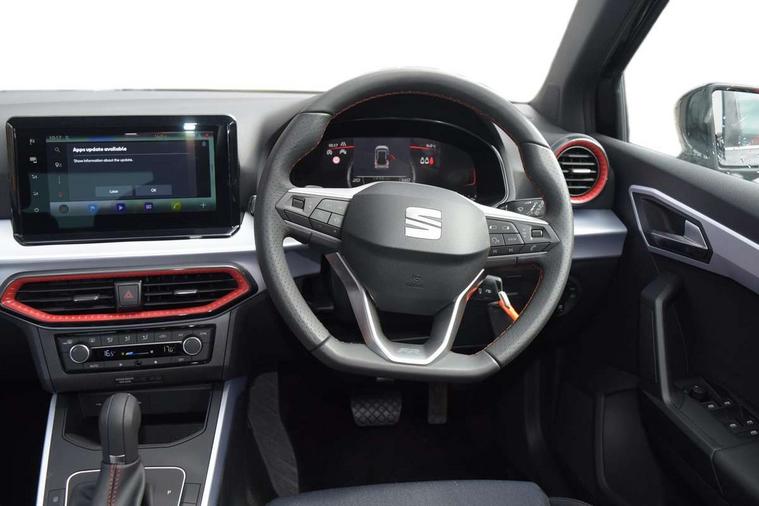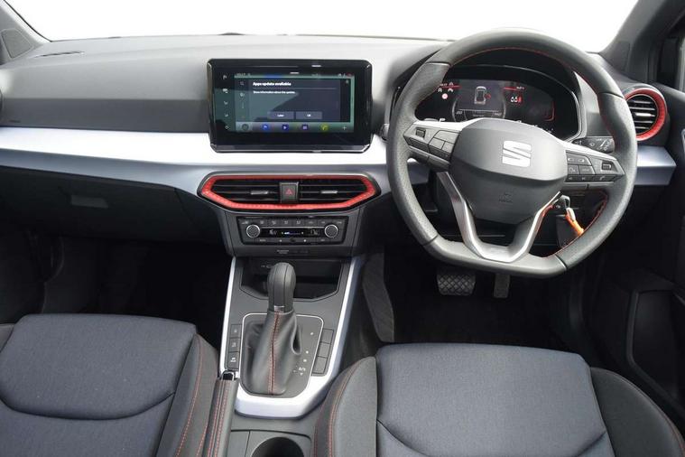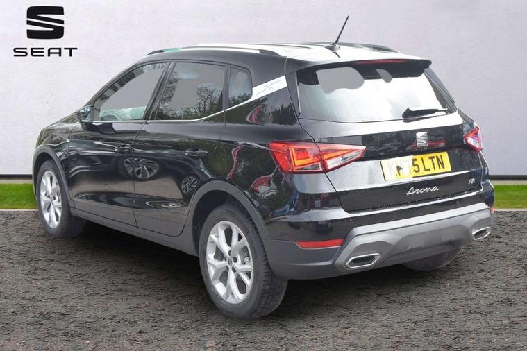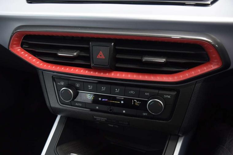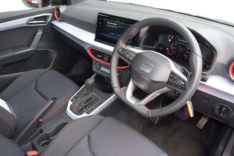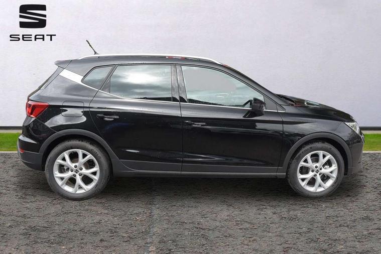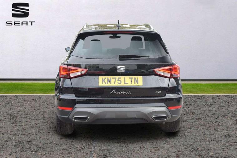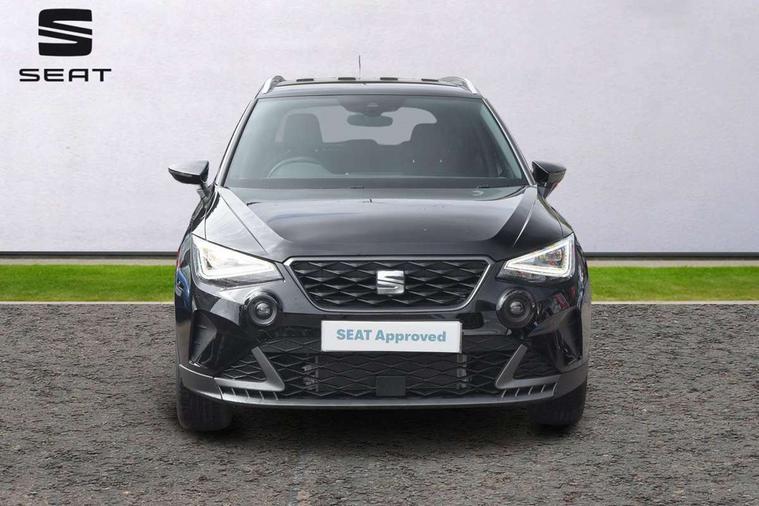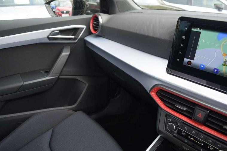 'Lights On' Reminder warning buzzer, 8" Digital cockpit, Digital clock, E-call, Electric speed sensitive power steering, Full link smartphone integration with mirror link, wireless apple carplay, Google android auto + USB Type C cable for apple and android devices, Lane keeping system, Low fuel warning light, Outside temperature display, RPM counter, SEAT Drive profile - Four different models normal-sport-eco-individual, steering response, throttle response and gear shifts mode, Trip computer, Wireless phone charger, 9.2" colour touchscreen with navigation system, voice control and USB port (type c), Bluetooth interface for hands free and audio streaming, DAB digital radio and AM/FM radio, Steering wheel mounted audio controls, Anti theft roof antenna, Auto dimming interior rear view mirror, Automatic activation of hazard warning lights, Body coloured bumpers, Body coloured door handle inserts, Chrome roof rails and window surrounds, Dark tinted rear windows, Electric front/rear windows, Electrically adjustable, heated and folding door mirrors, Front fog lights with cornering function and rear fog light, FULL LED automatic headlights with dynamic headlight range control, coming and leaving home, LED daytime running lights, LED rear tail lights and licence plate lights, Protective side mouldings, Rain sensing wipers, Rear side wing doors, Rear spoiler, Rear window wash/wipe, Roof colour door mirrors, Third brake light, Twin exhaust pipe styling hidden exhaust pipe, Visible VIN plate, 2 cupholders, 3 seat bench in 2nd row, 60/40 split folding rear seat, Aircare filter, Black interior roof, Cloth upholstery, Double boot floor, Driver sunvisor with covered mirror + card holder, Dual zone climate control, Front courtesy light with front reading lights, Gear shift indicator, Height adjustable front seats, Height/reach adjustable steering column, Illuminated air vent surrounds, Illuminated boot, Instrument lighting with brightness control, Interior ambient lighting, Interior light in footwell, central console and door panel, ISOFIX points in outer rear seats with top tether anchorage points, Passenger sunvisor with vanity mirror, Perforated flat bottomed leather steering wheel/gear knob/handbrake with red stitching and FR logo, Potentiometer, Single front passenger seat, Steering wheel mounted gearshift paddles, Two front and three rear height adjustable headrests, Interior chrome pack - Arona, Safe and driving pack (S) - Arona, 3 point seatbelts on all rear seats, ABS, Active front headrests, Child locks on rear doors, Driver and front passenger airbags with front passenger airbag de activation, front side and curtain airbags, Emergency Brake Assist (EBA) and front assist, Front and rear seatbelt reminder, Hill hold control, Multi-Collision braking, Tiredness recognition system, Traction control, Tyre pressure monitoring system, Alarm with back up horn with tow away protection, Deadlock, Electronic engine immobiliser, Locking wheel bolts, Remote central locking, Titan black dashboard, 17" Dynamic alloy wheels,